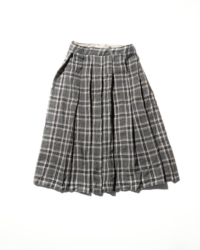 1960-70s Euro Vintage Gray Wool Plaid Check Pleated Skirt