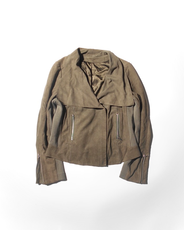 1990s Vintage Khaki Goat Skin Asymmetrical Jacket