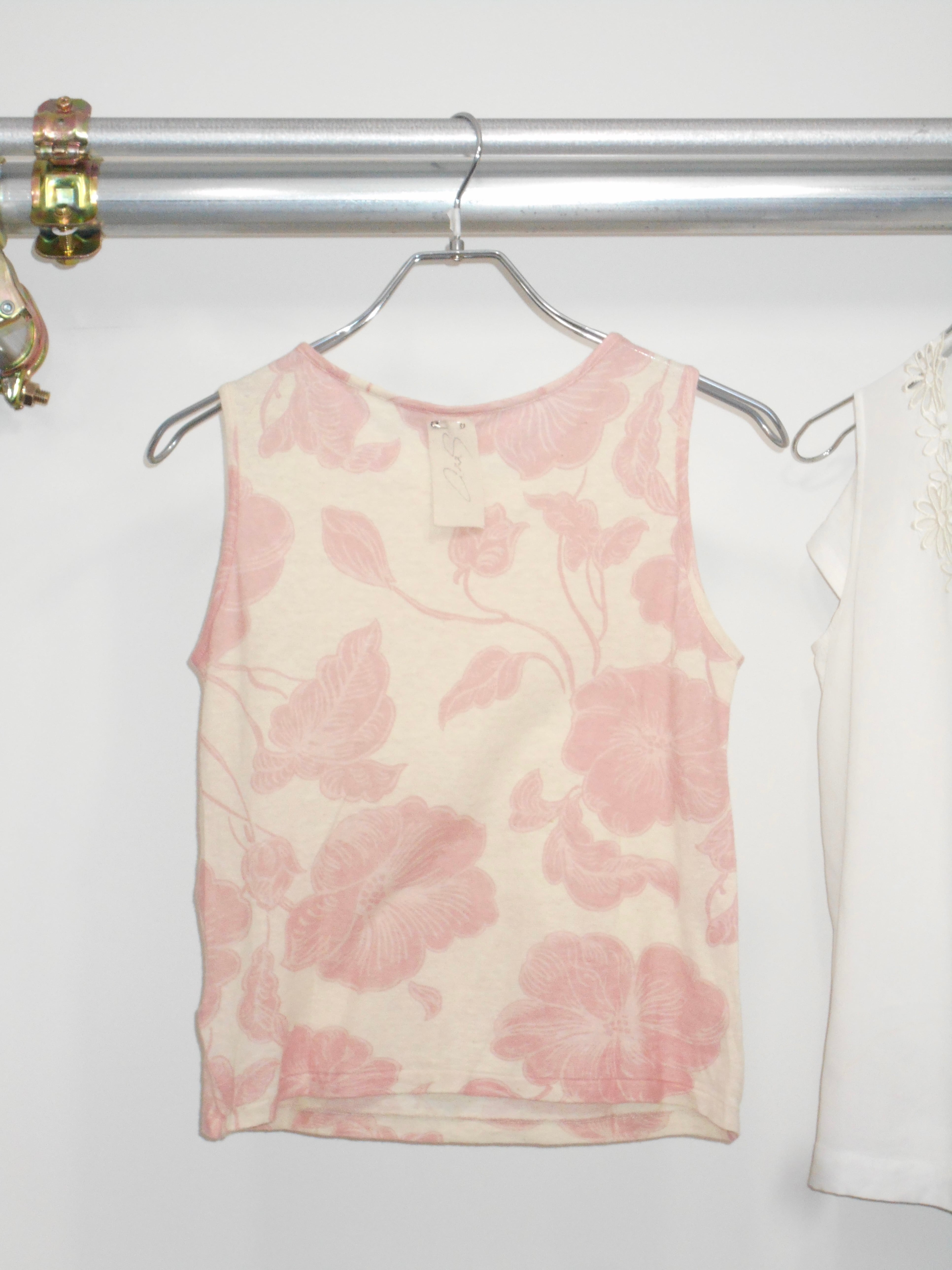 Yohji Yamamoto +NOIR Pink Flowers Hemp Tank Top