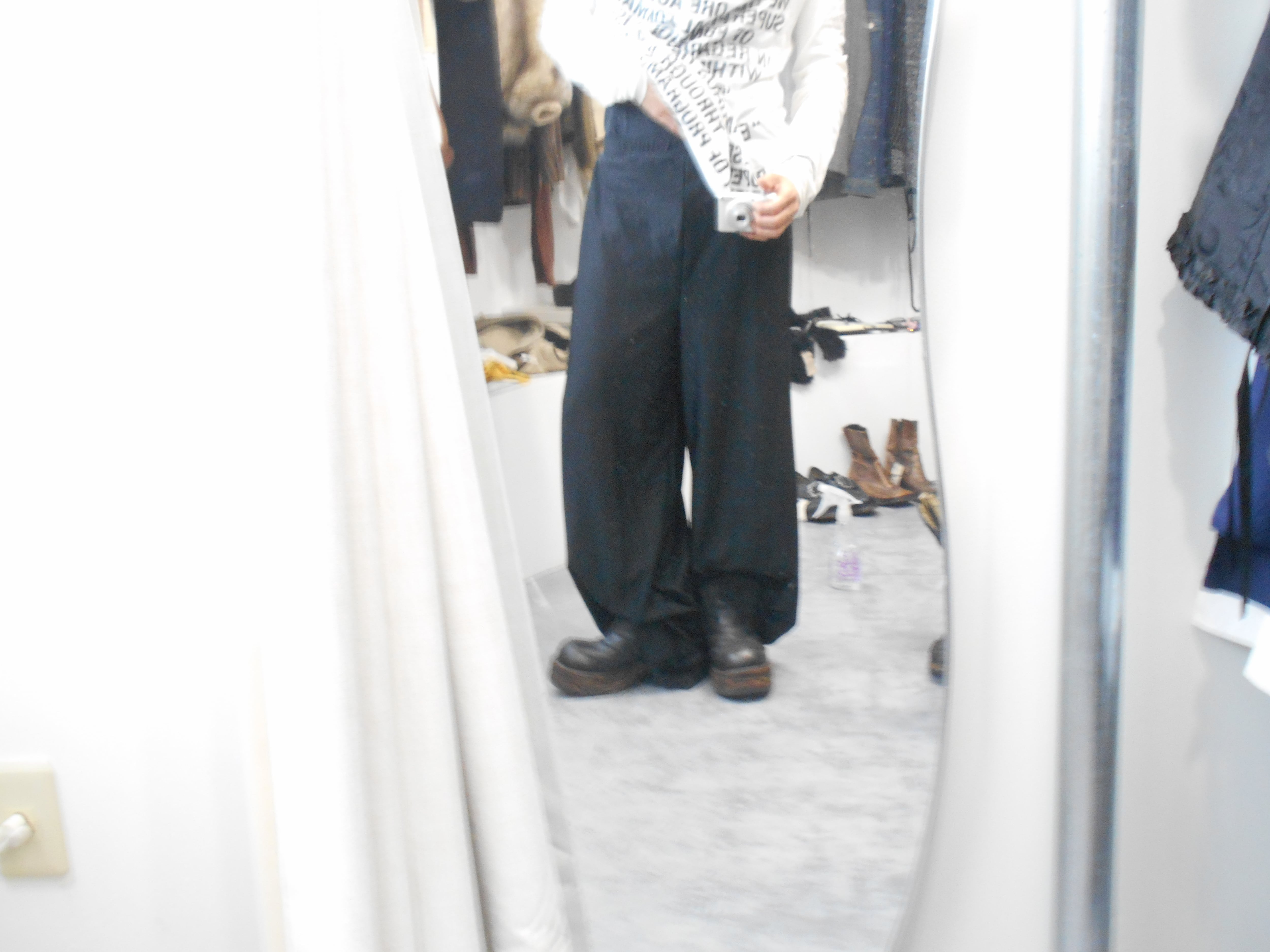 そんなアメリカのレーベルらしく、ゆったりとしたシルエットと1970年代らしいポリエステルが特徴的なこちらの一着。おそらく女性物であったために、腰回りのゴムとフィット感に違和感を感じる男性もいらっしゃるかもしれませんが、ポリエステルの薄い素材で作られているため、履いた際の肌心地や柔らかさはかなり快適かと思います。またありがたいのがこの裾幅で、古い物で裾幅の太いものを探そうとすると30cm未満のものが多いのですが、こちらはそれを超える36cmのため、履き方次第でバギーなシルエットを作ることができるかと思います。