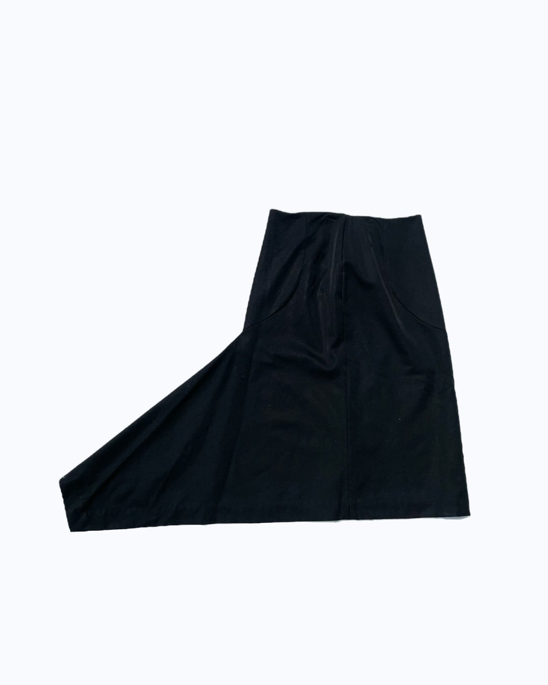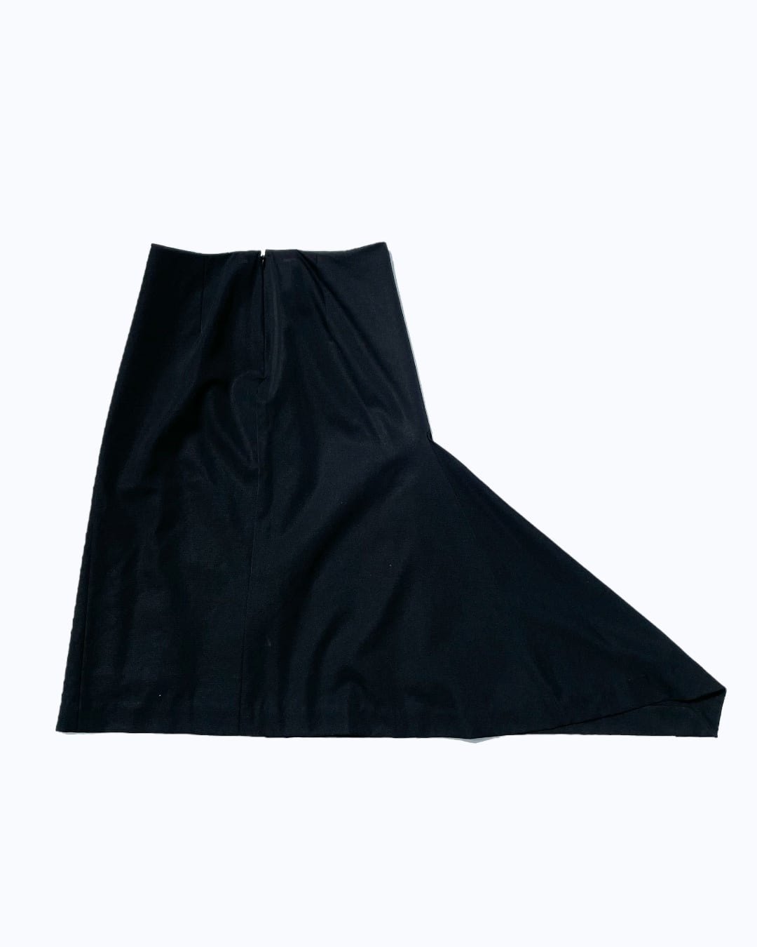 その彼のコンセプトに則ってこのアイテムを見てみると、単に腰を巻くように隠す布としてのスカートではなく、立体的な裁断と背面に尾のようにつく装飾的な裾により、歩きやすさと普通と異なる重心を持った感覚の演出がなされているように感じられます。