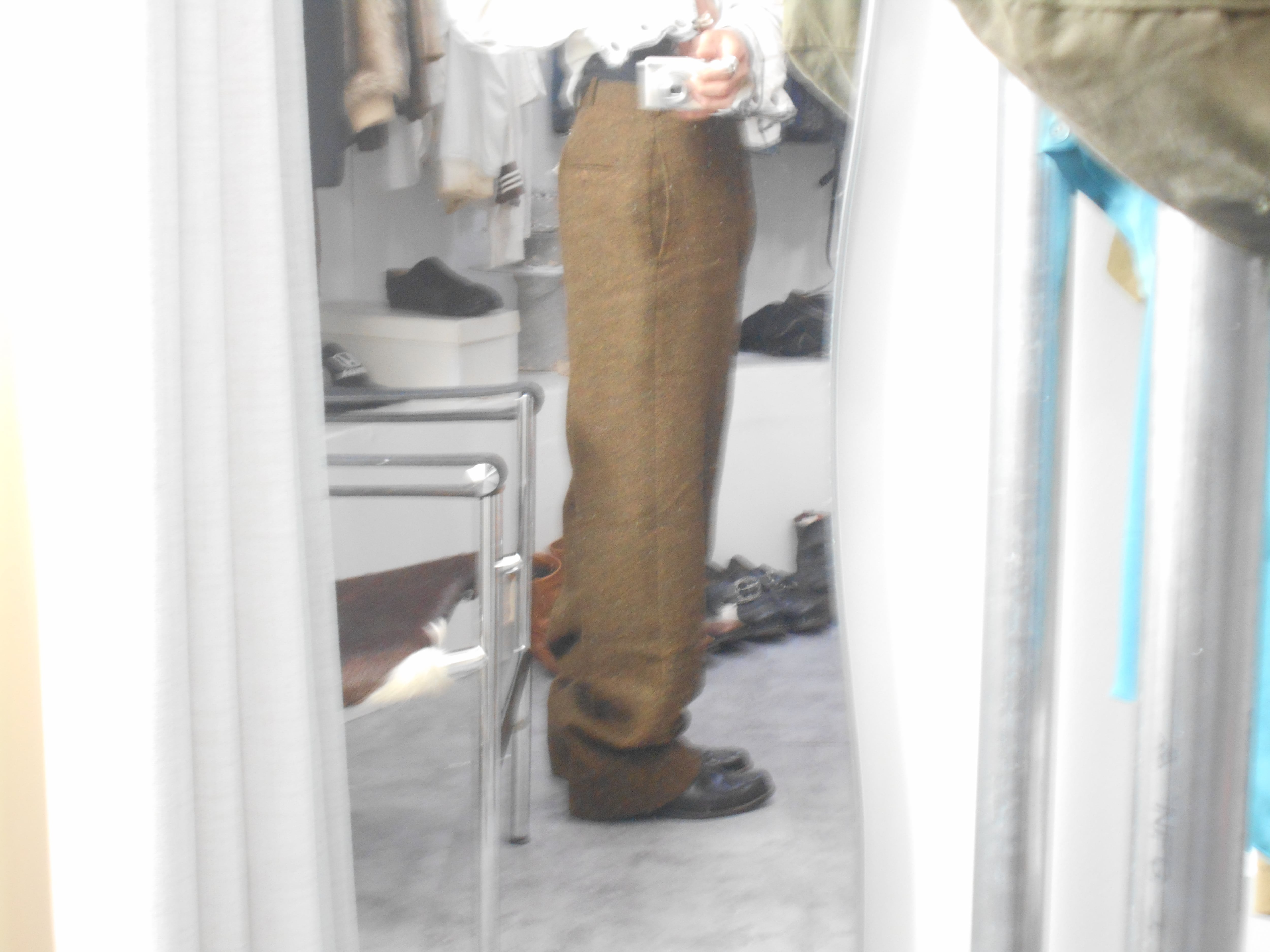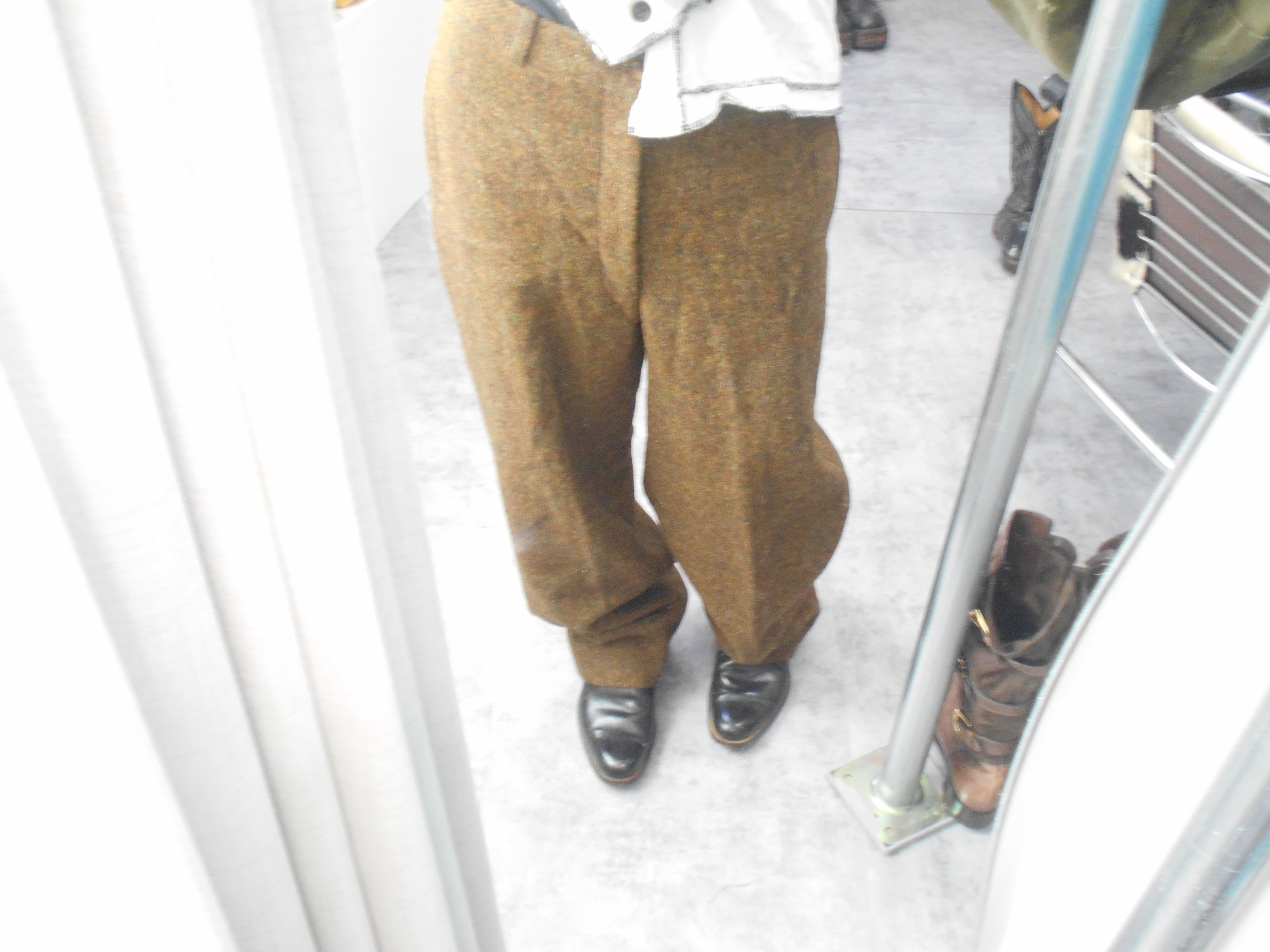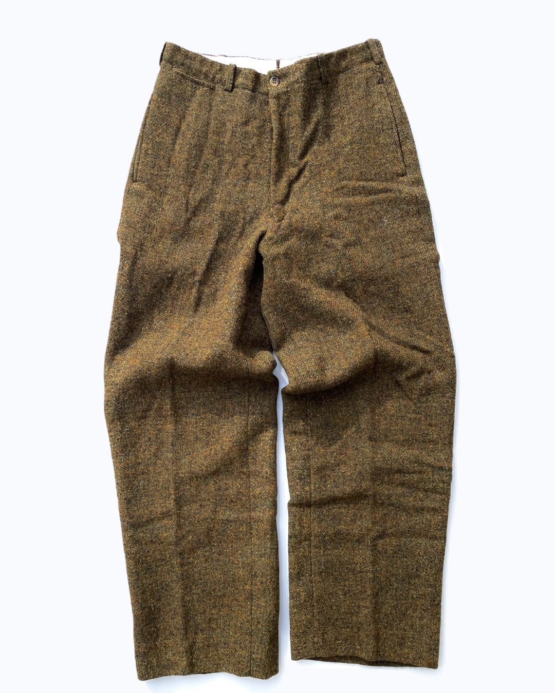 古いスラックスには基本的にタックが入り、腿にかけて太くなっているものは多く見られるものの、その太さがテーパードにより打ち消されていることがよくあるのですが、その一方でこちらのアイテムは、タックを入れずに太さを維持しながら、裾までストレートに太く作られているという点で、古いスラックスの中でも比較的珍しい作りなのでは無いかと思います。