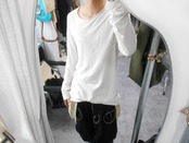 Super Slightly Light Mint Green Sheer Cut-off Neck Long Sleeves T Shirt by T Alexander Wang