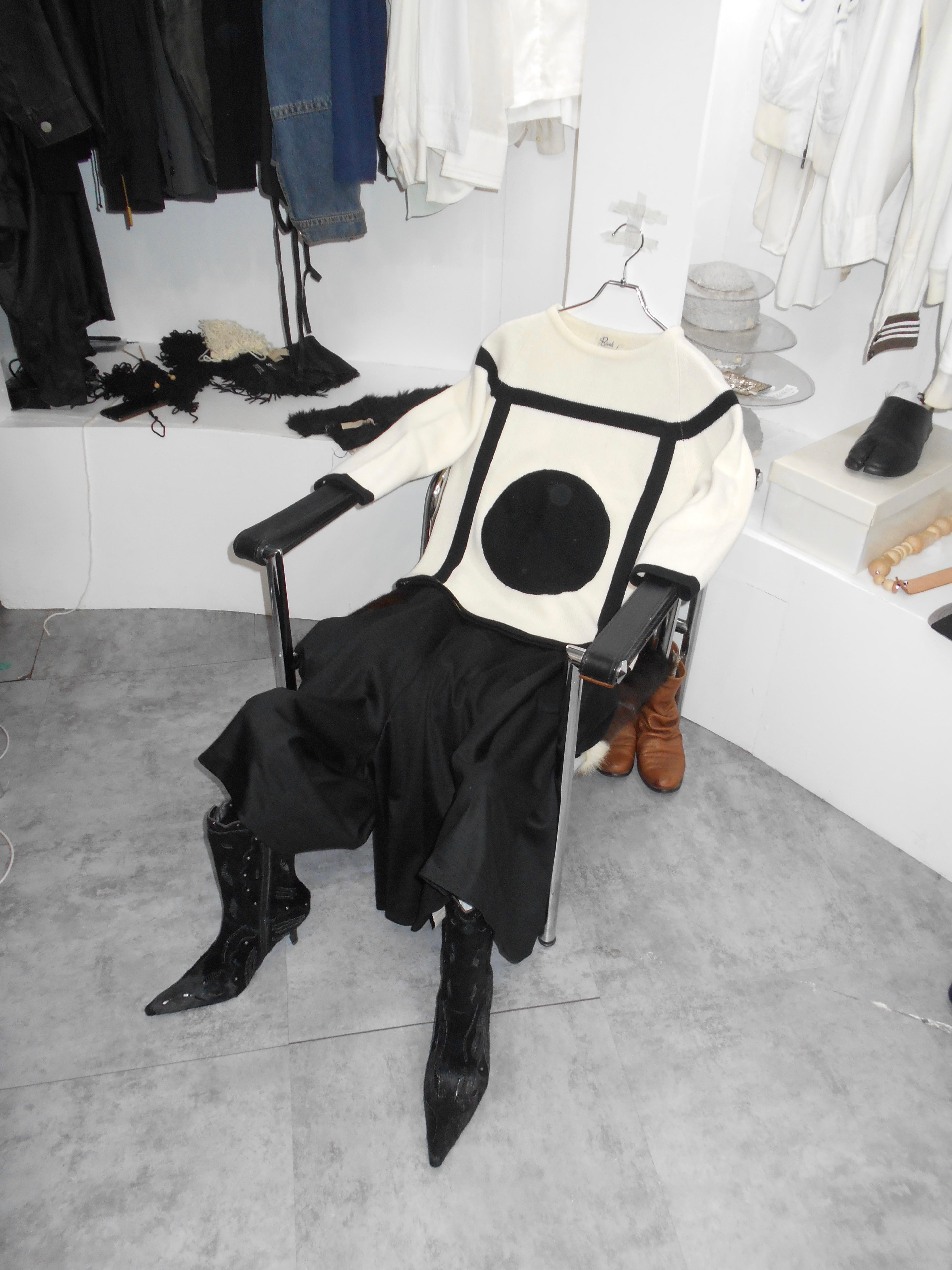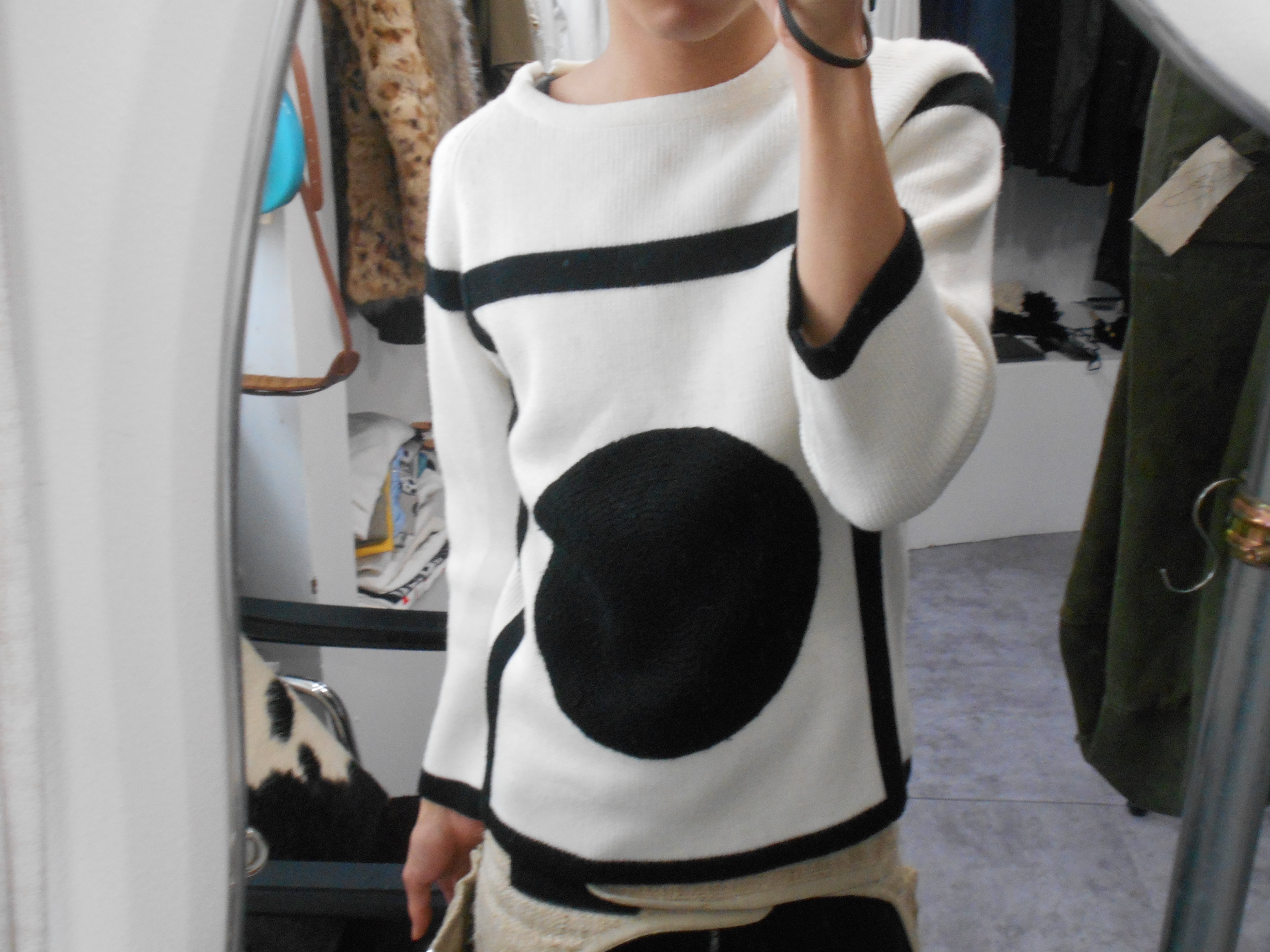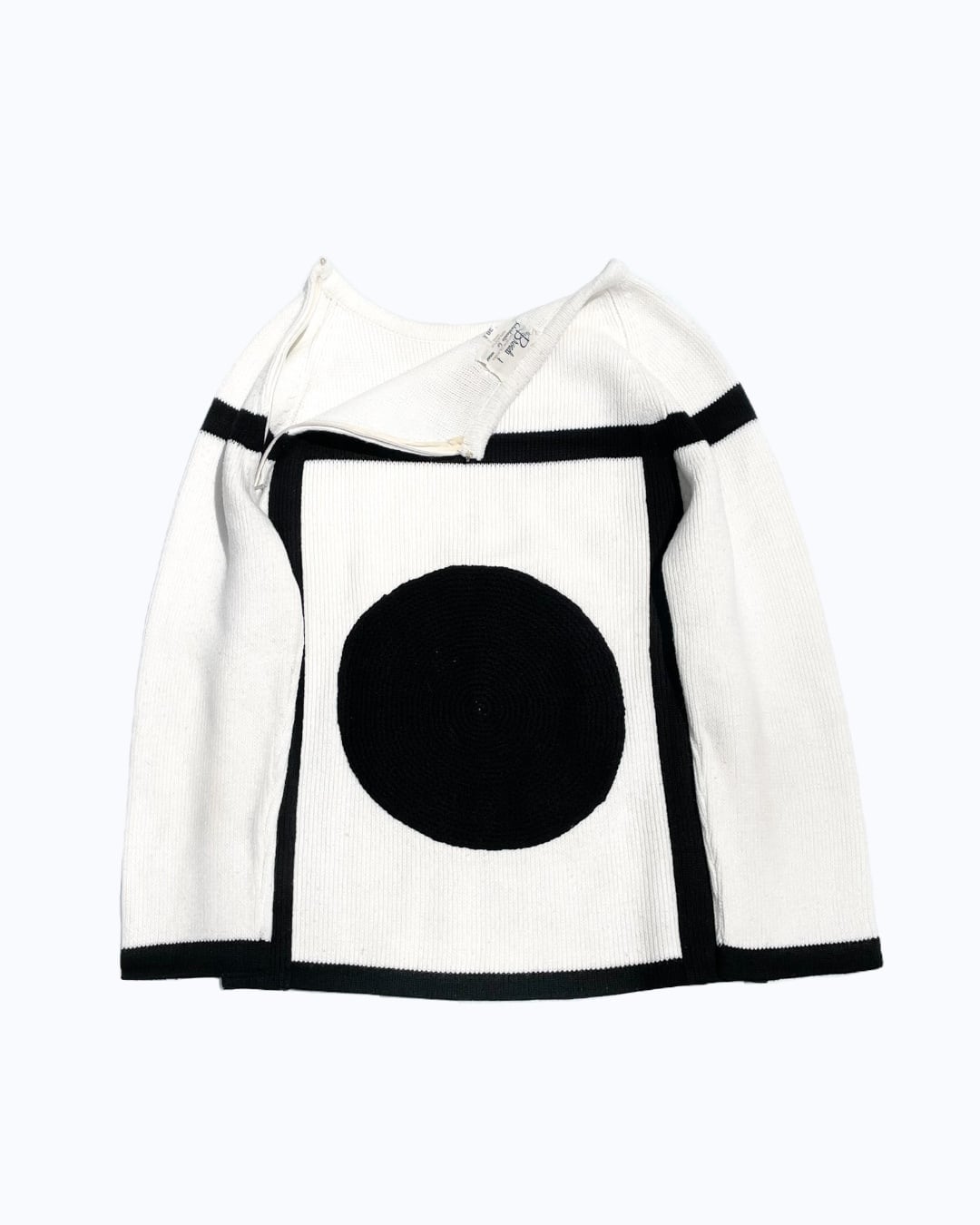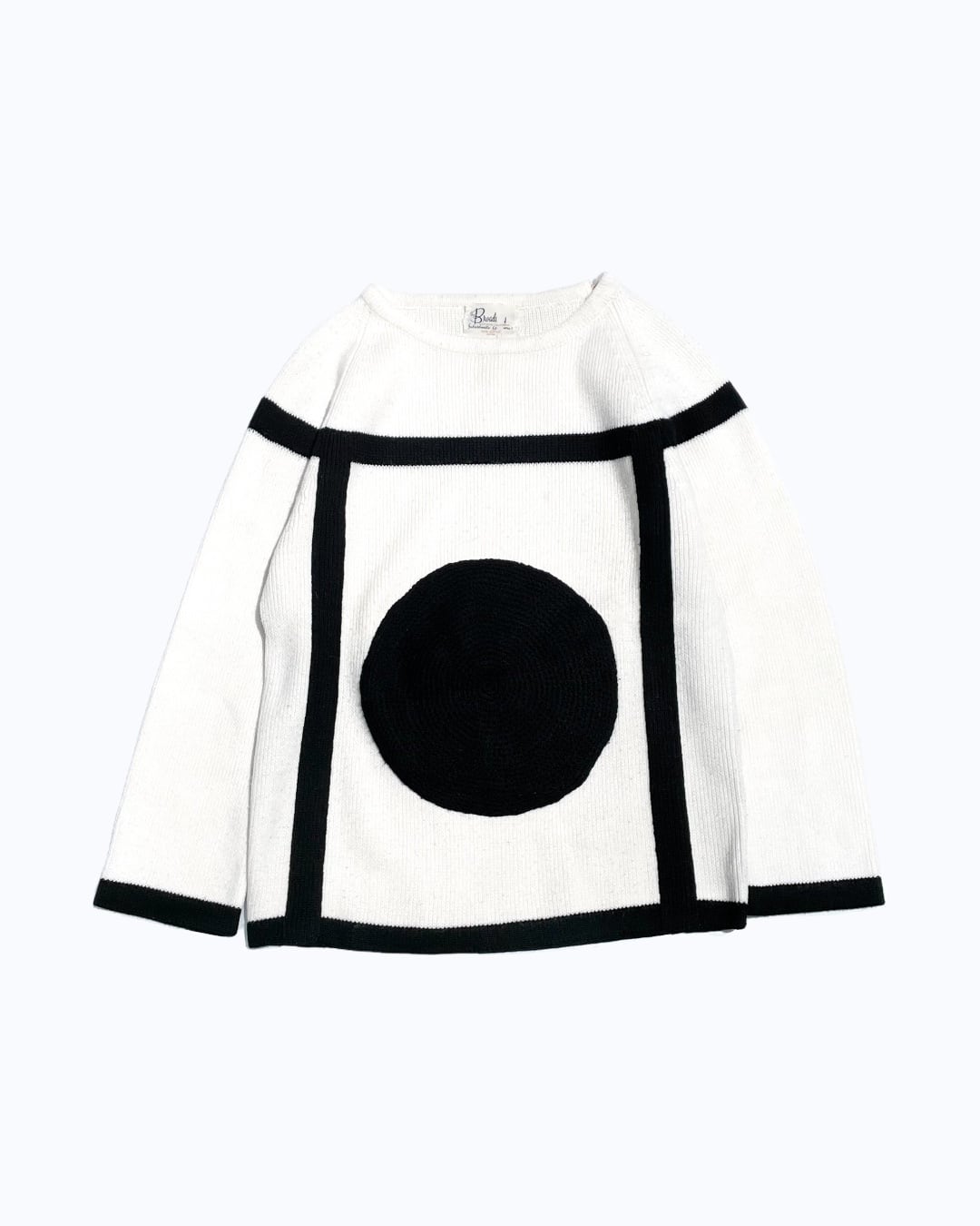 Before 1950s Large Black Circle White Knitted Sweater