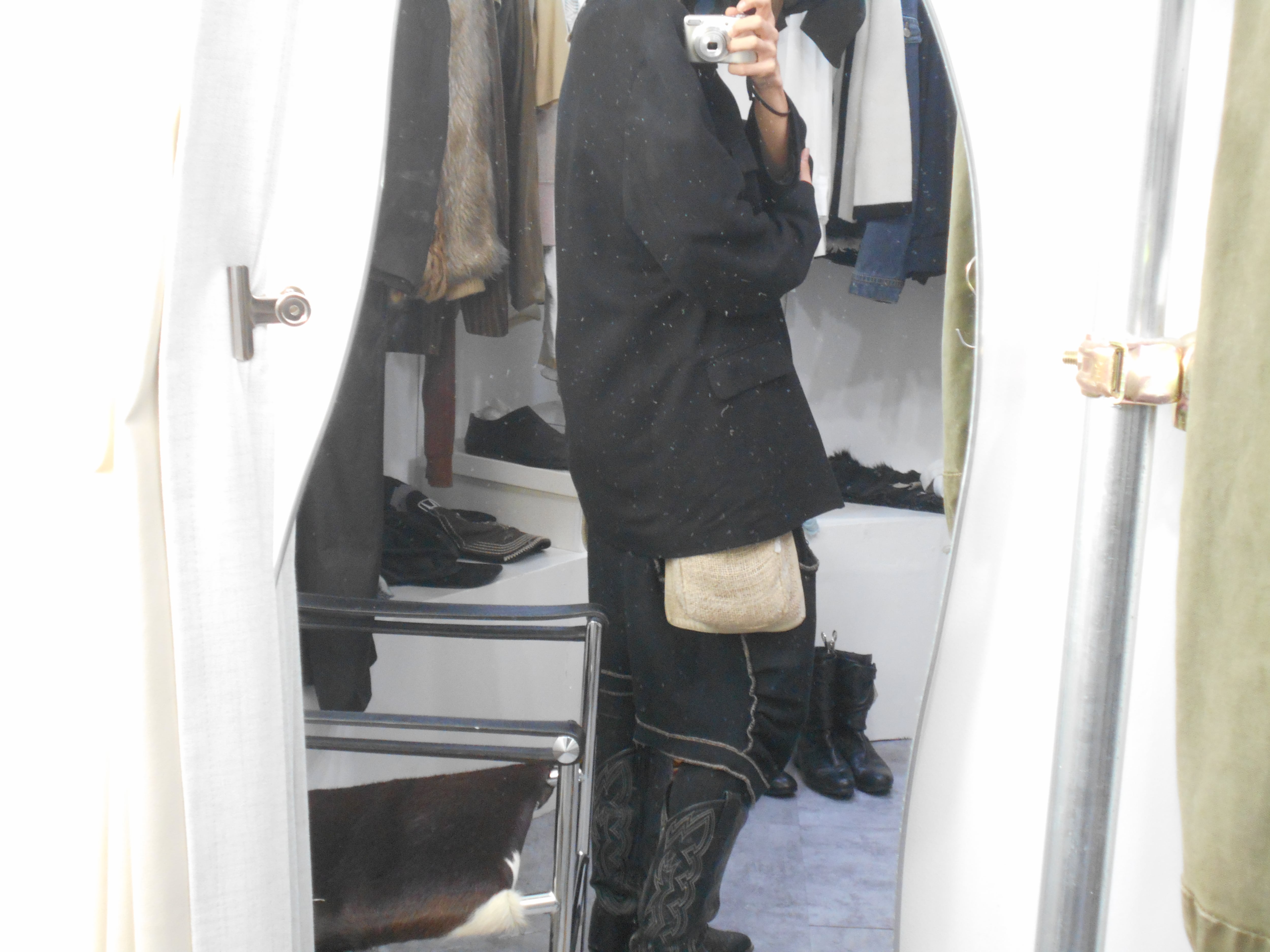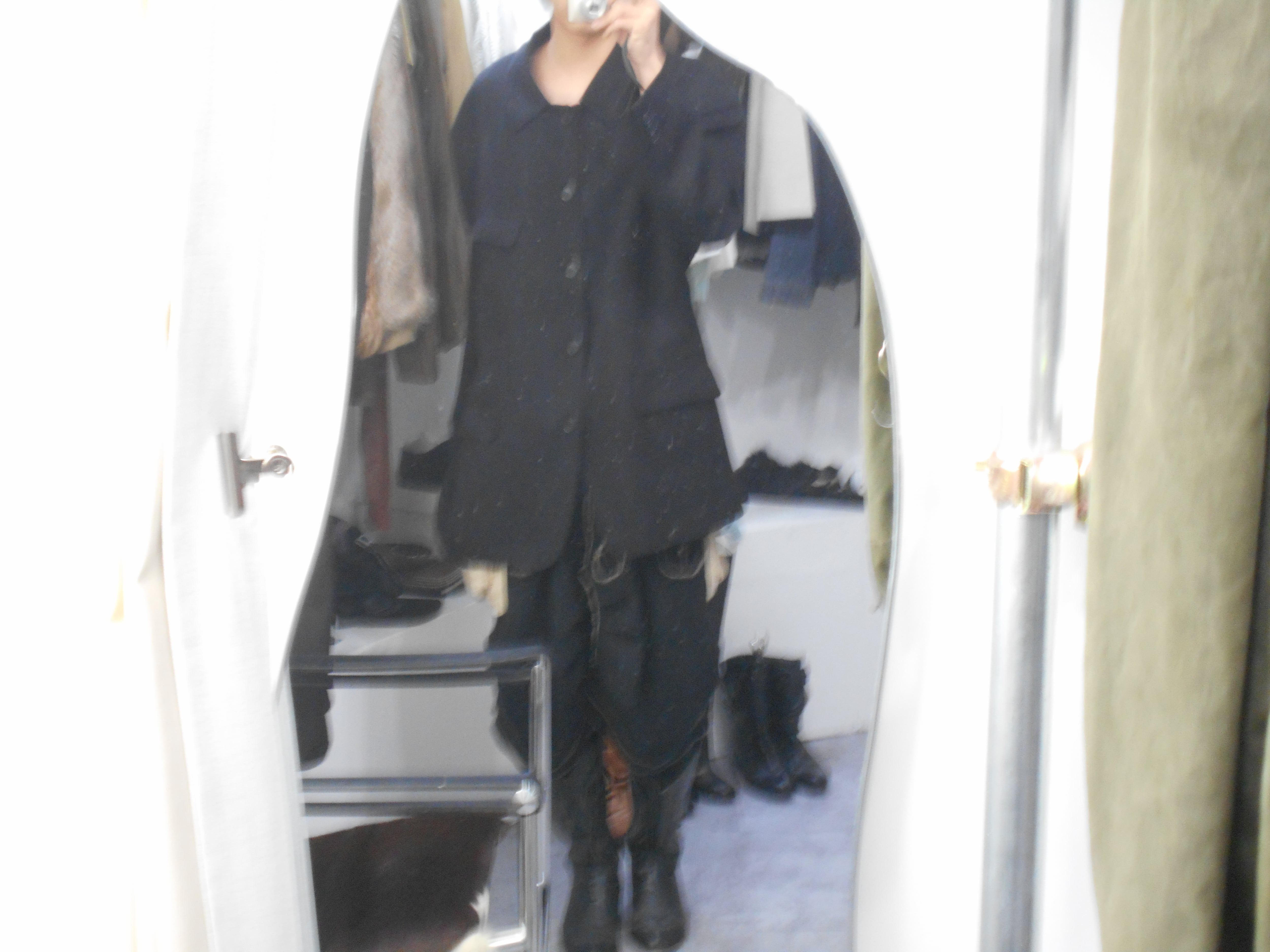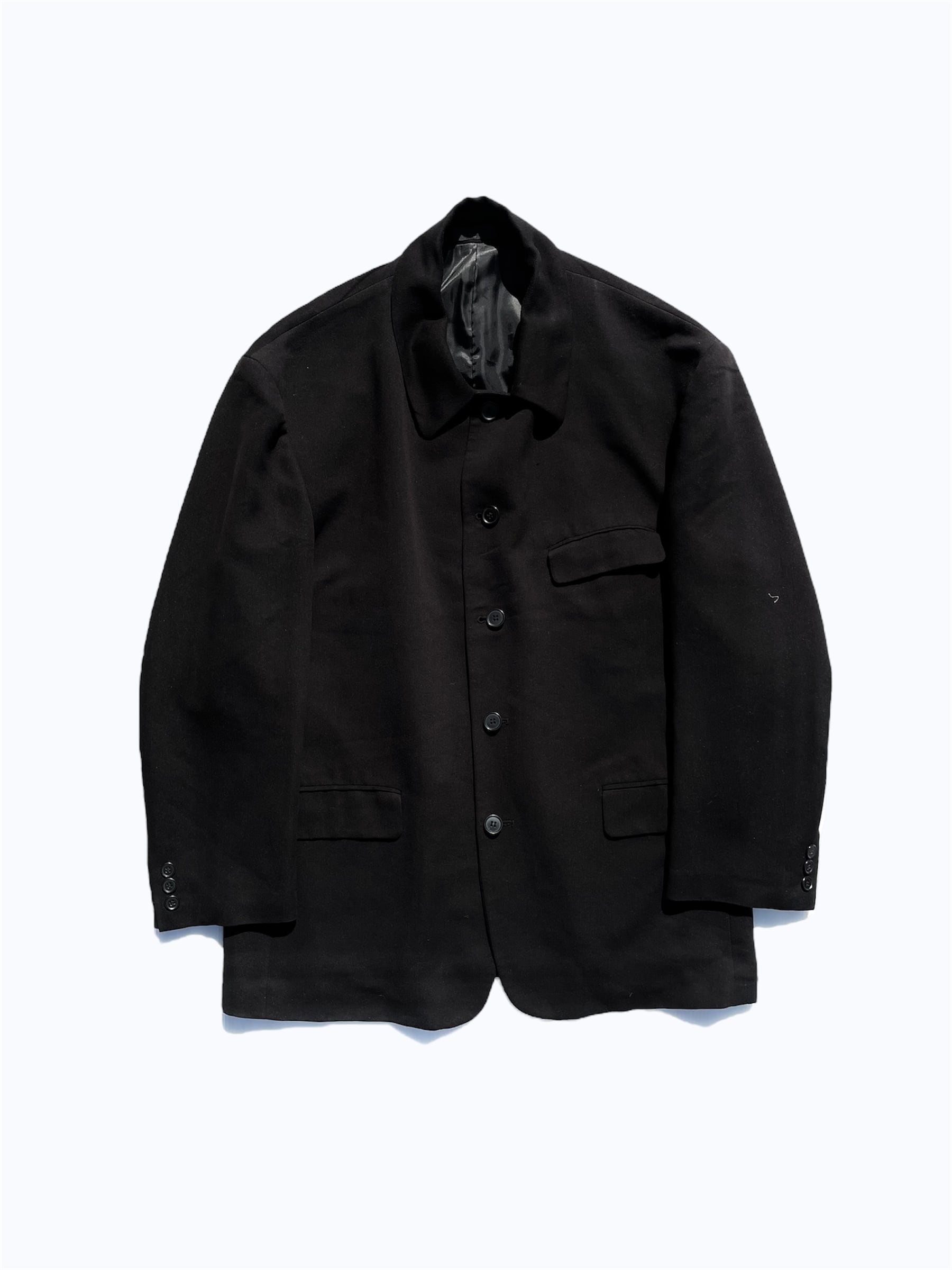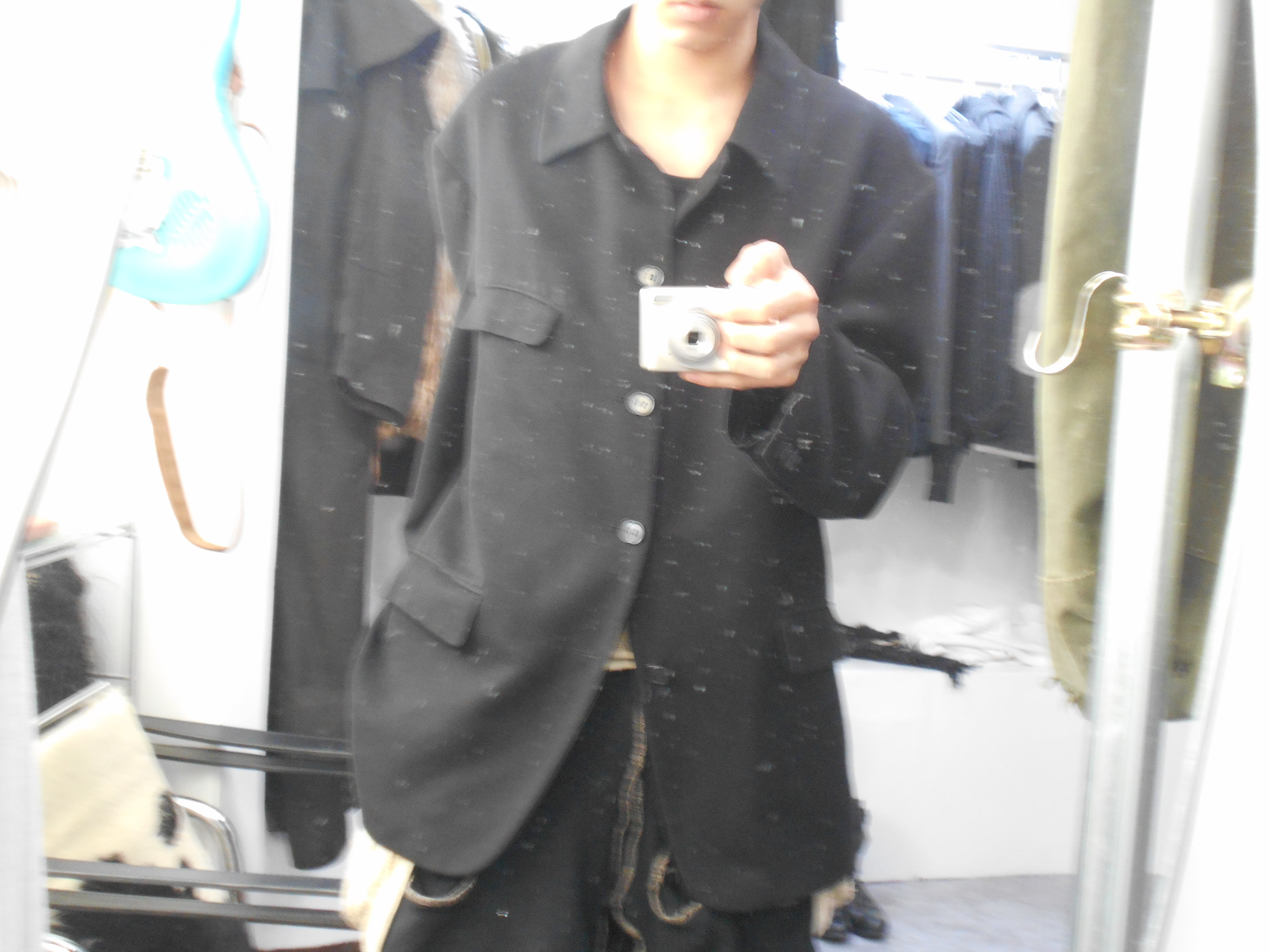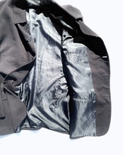 海外物なだけあってか、日本人が着るとどうしても肩の余ってしまうほどの大きさになっていますが、却ってやり過ぎなまでの大きさが現代のファッションにも取り入れやすいようにも感じられます。また、テーラードジャケットにしては珍しく、マオカラーに襟をつけたような、ハンティングジャケット的な作りになっているのも他のアイテムと一線を画すポイントのように感じられます。