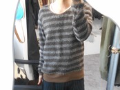 ボーダーの色によってその生地(毛糸)が切り替えられており、濃いブラウンの面はタオル地のような、薄いブラウンの面はモヘアのような素材感となっています。