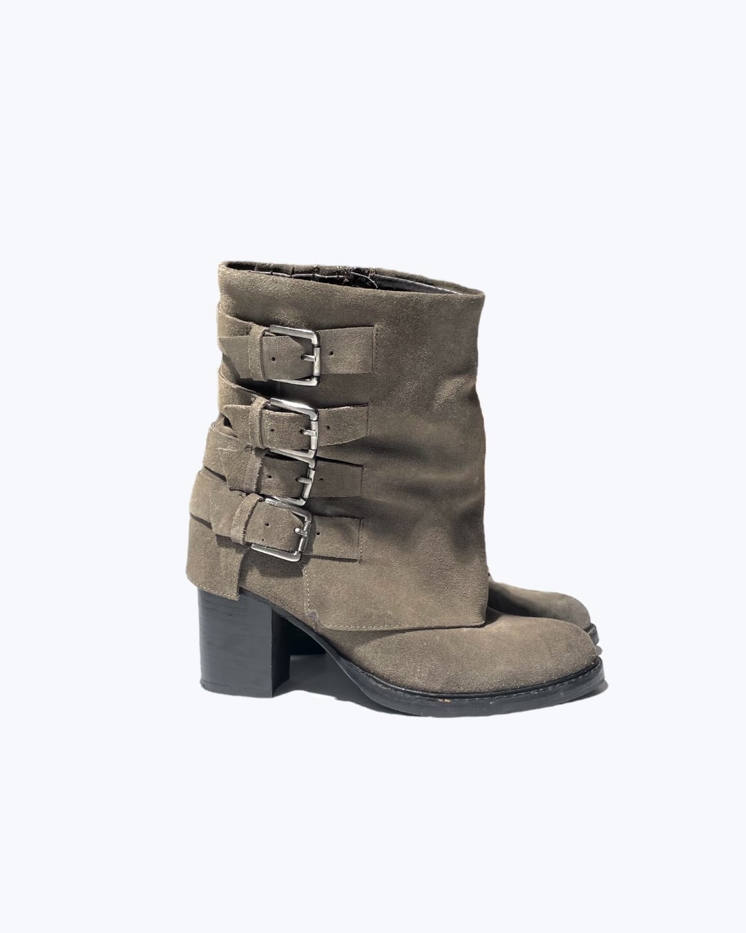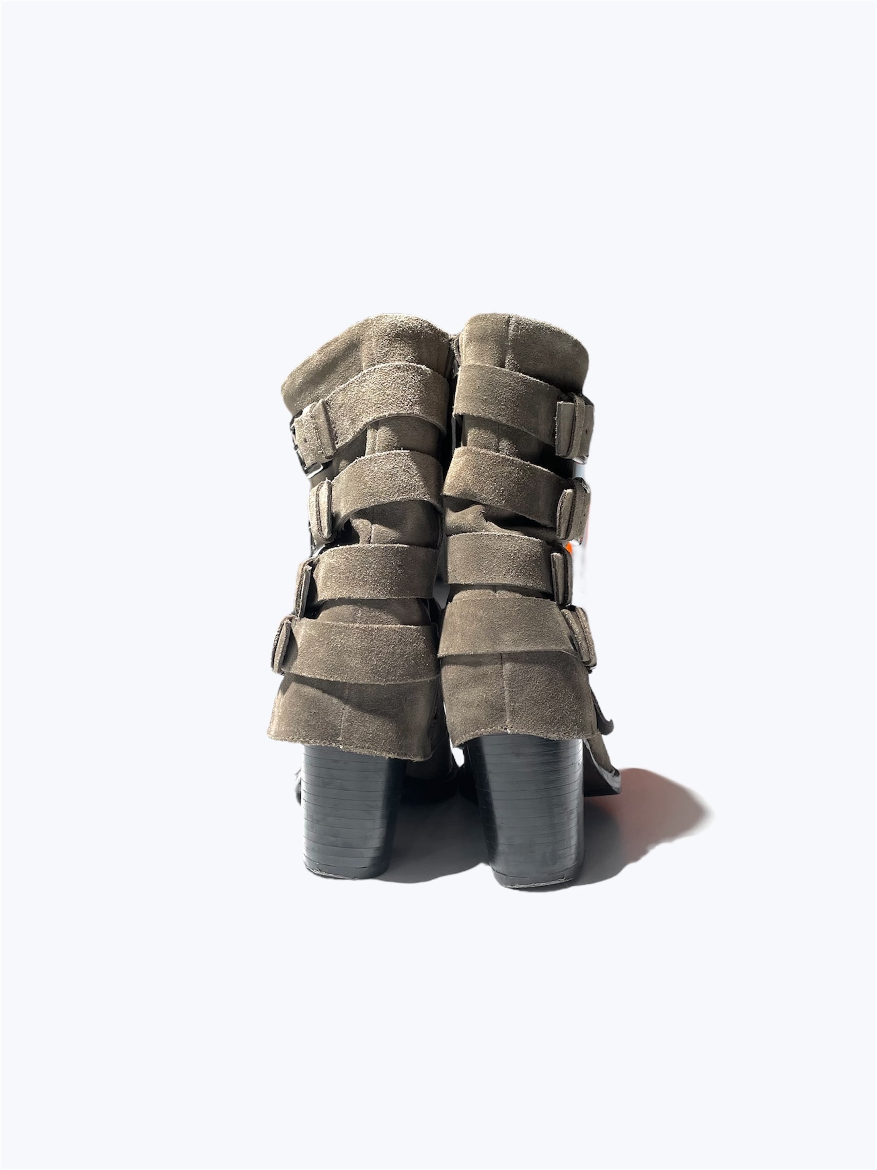 1990-2000s Vintage Belted Khaki Real Leather Boots