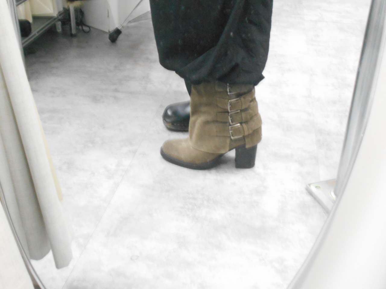 足首周りを多くように巡らされたレザーと開閉式のベルトが特徴的です。またカーキのスエードを使用している点もあまり見かけることの多くない一足となっているかと思います。