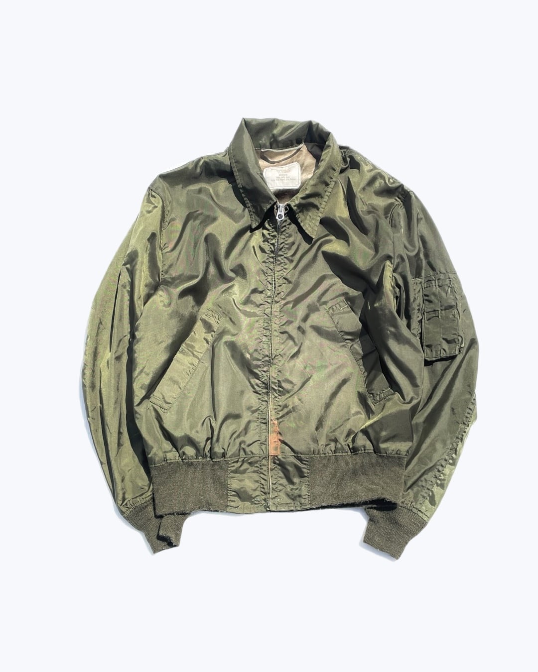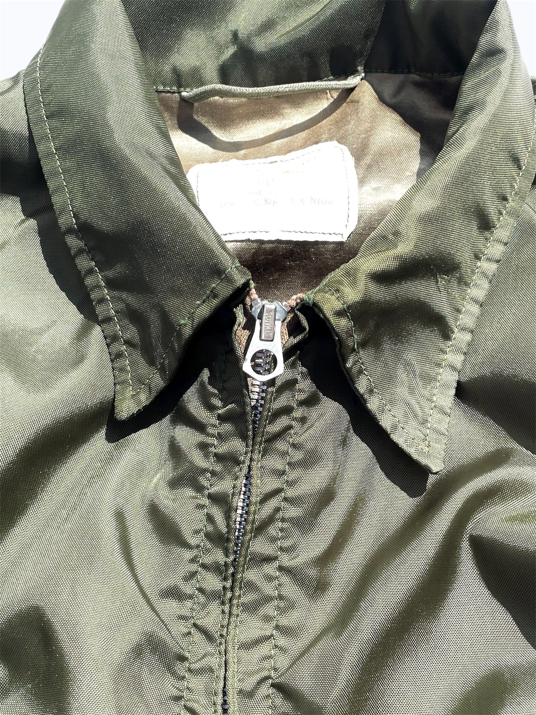 アイテムについて見ていくと、この年代によく見られるScovil Zipperや古い軍ものらしいサテンのような光沢のある裏地など、現代では見られないディティールを持ちながら、そのシルエットや作りはミニマルかつ都会的な雰囲気の感じられる一着となっています。