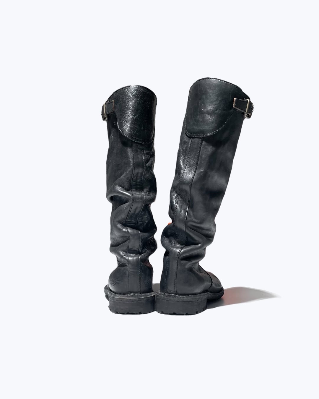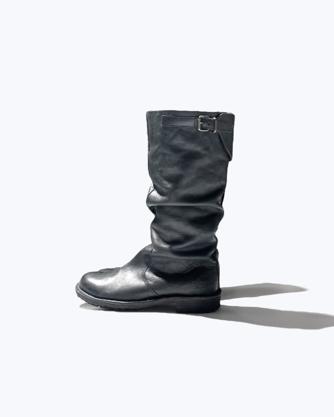 Crinkled Leather Buckle Detail Riding Boots Size: Around 25.5cm