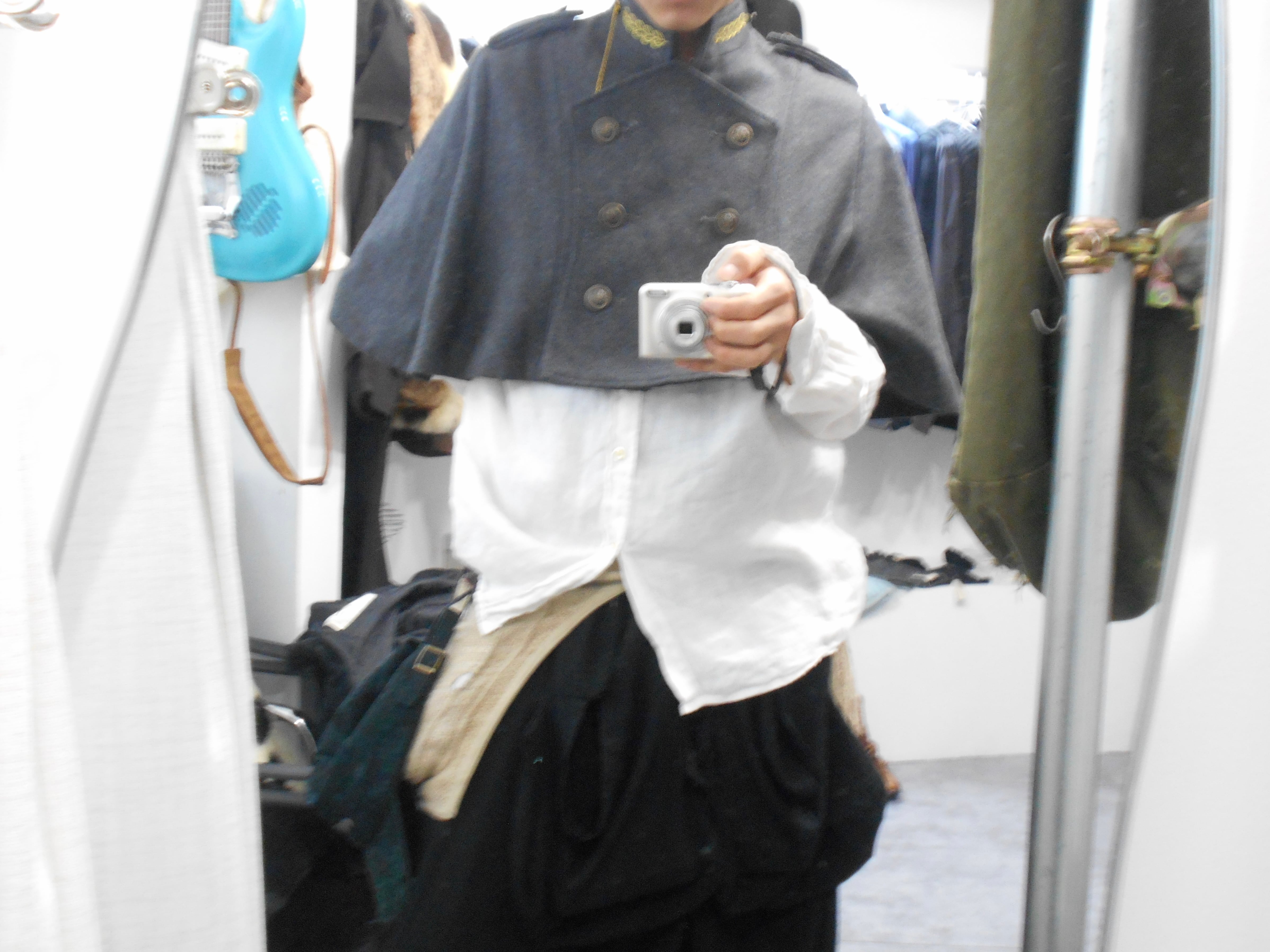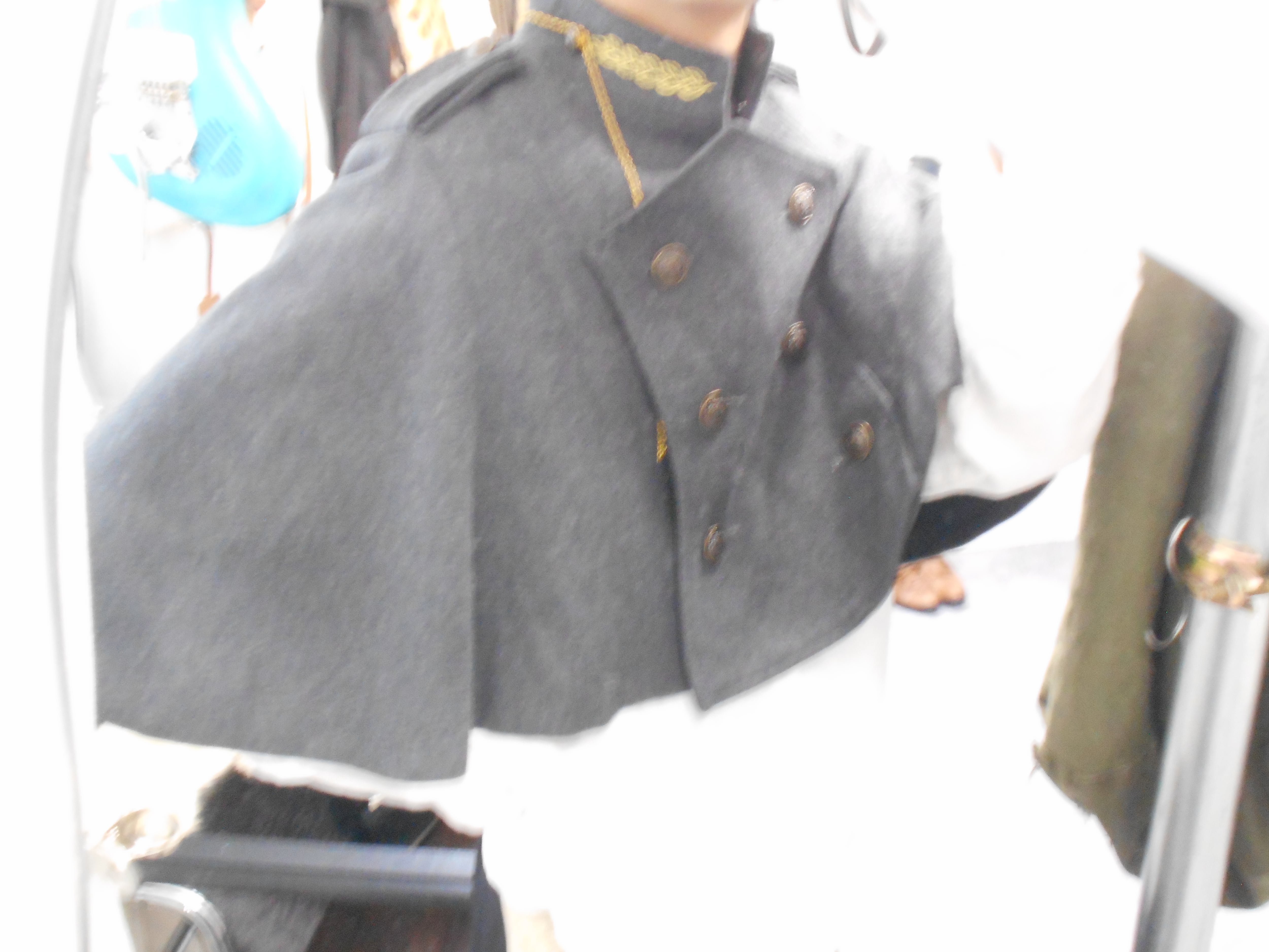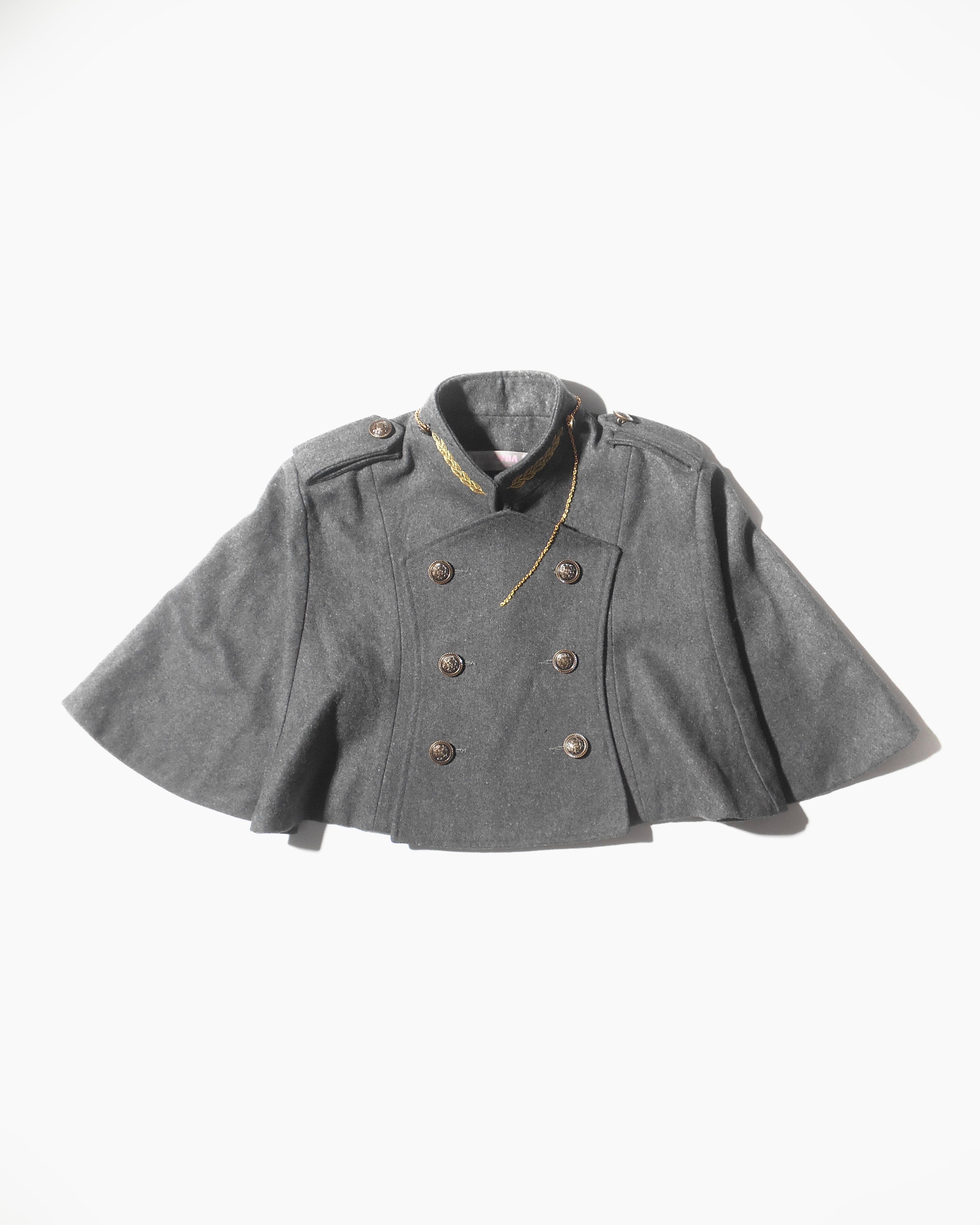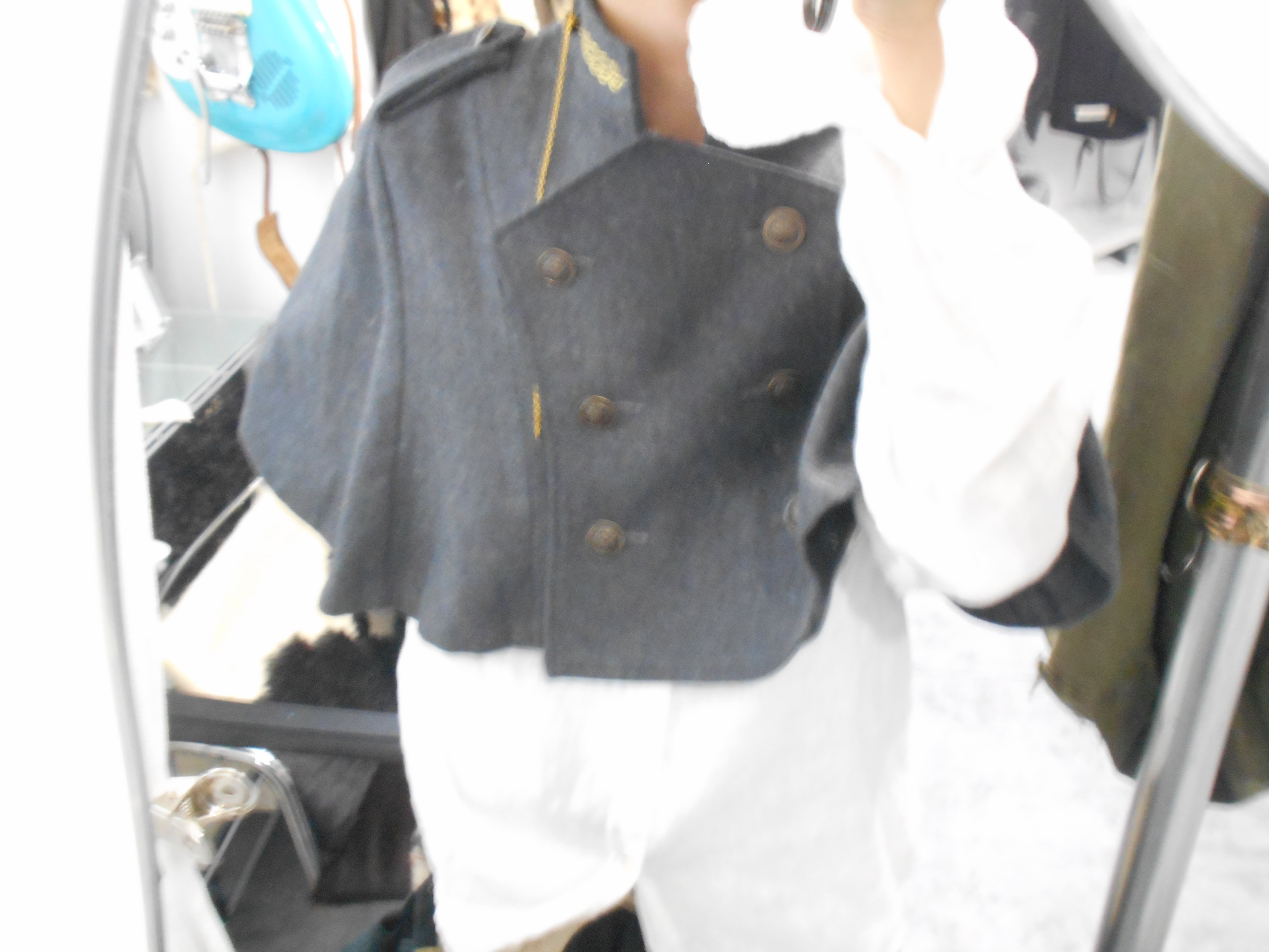 ナポレオンタイプのジャケットというのは見かけるものの、ケープの型で見かけるのは初めてで、今後ももう見かけることは少ないような気がします。