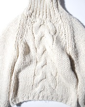 一般的なニットに比べ太い糸が使用されており、そのため全体的に丸みを帯びたシルエットとなっています。