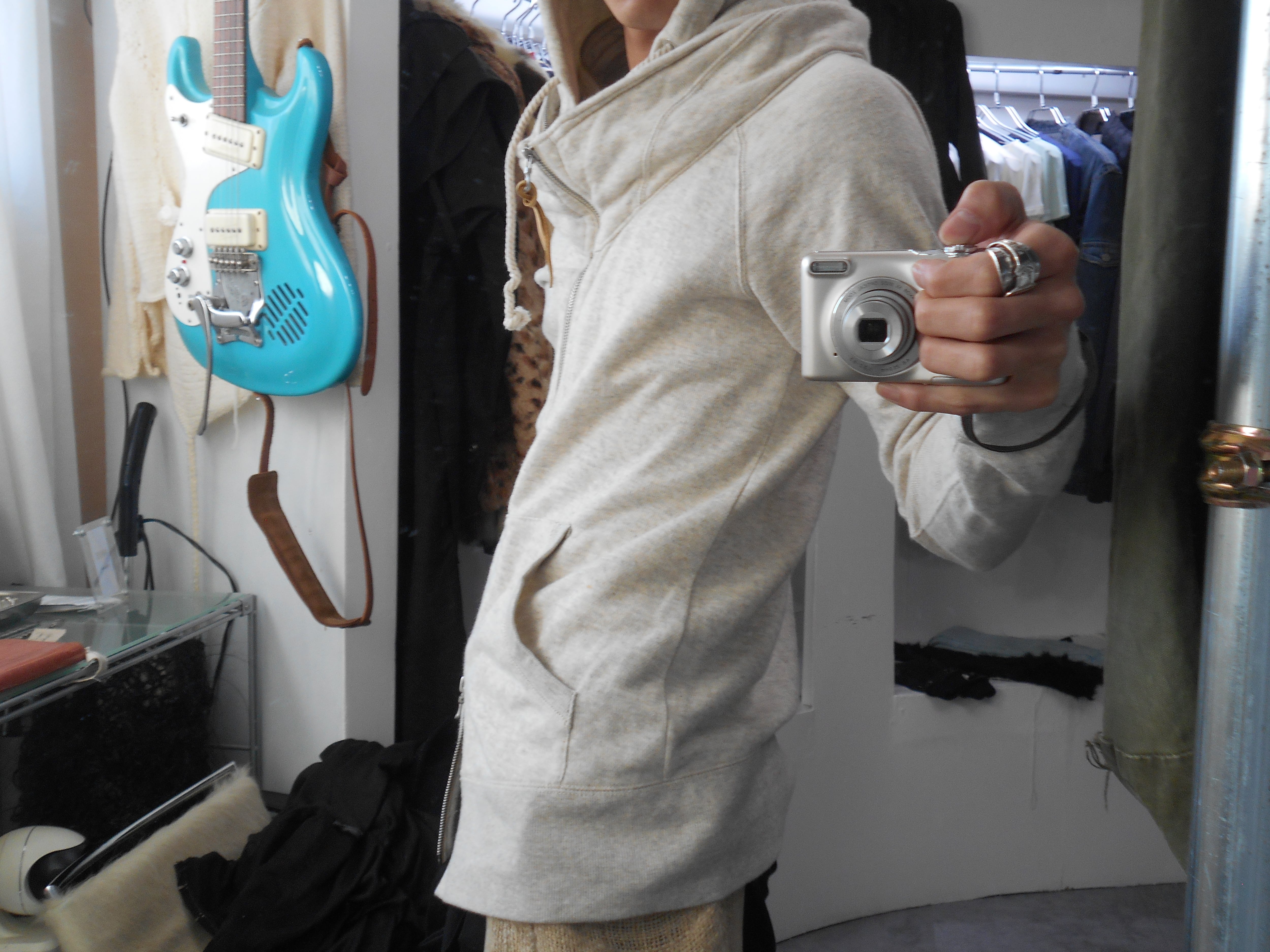 フードは収納可能な作りとなっており、ワイドな首周りにフードが収納されることで襟のように立ち上がり立体的なシルエットを作り出してくれます。