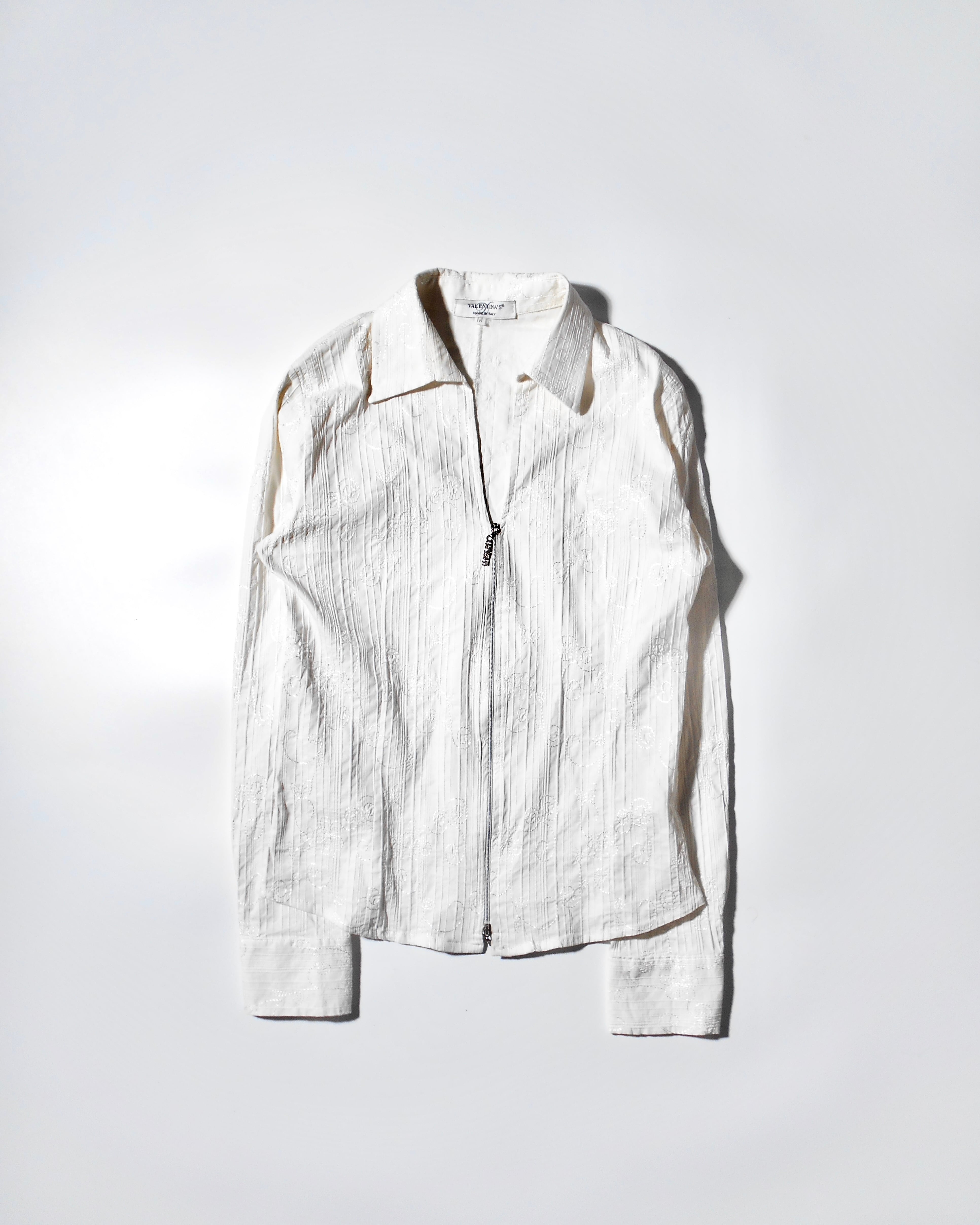 1990s Euro Vintage Silver Embroidery Shaped White Shirt