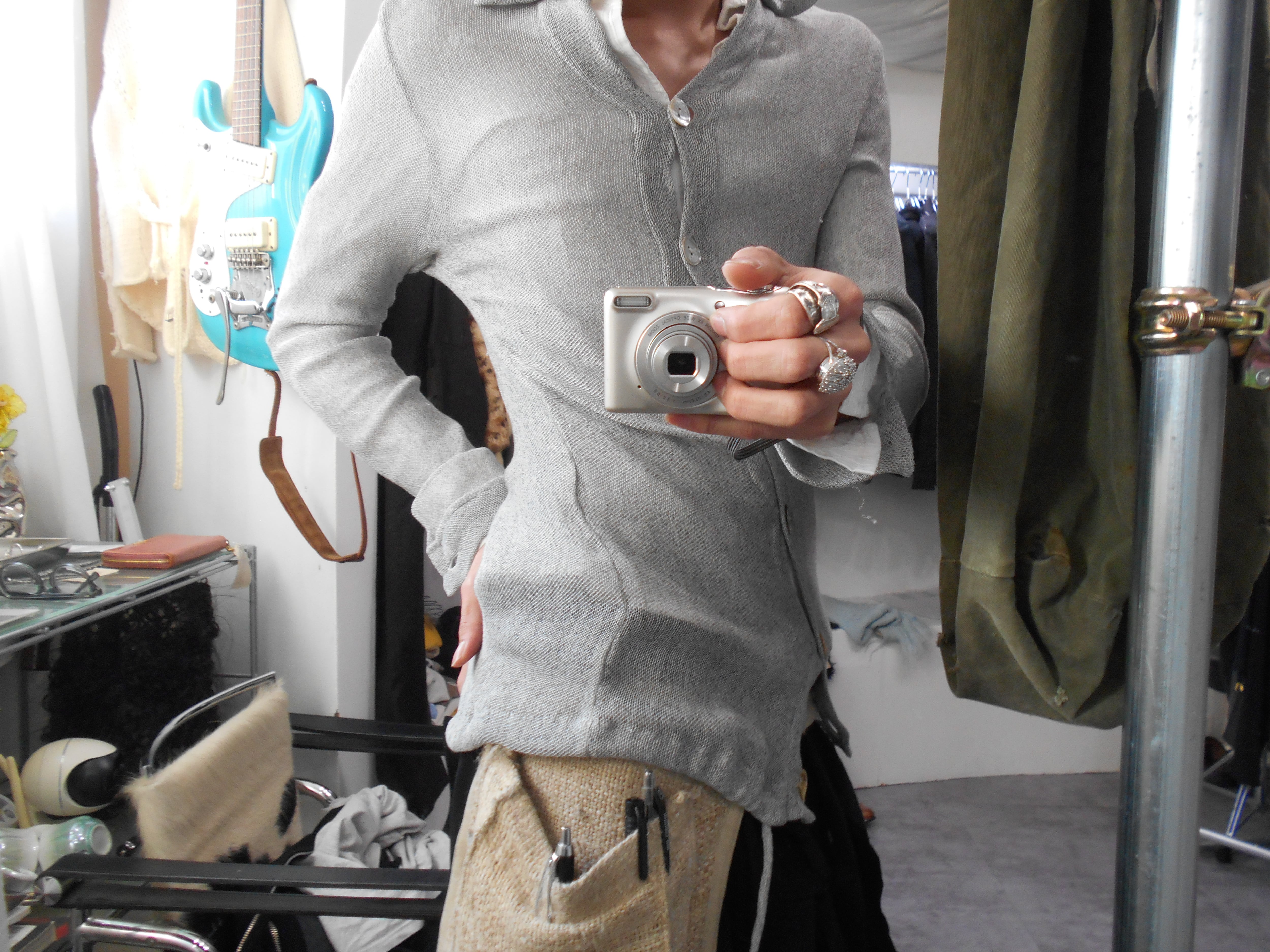 この素材感のため、着用時はシャツというよりタイトなカーディガンのようにご着用いただけるかと思います。