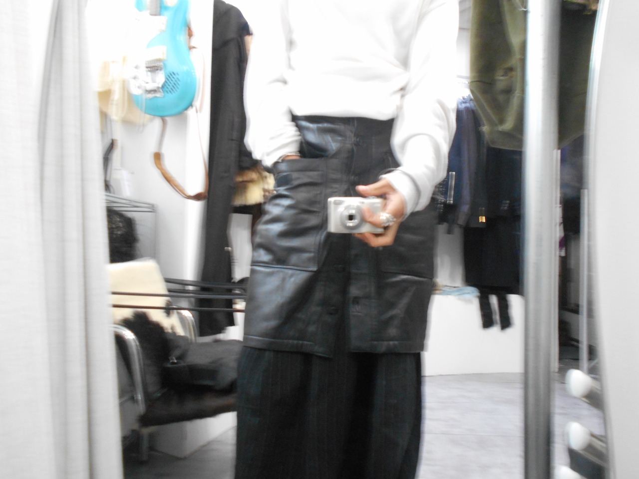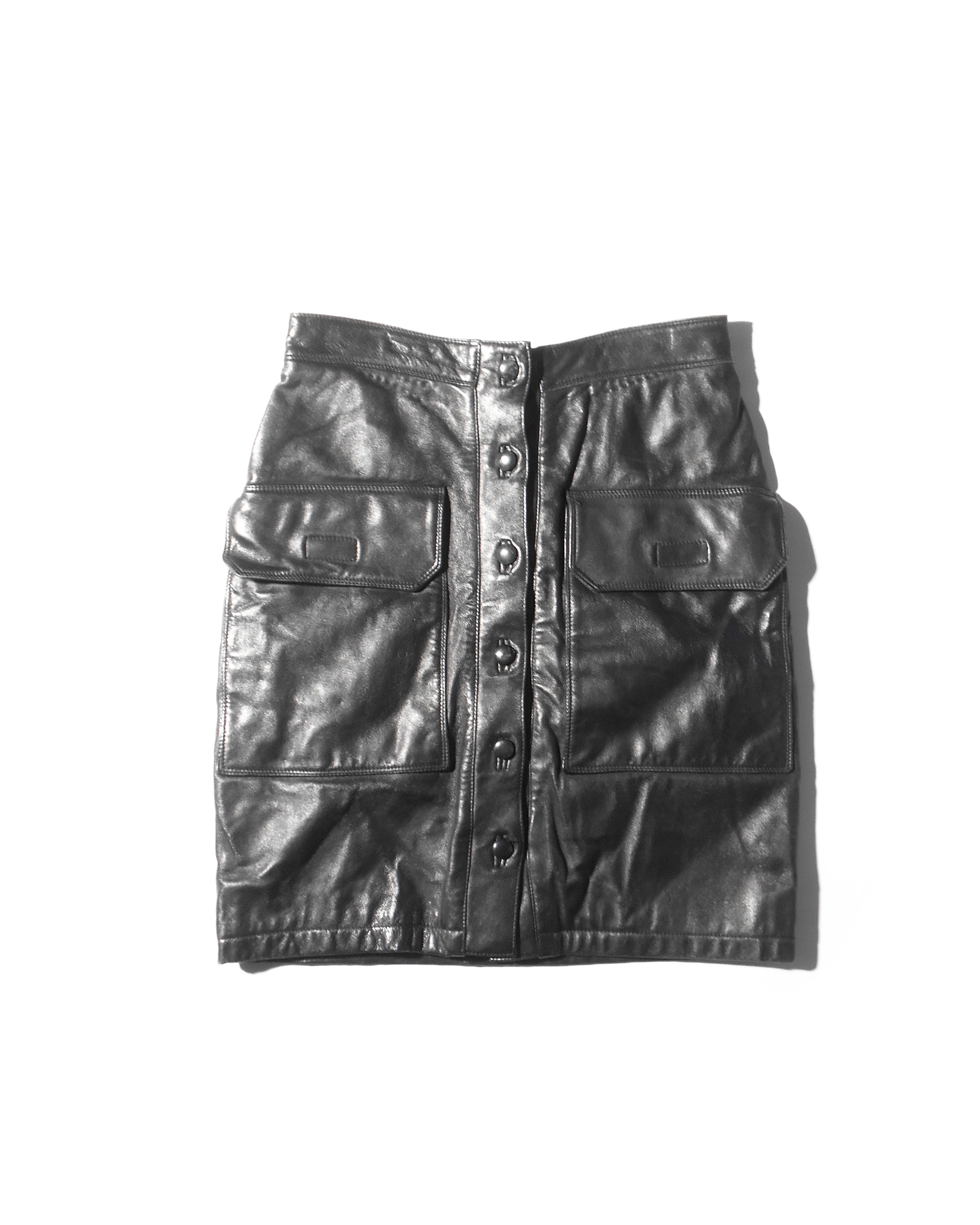 当時のアイテムらしくレザーを使ったスカートでありながら、カーゴポケットのように大きなポケットが前面に二つ付くことで現代的な見え方のするアイテムとなっています。