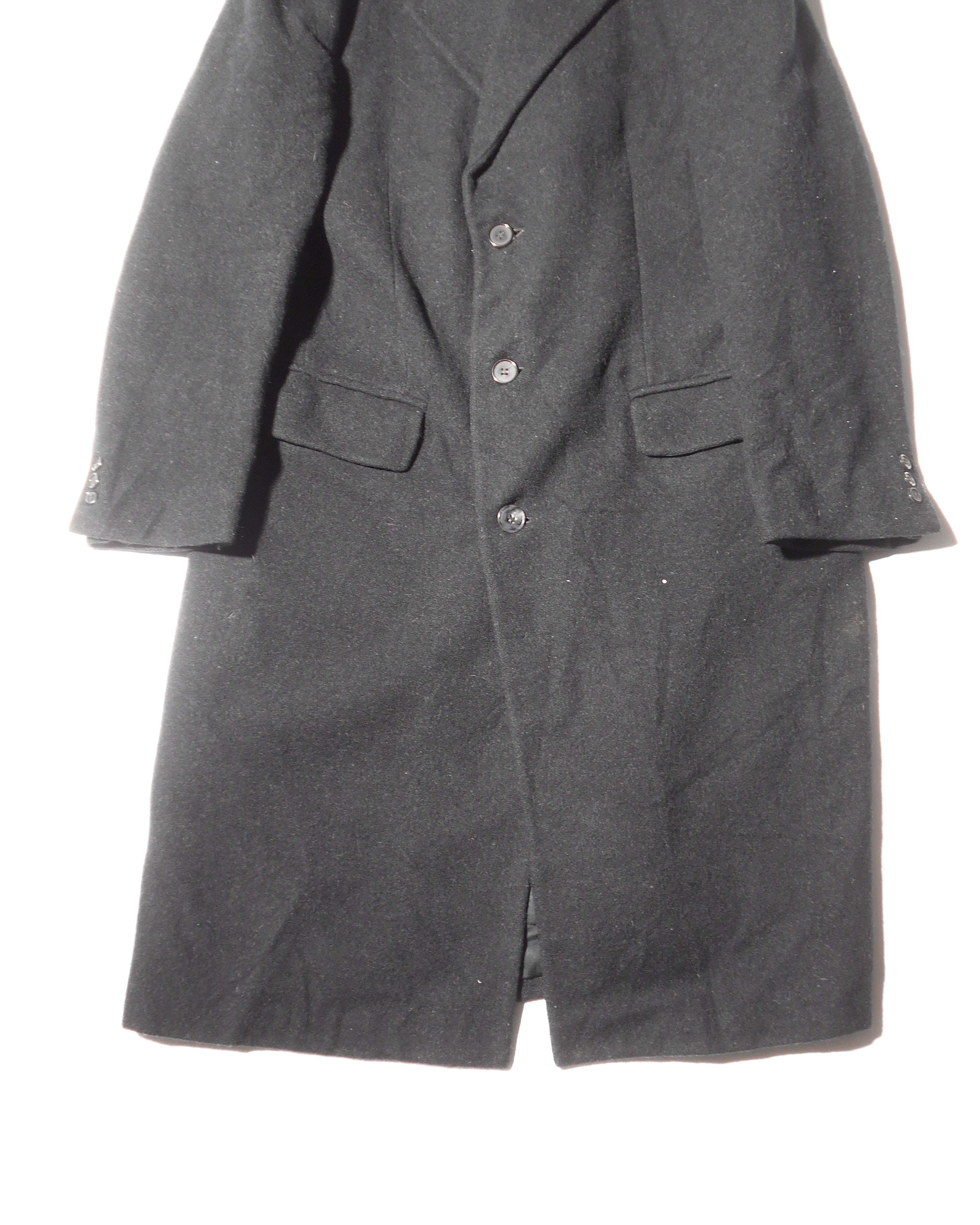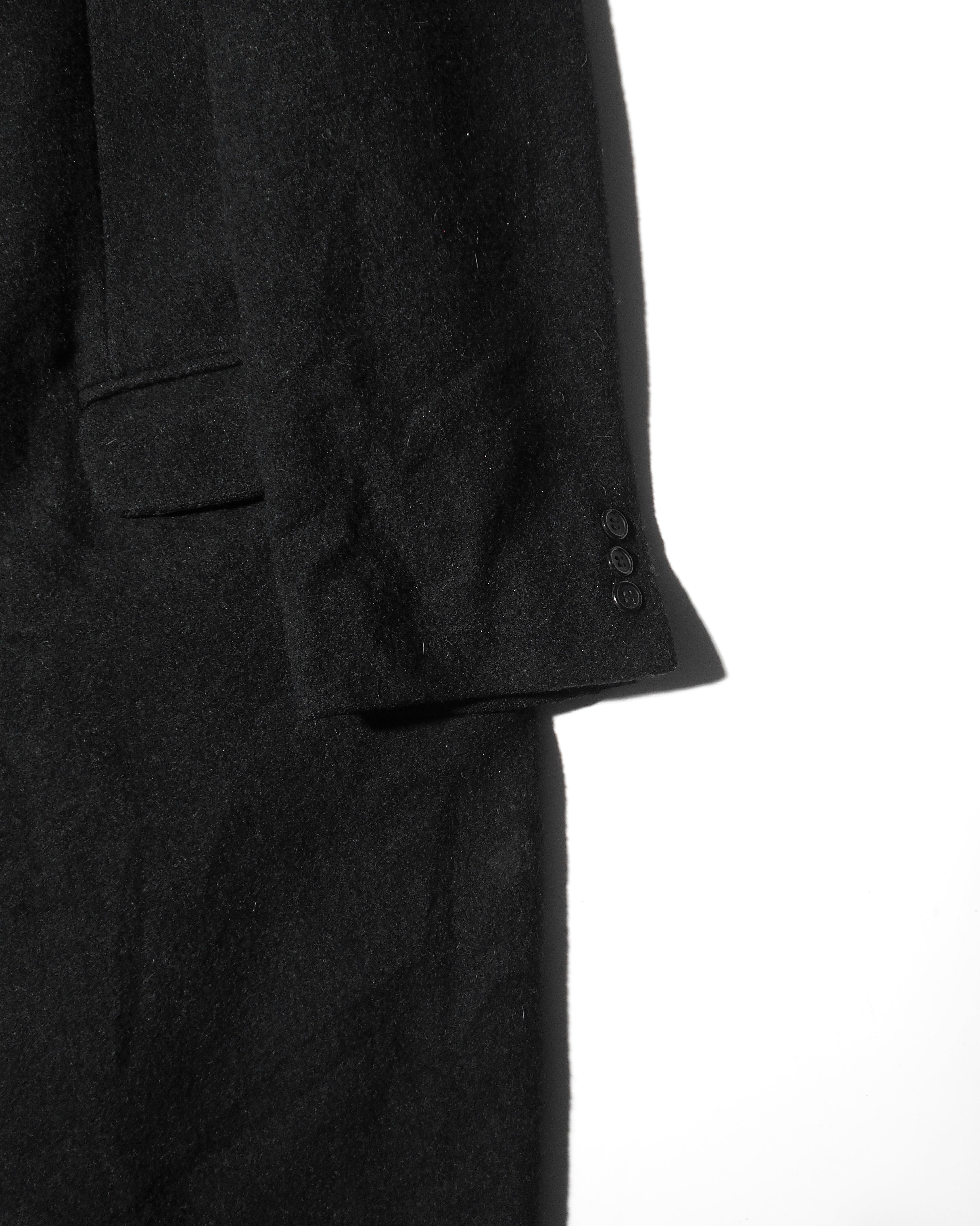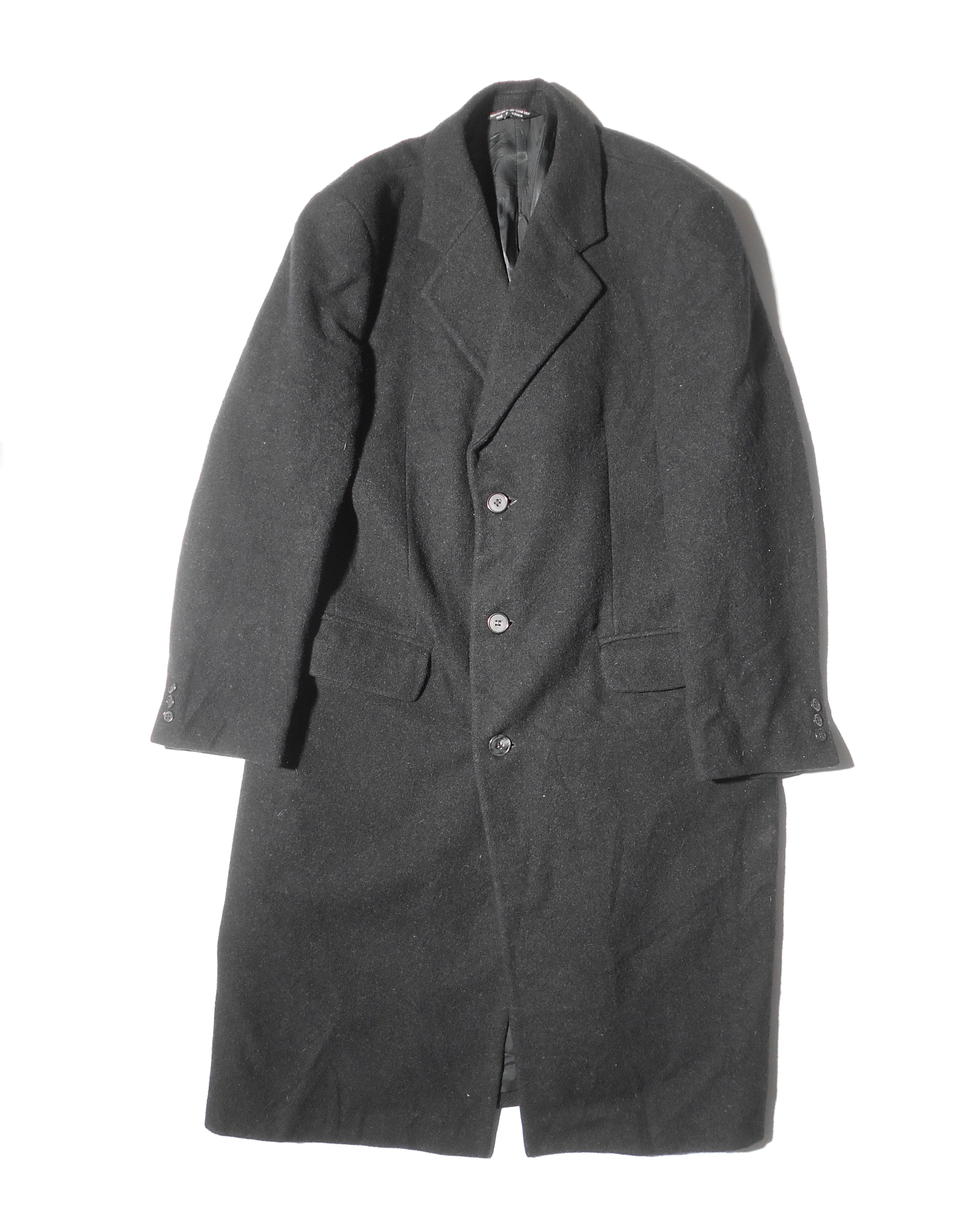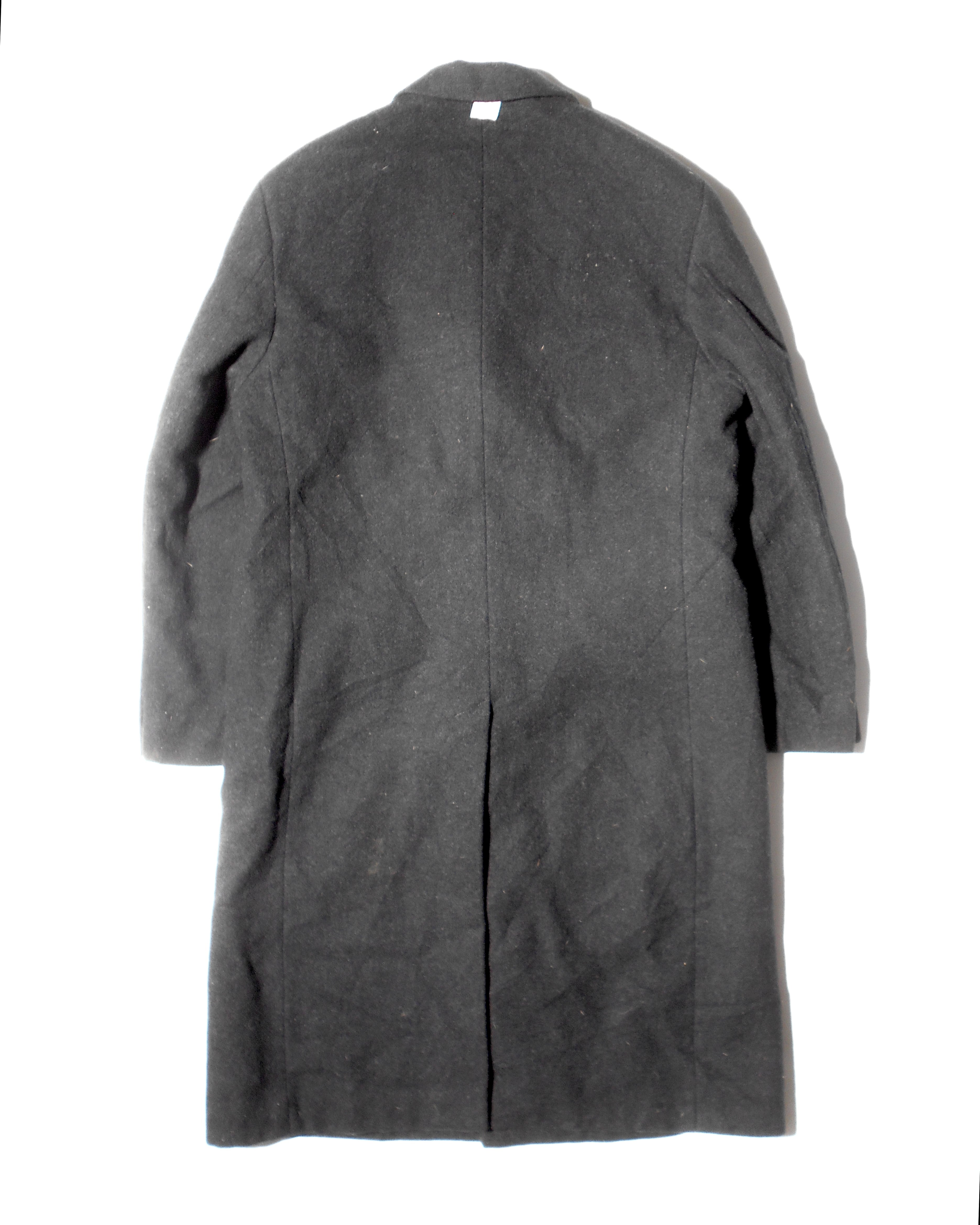 1980年代らしいパワーショルダーが特徴的な一着ですが、ウール生地の厚みや硬さも特筆すべきポイントが多々見受けられます。このくらいの年代になってくると、大量生産が始まった時代背景も相まって、薄くて柔らかいウールが多く見られることが多いように感じられ一方、こちらのアイテムは固く分厚いウールが使われており、重みによる暖かさが生まれています。