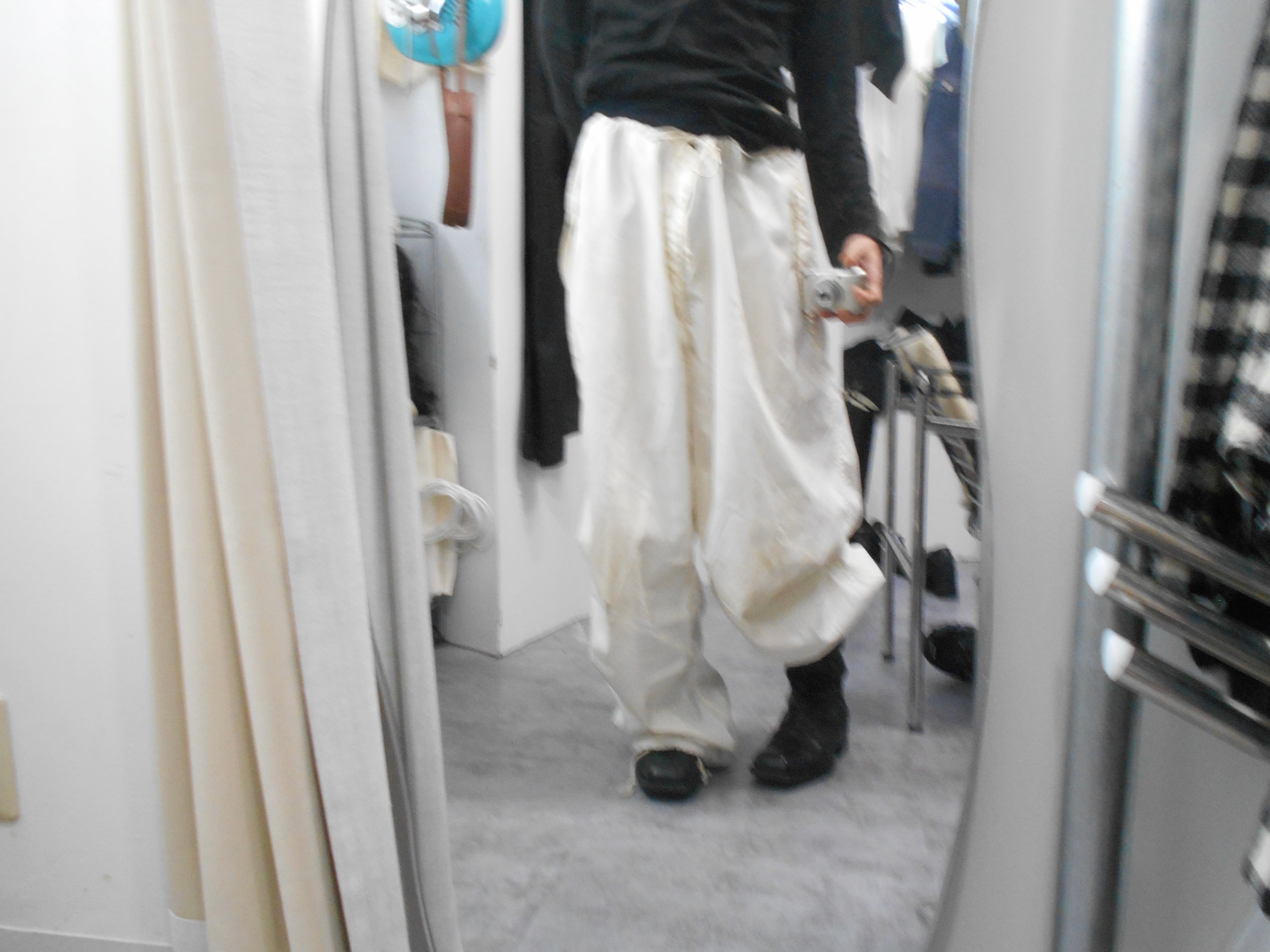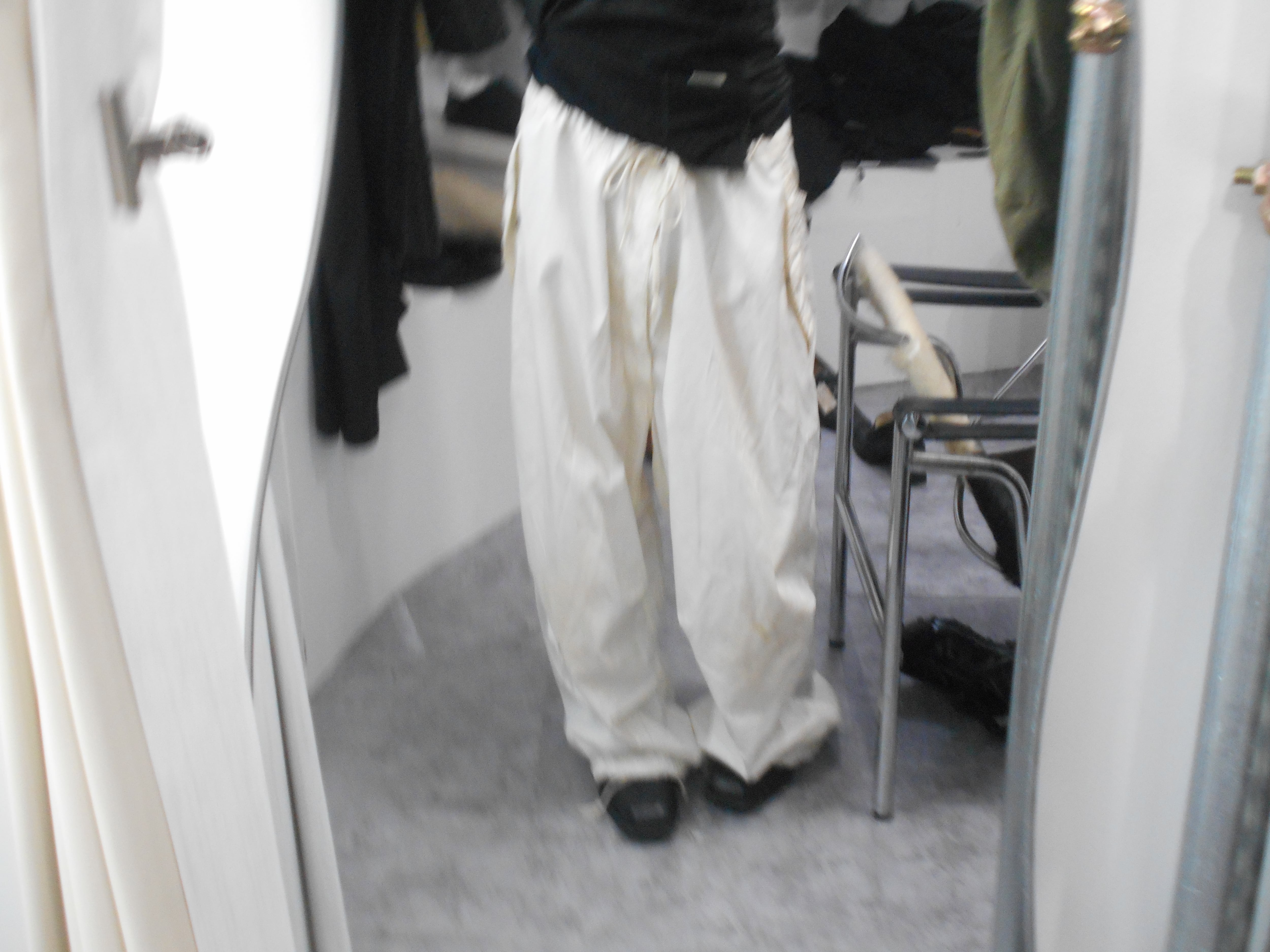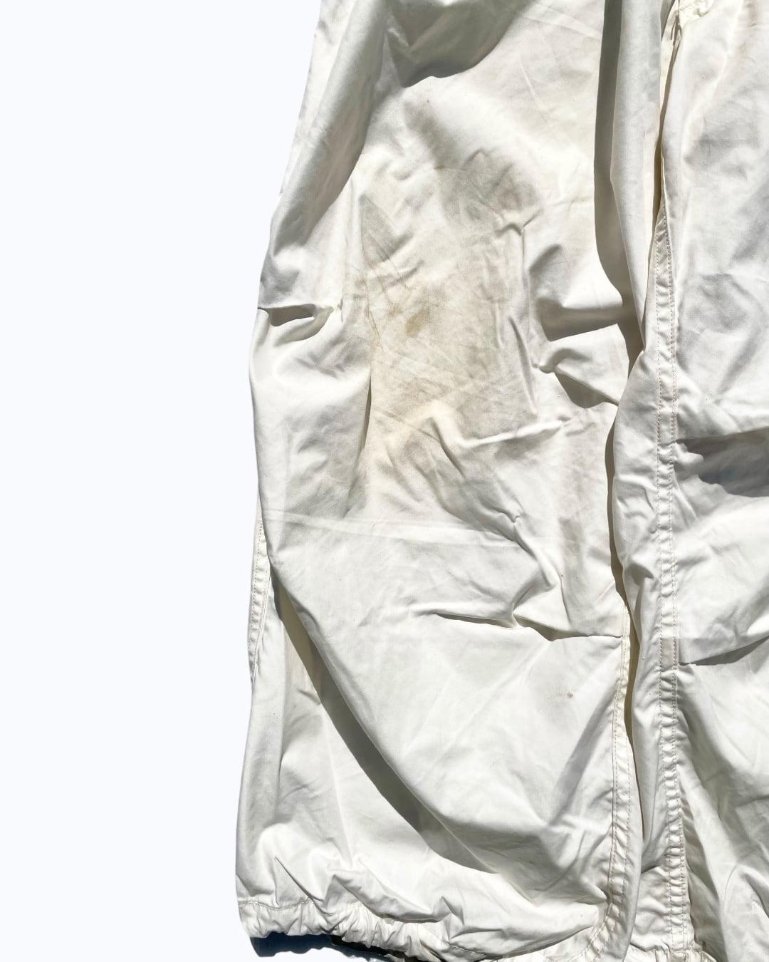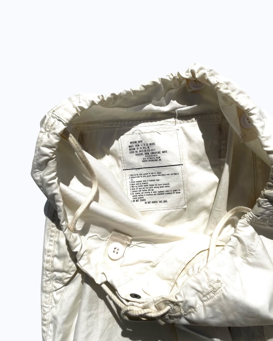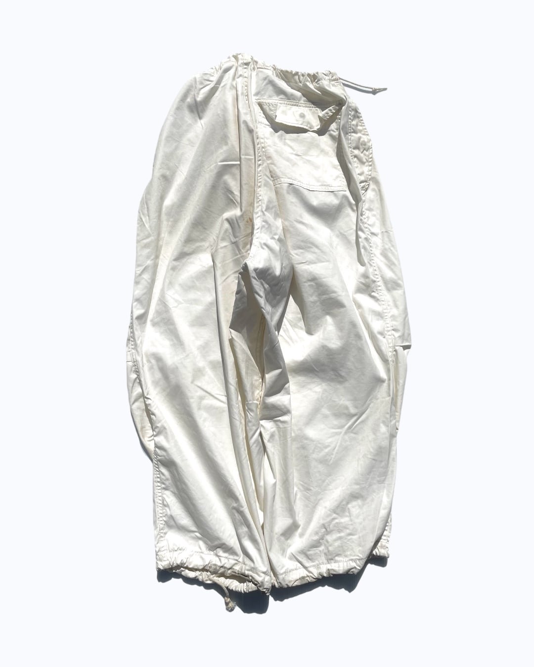 雪上での戦闘の際に身を隠すために使われていたオーバーパンツであったため、本来の用途としてはパンツの上にさらに重ねて履くことを想定して作られた物であるため、太い作りとなっています。、
