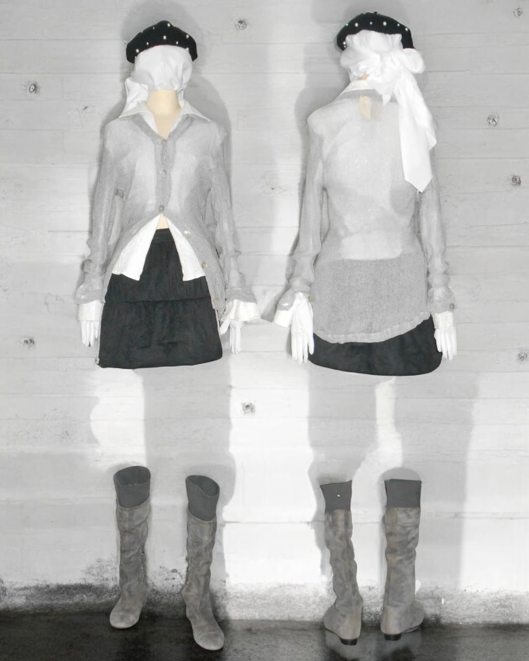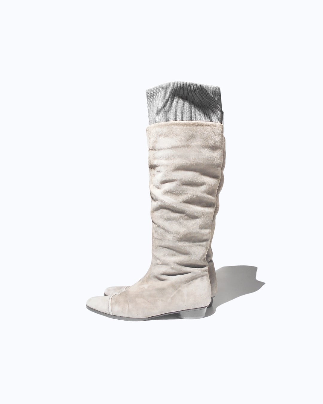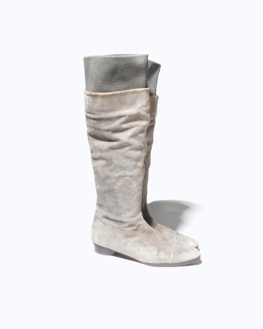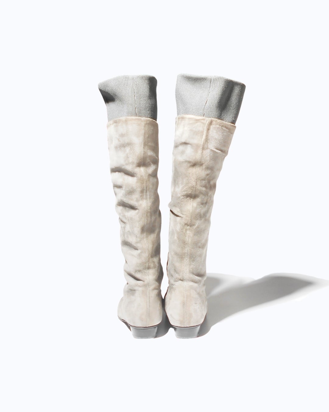 1990-2000s Vintage Gray Suede & Rib Switching Long Boots