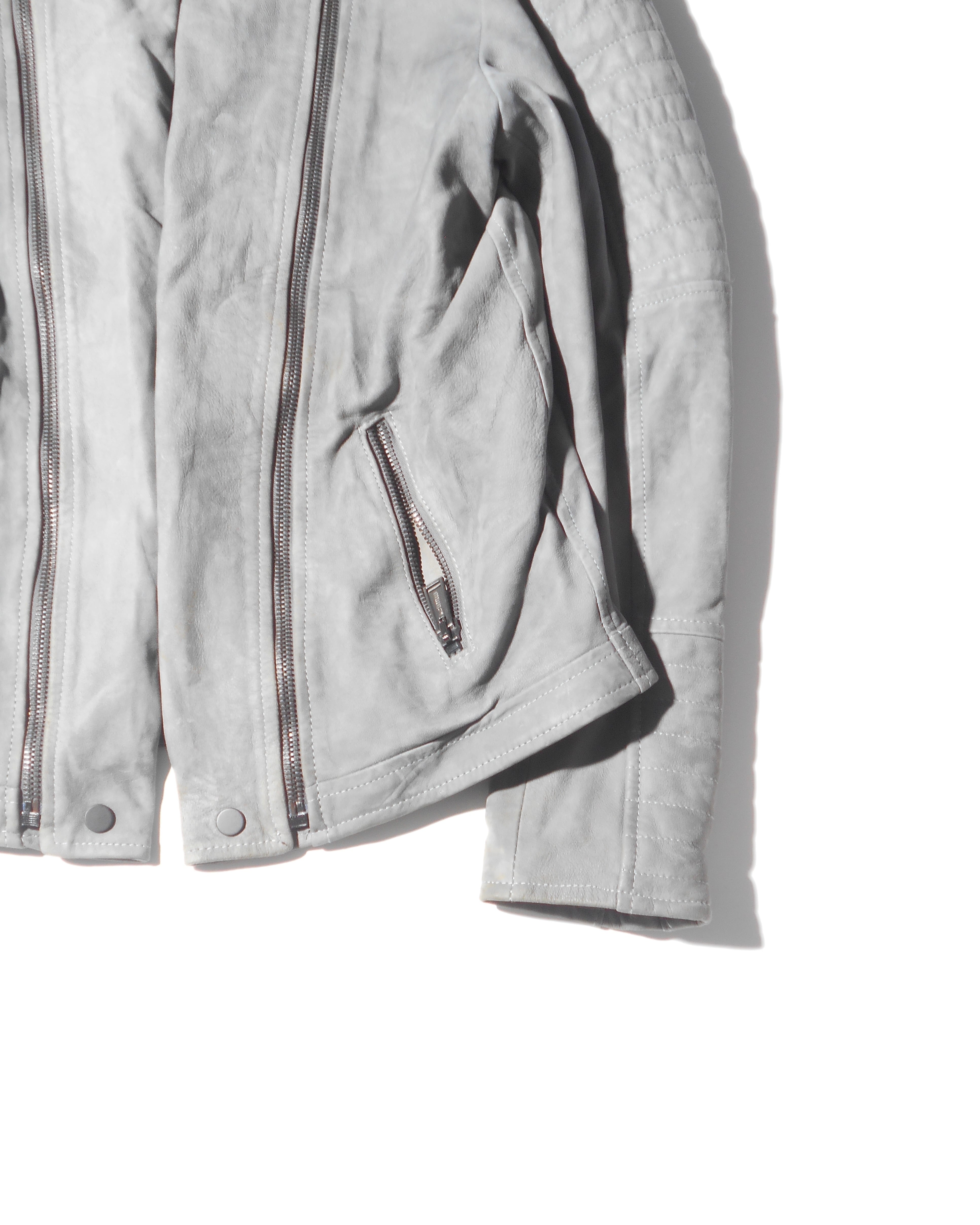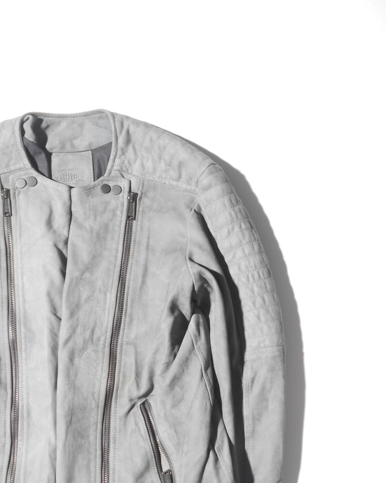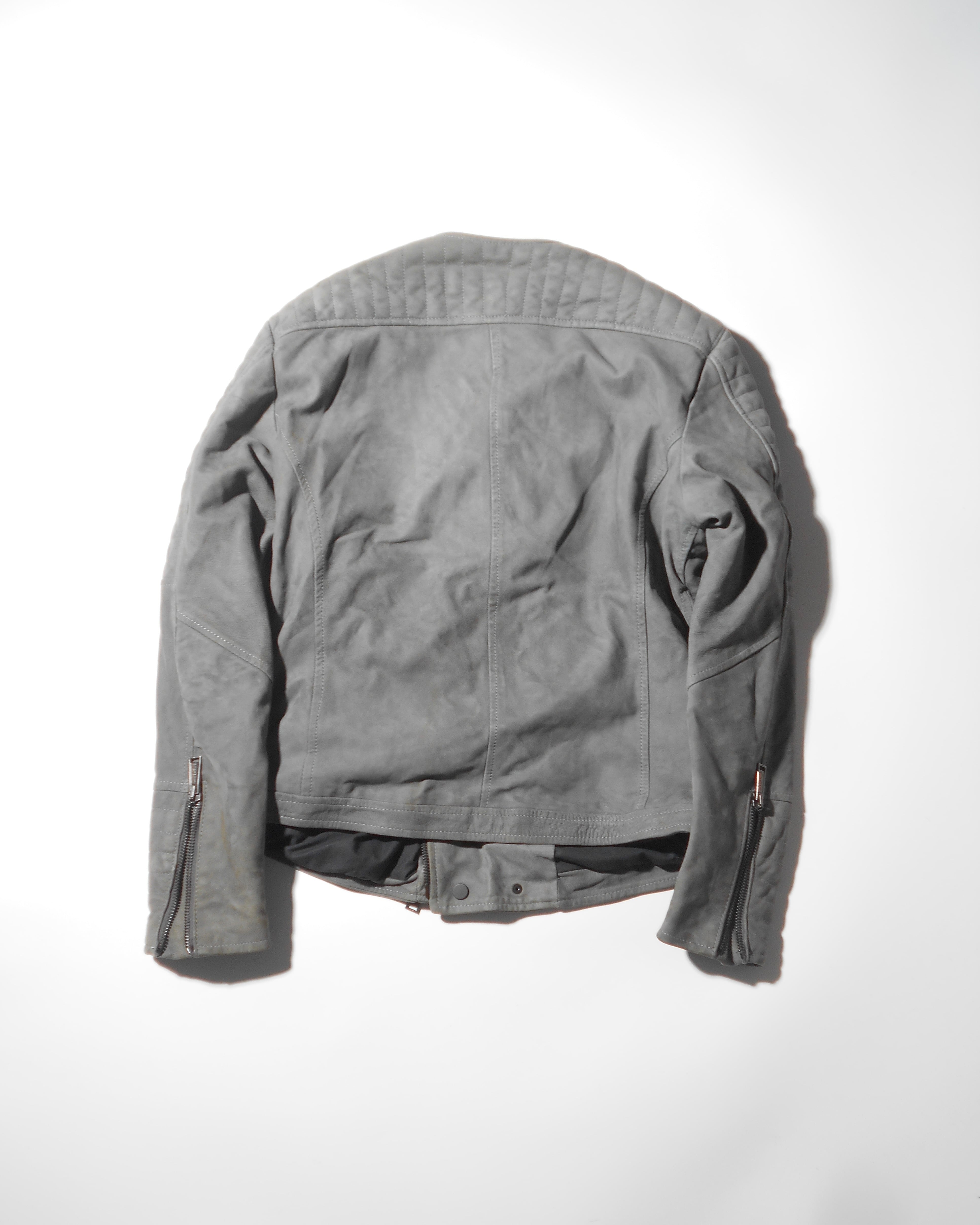 レザーのアイテムにしては珍しく、グレーが使用され、また革の質感もこの型のライダースには珍しくラムレザーのような柔らかな素材が使用されています。レザージャケットの持つ無骨さがこの柔らかい質感と色味により抑えられ、現代的なスタイリングに落とし込みやすい一着となっているように感じられます。
