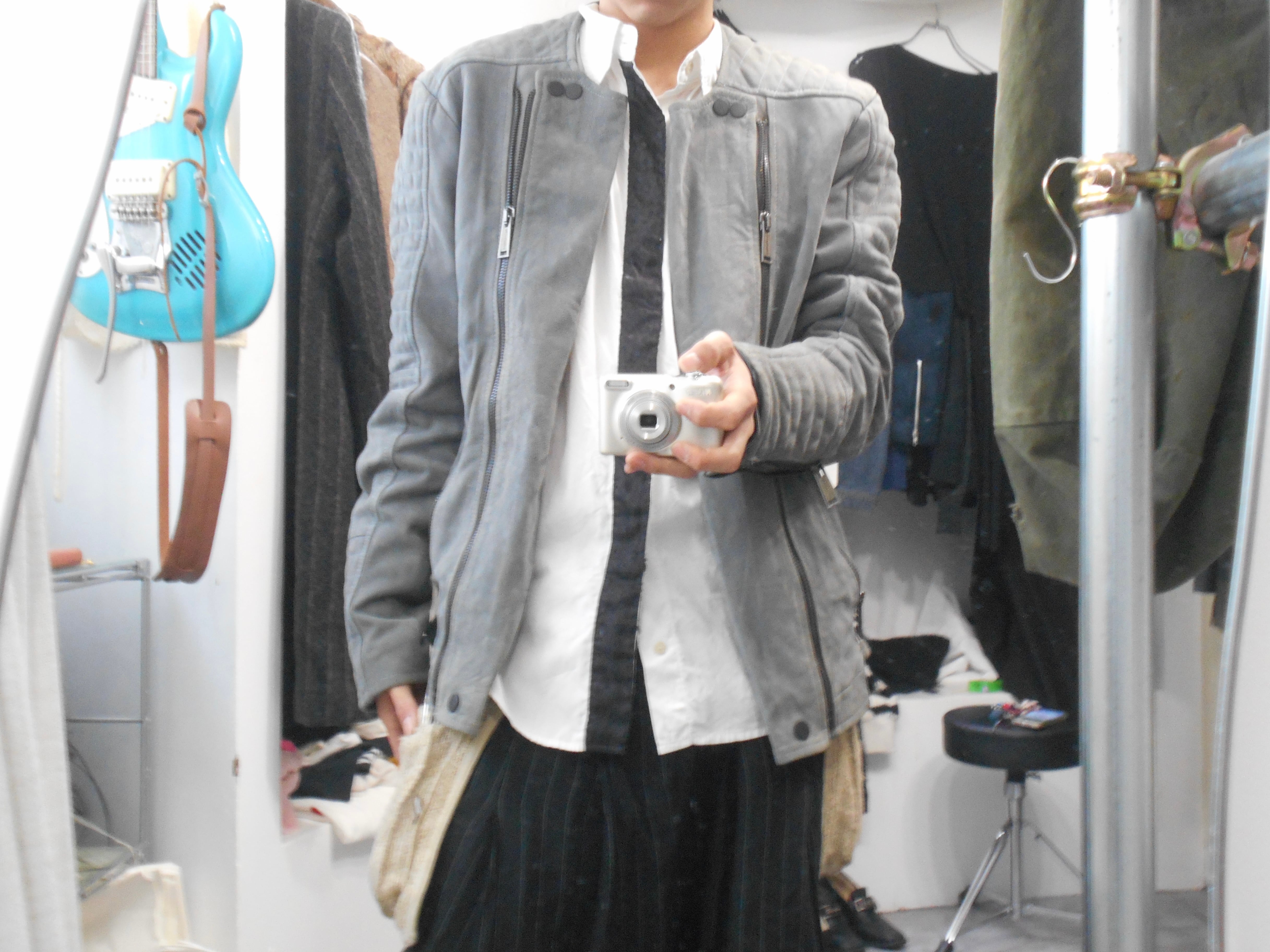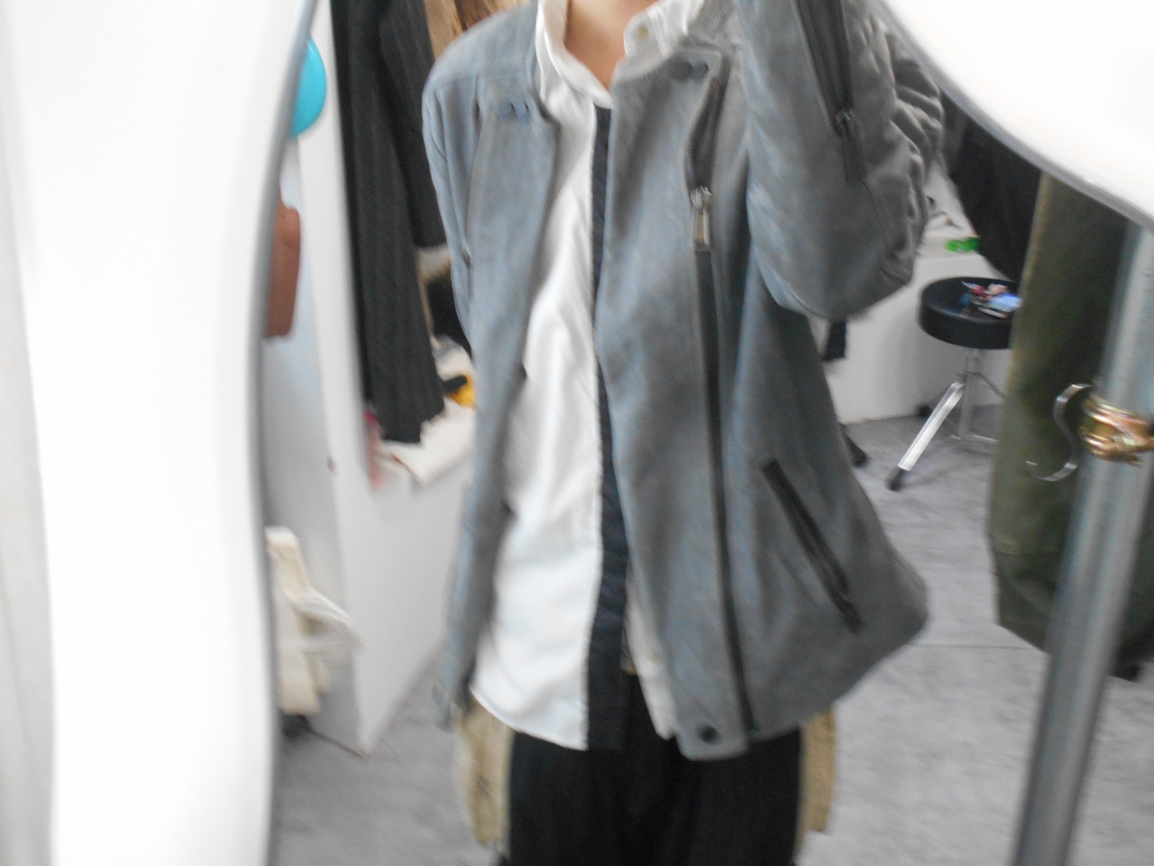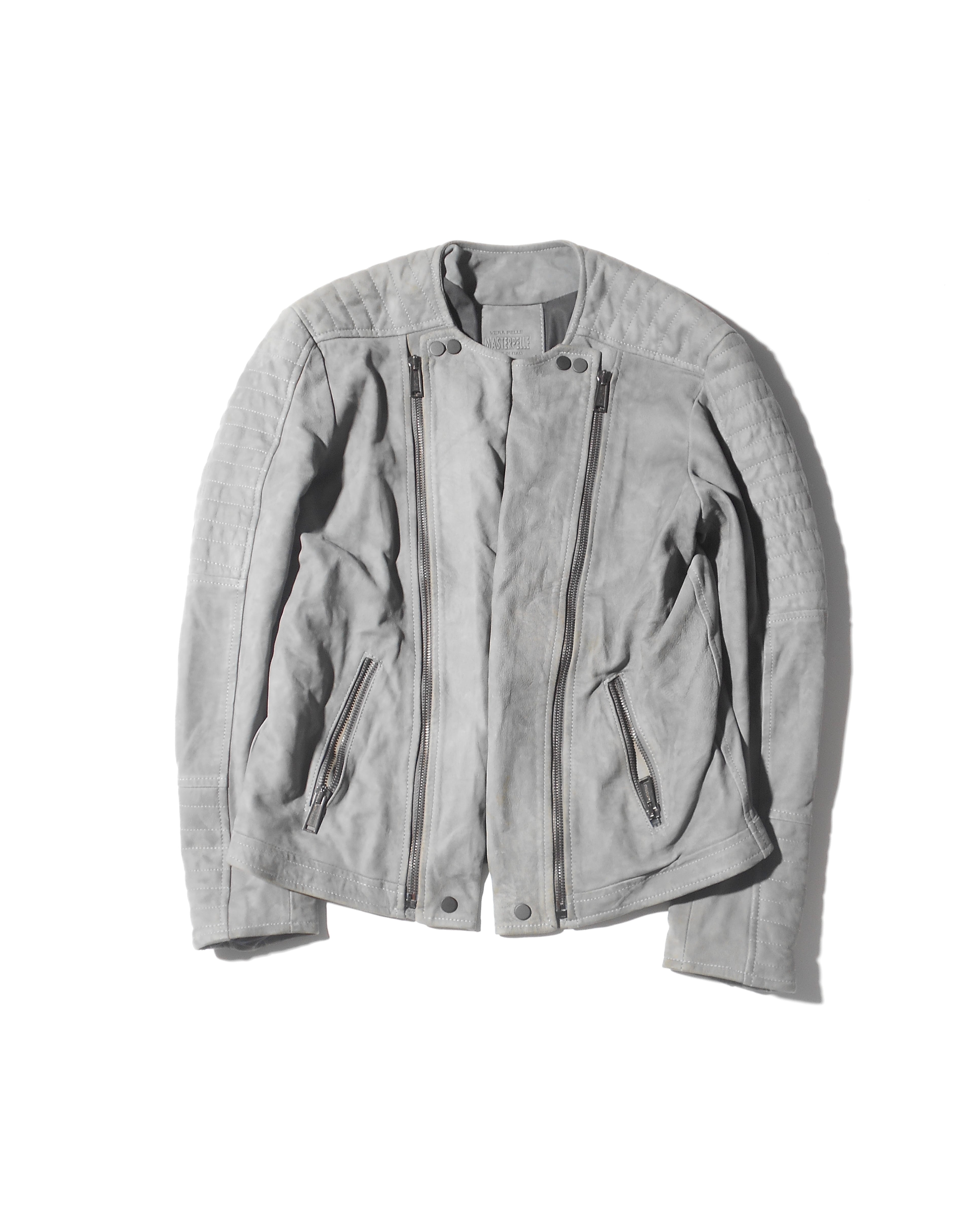 レザーのアイテムにしては珍しく、グレーが使用され、また革の質感もこの型のライダースには珍しくラムレザーのような柔らかな素材が使用されています。レザージャケットの持つ無骨さがこの柔らかい質感と色味により抑えられ、現代的なスタイリングに落とし込みやすい一着となっているように感じられます。
