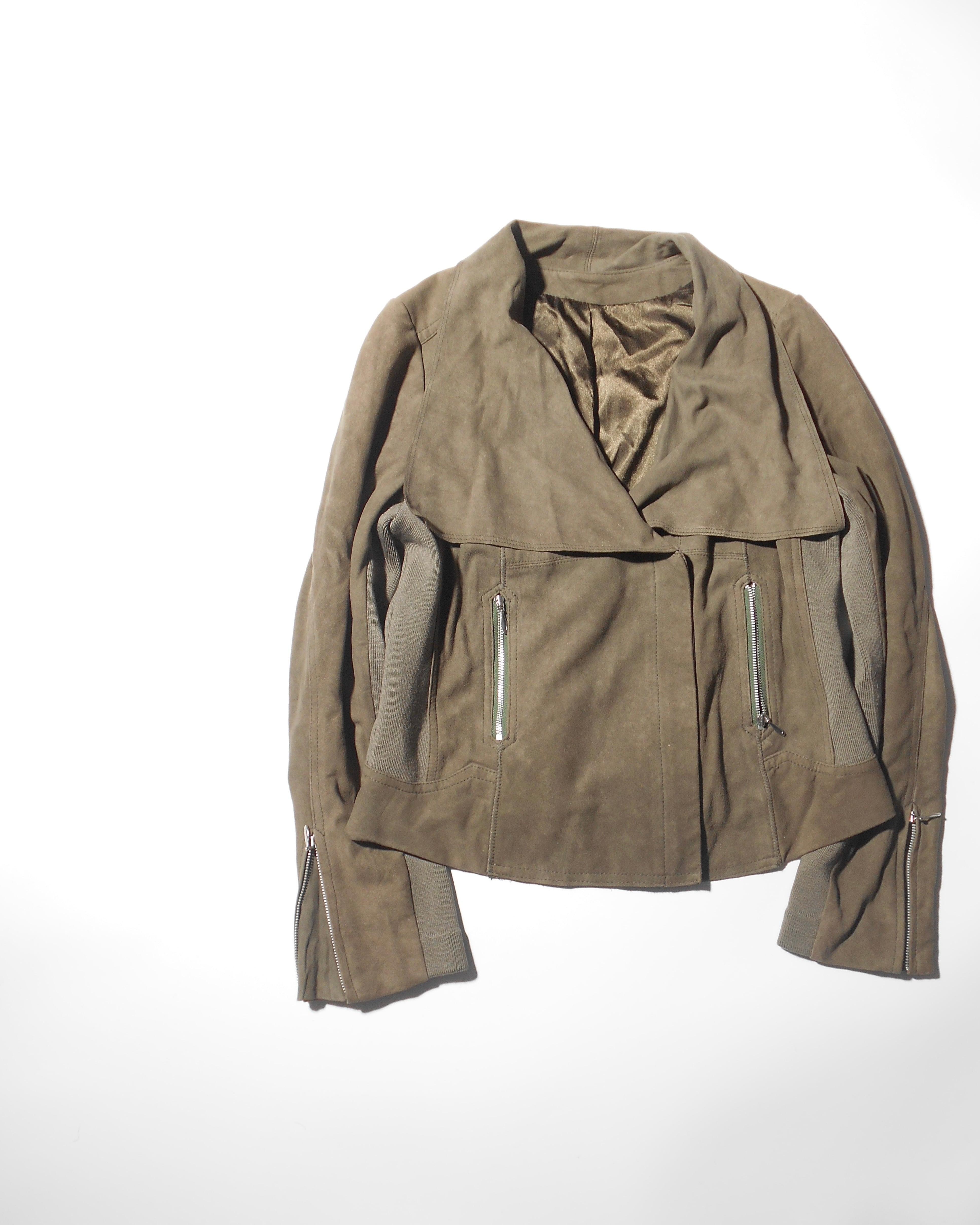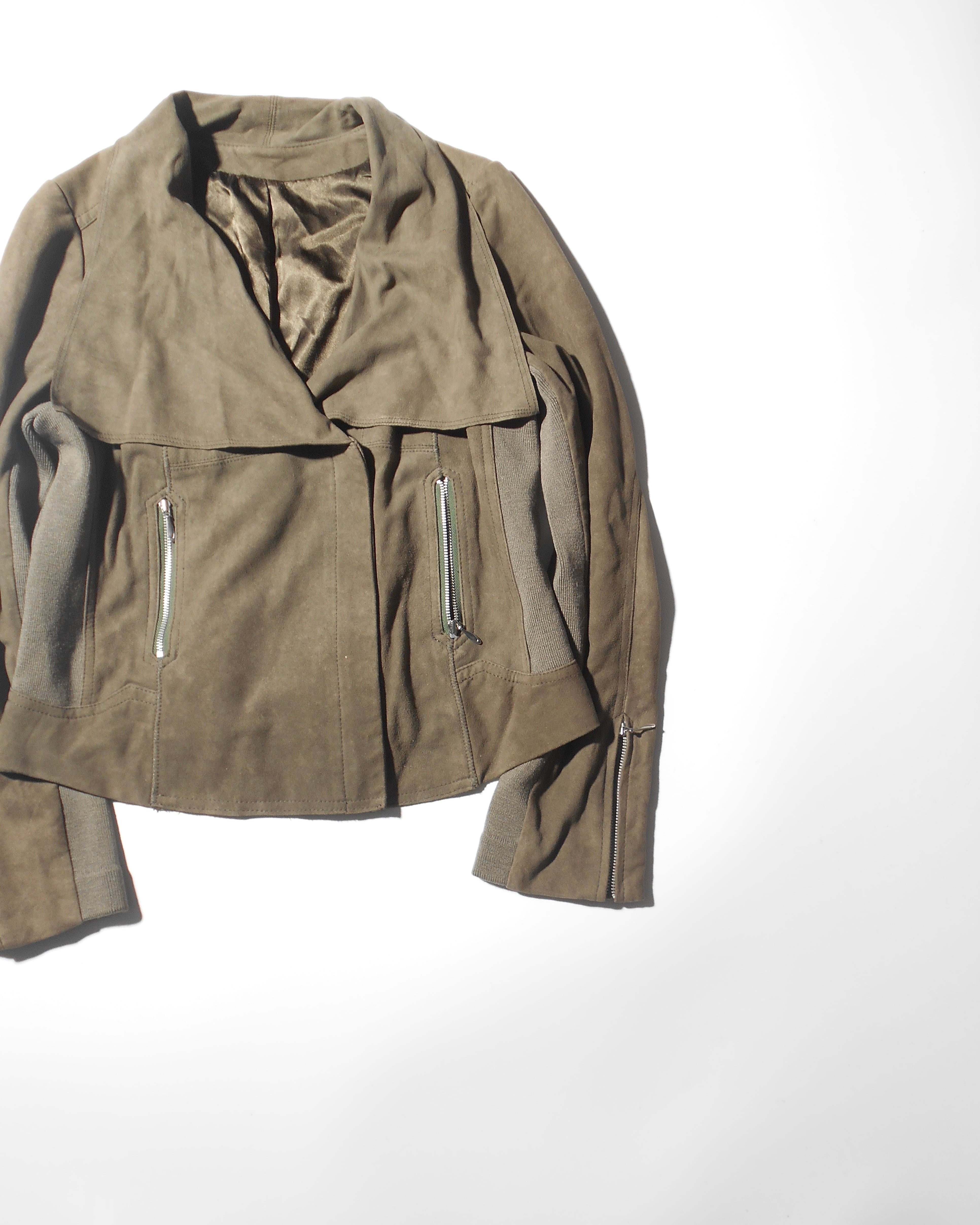 1990s Vintage Khaki Goat Skin Asymmetrical Jacket
