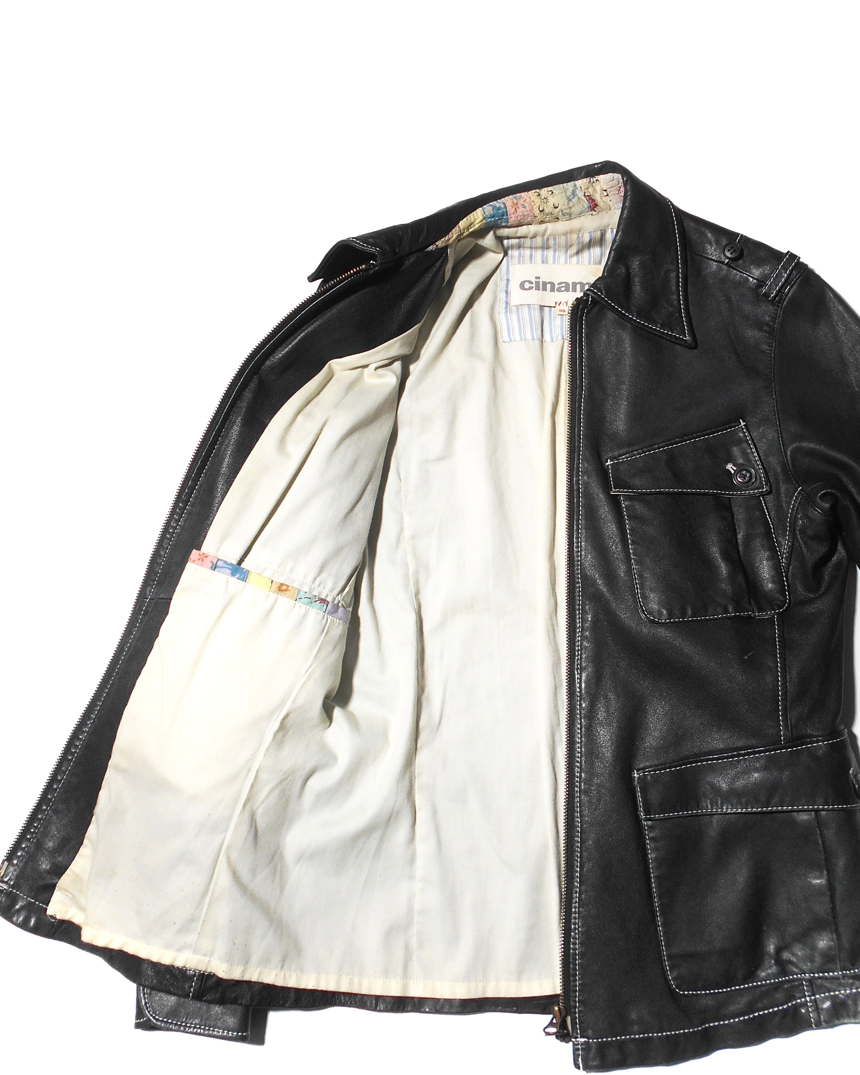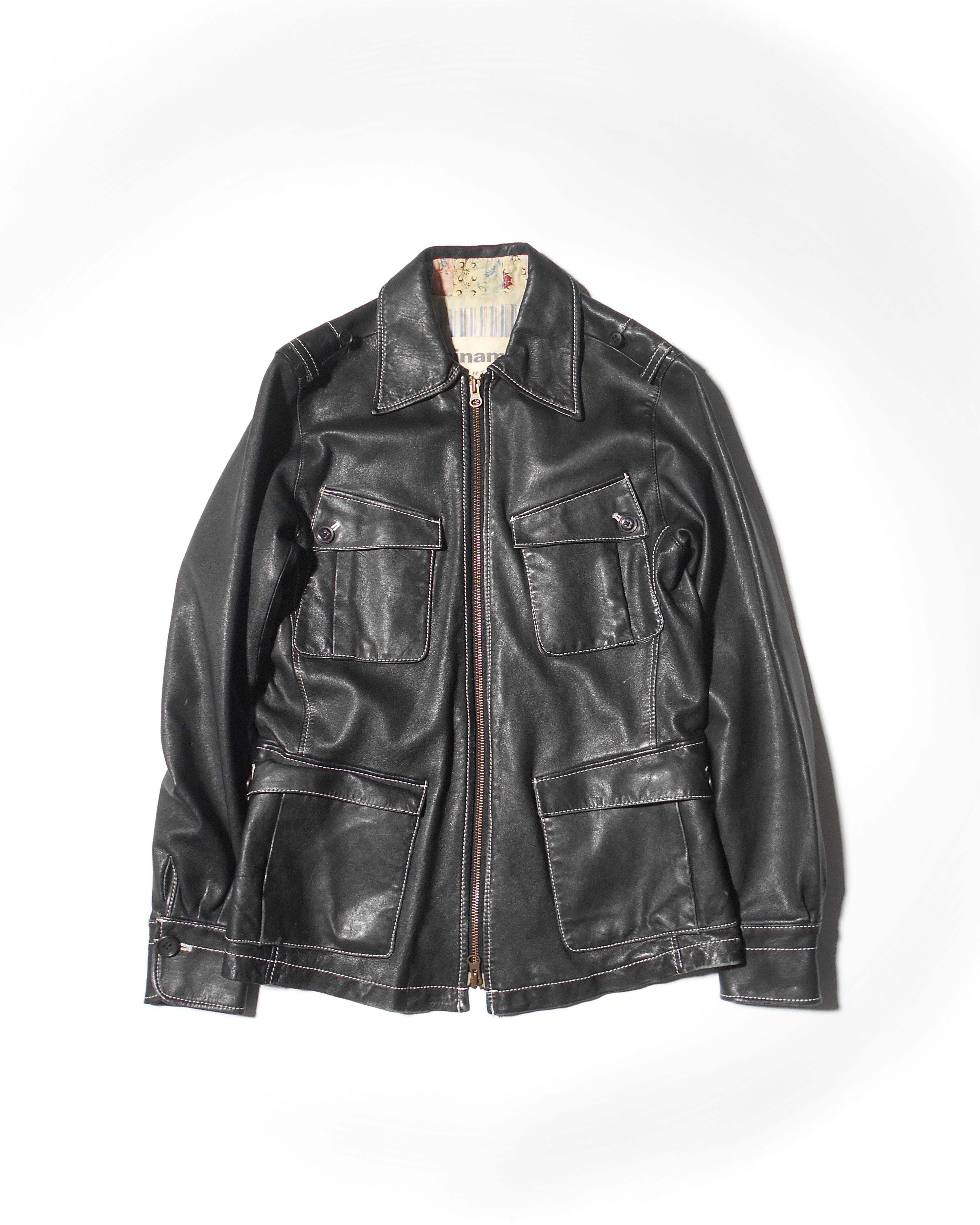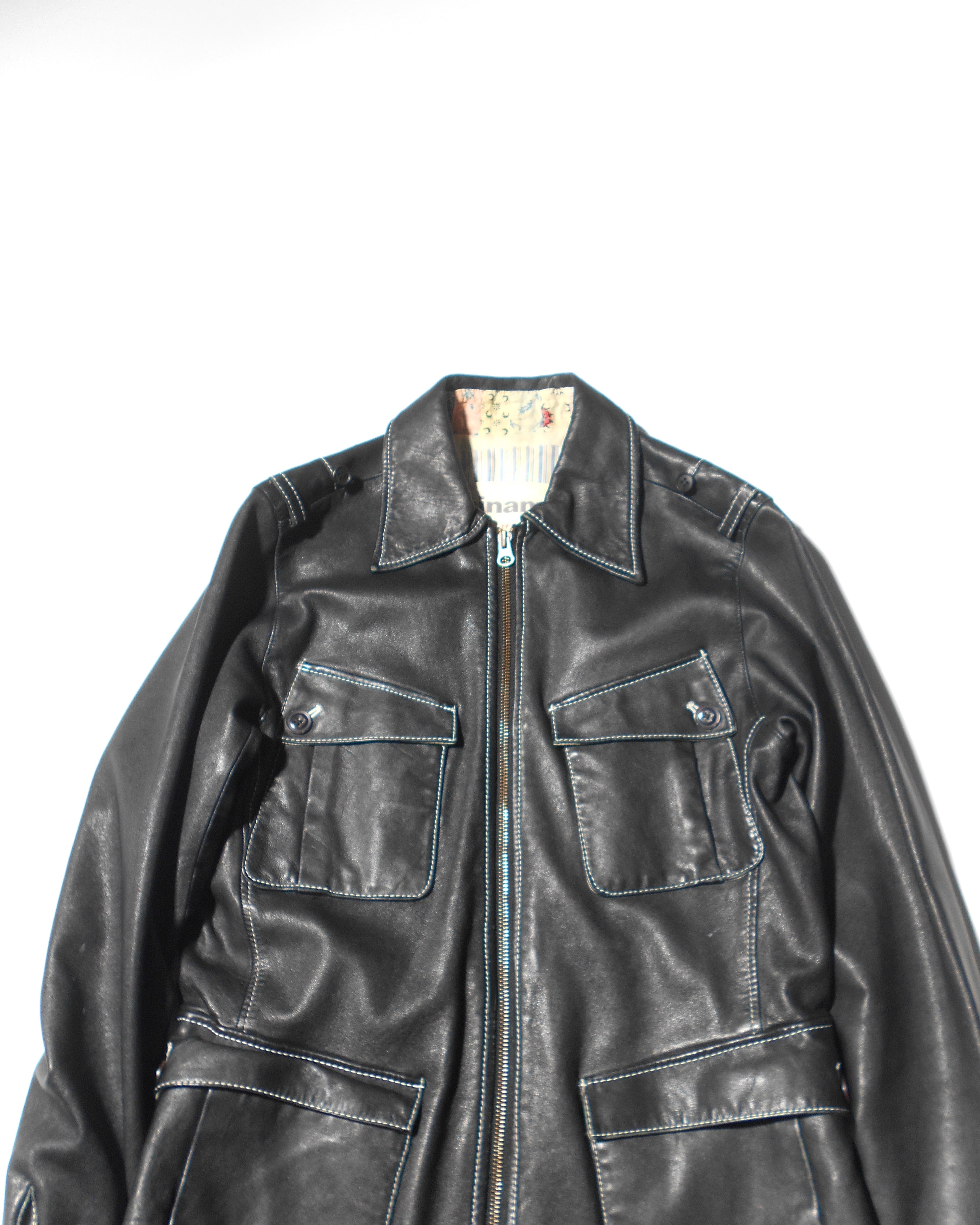 2000s Vintage US Jungle Fatigue Jacket Type White Stitching Sheep Leather Jacket