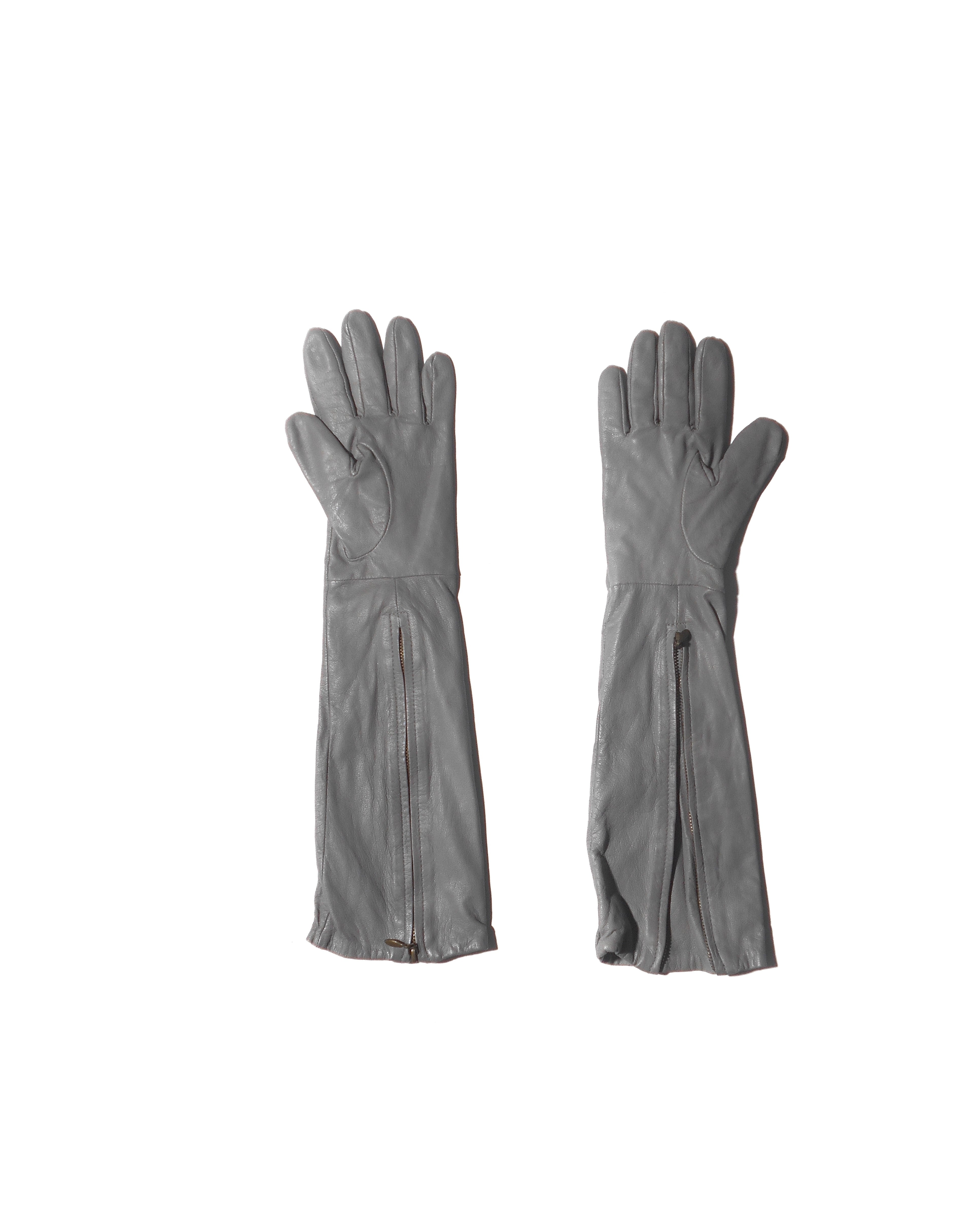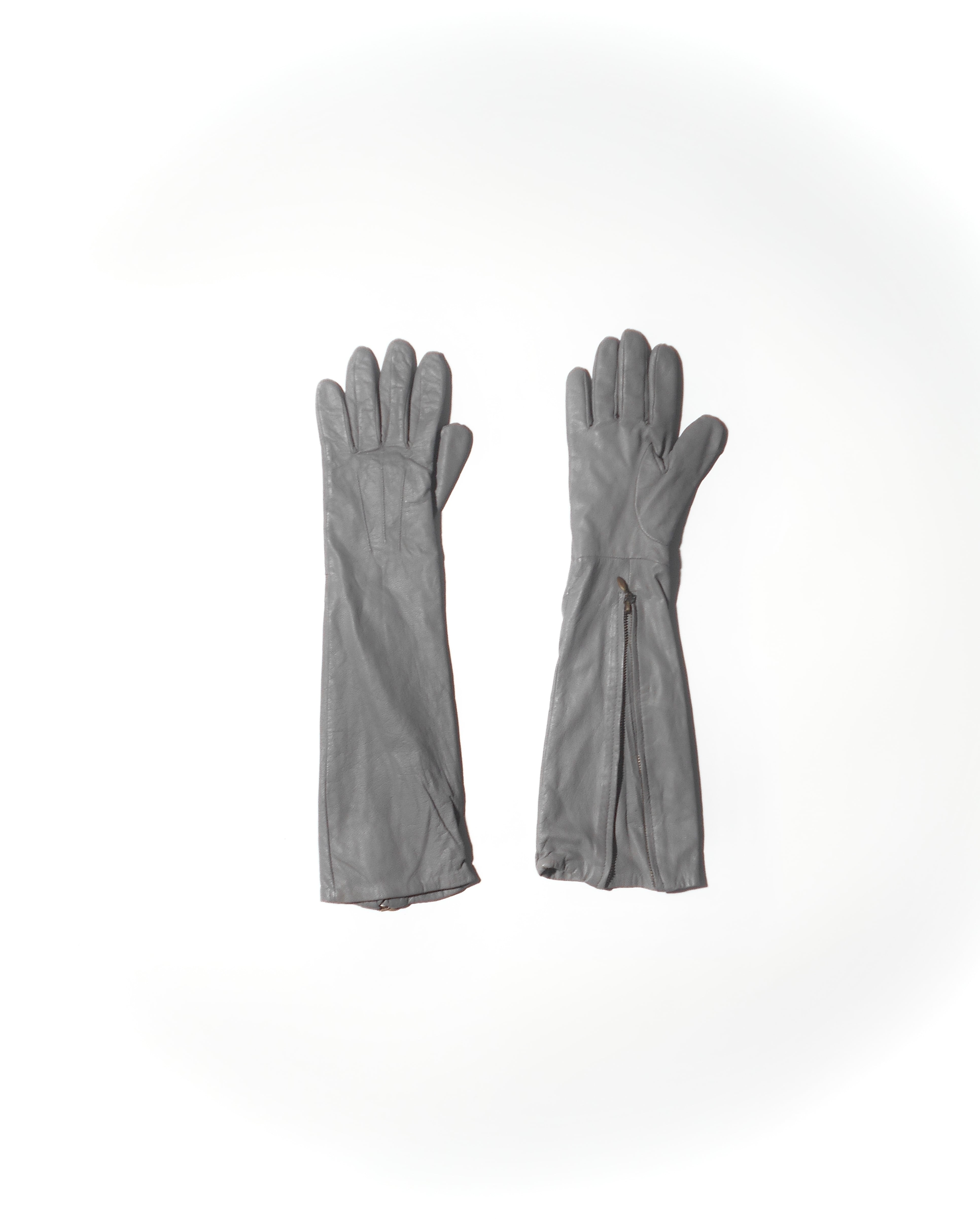 1990s Vintage Gray Leather Long Gloves by Old Gap