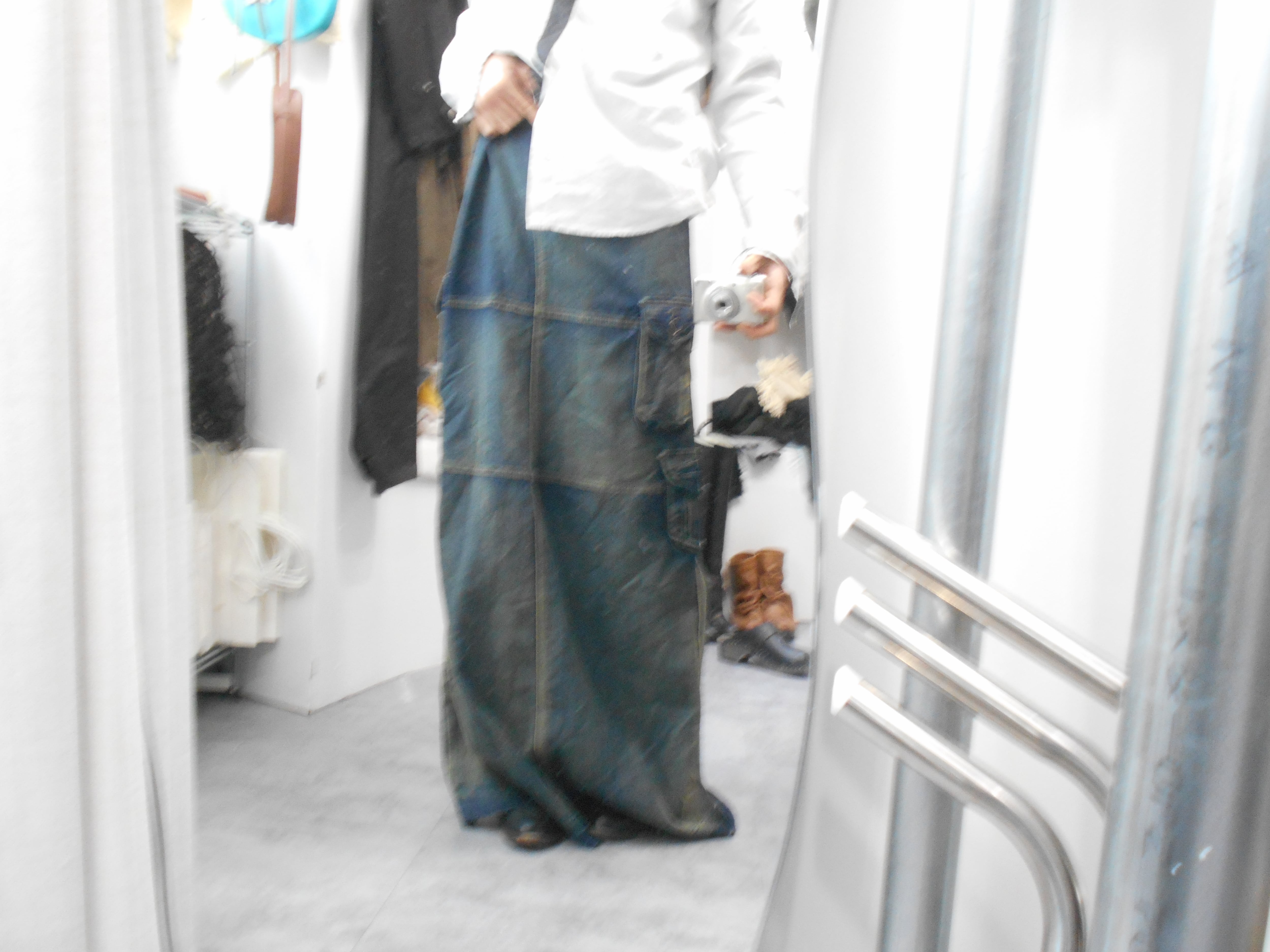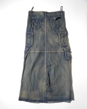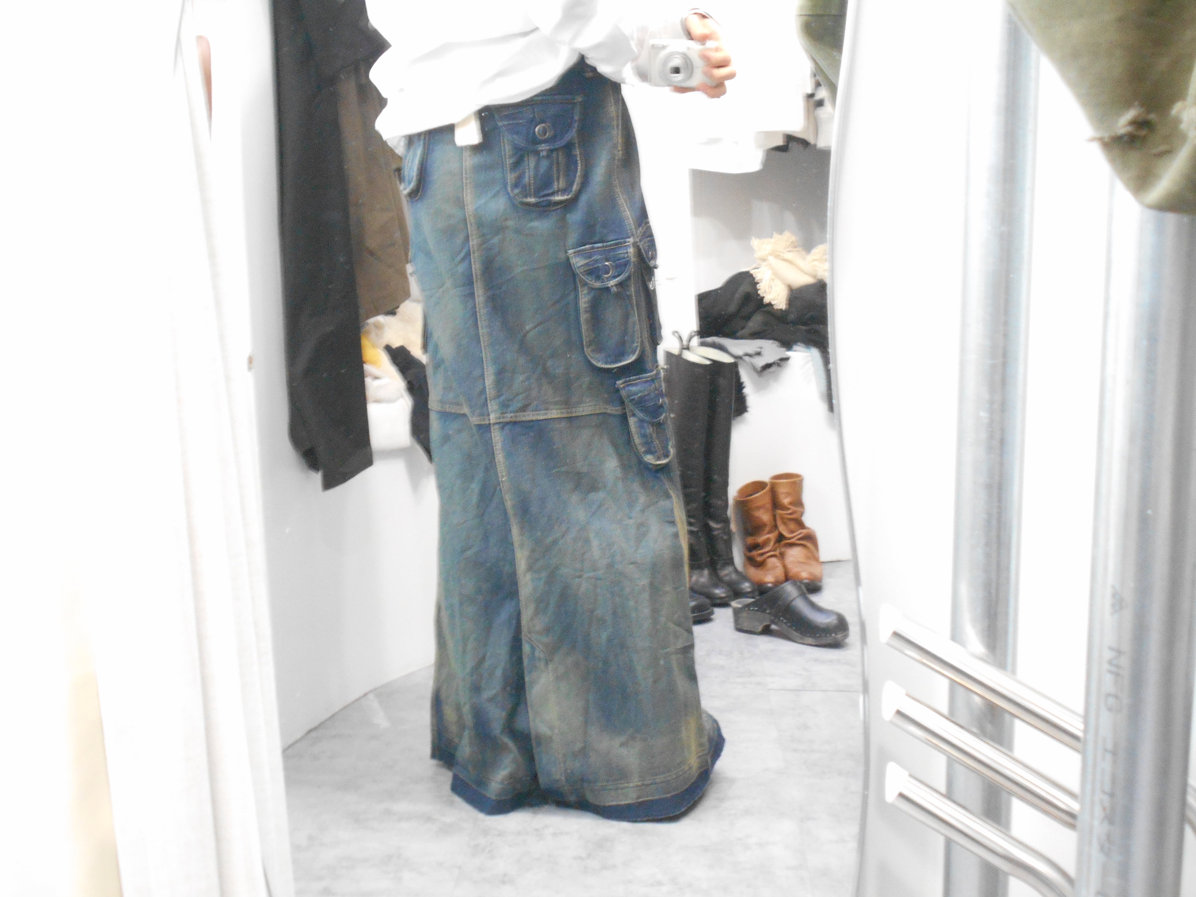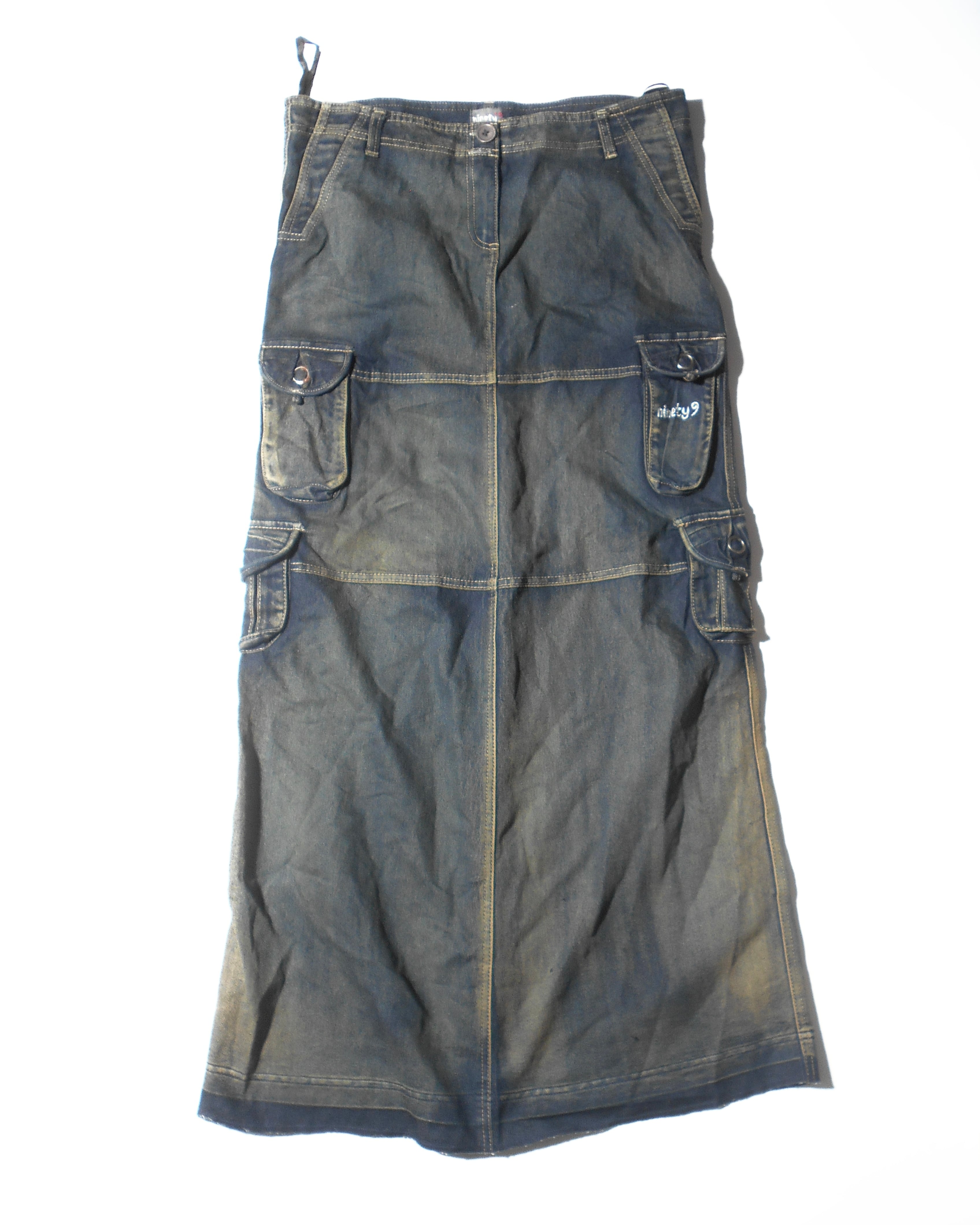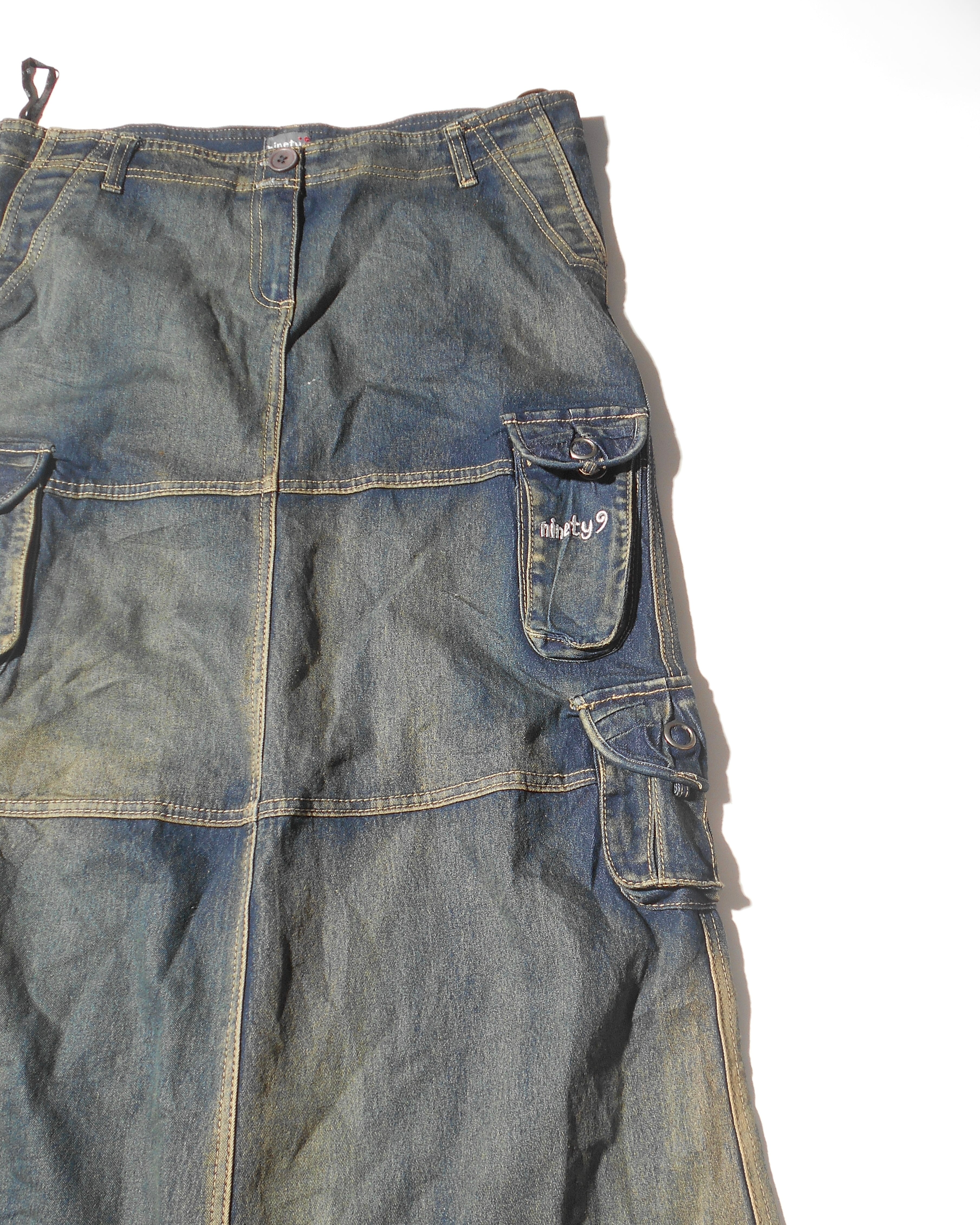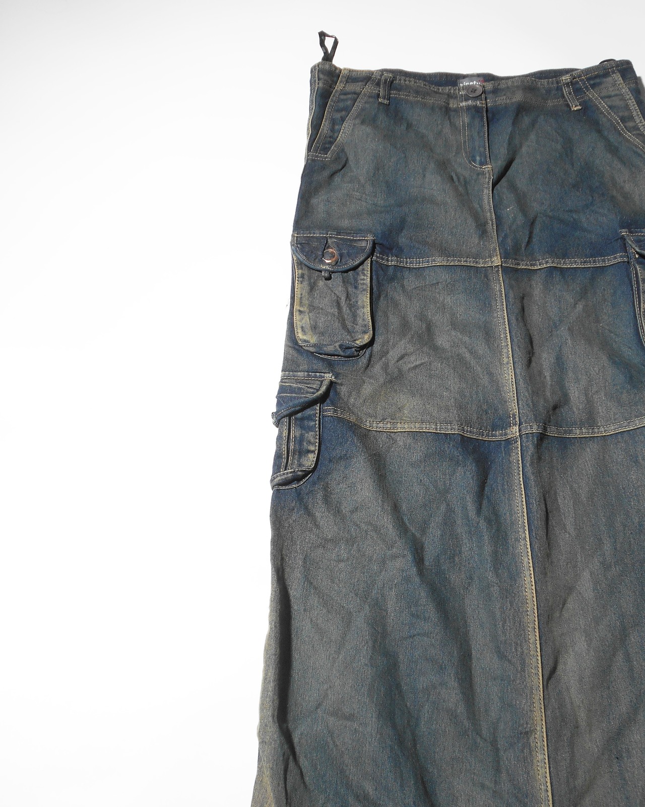2000s Euro Vintage Brown Faded Denim Long Skirt w/Multiple Cargo Pockets
