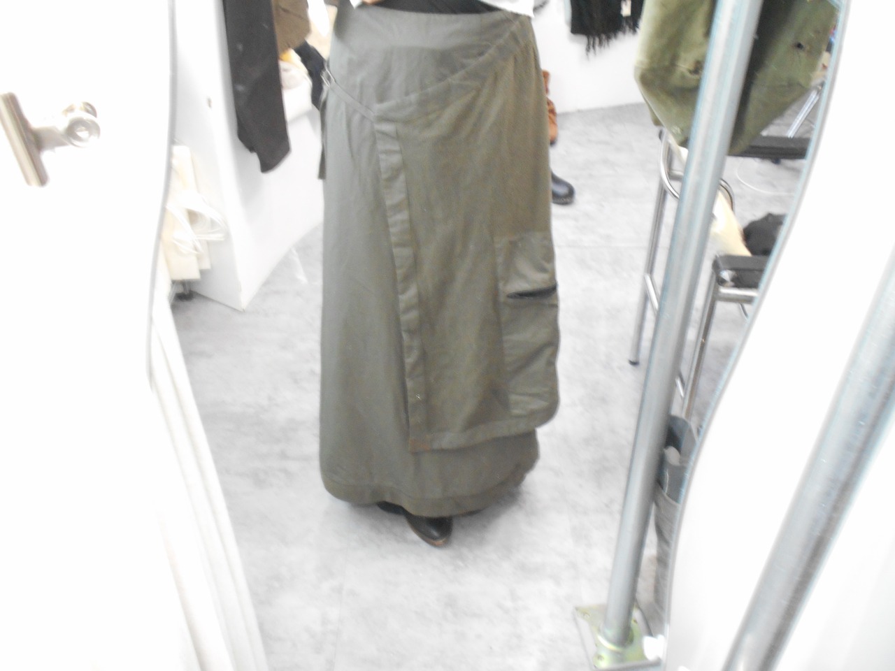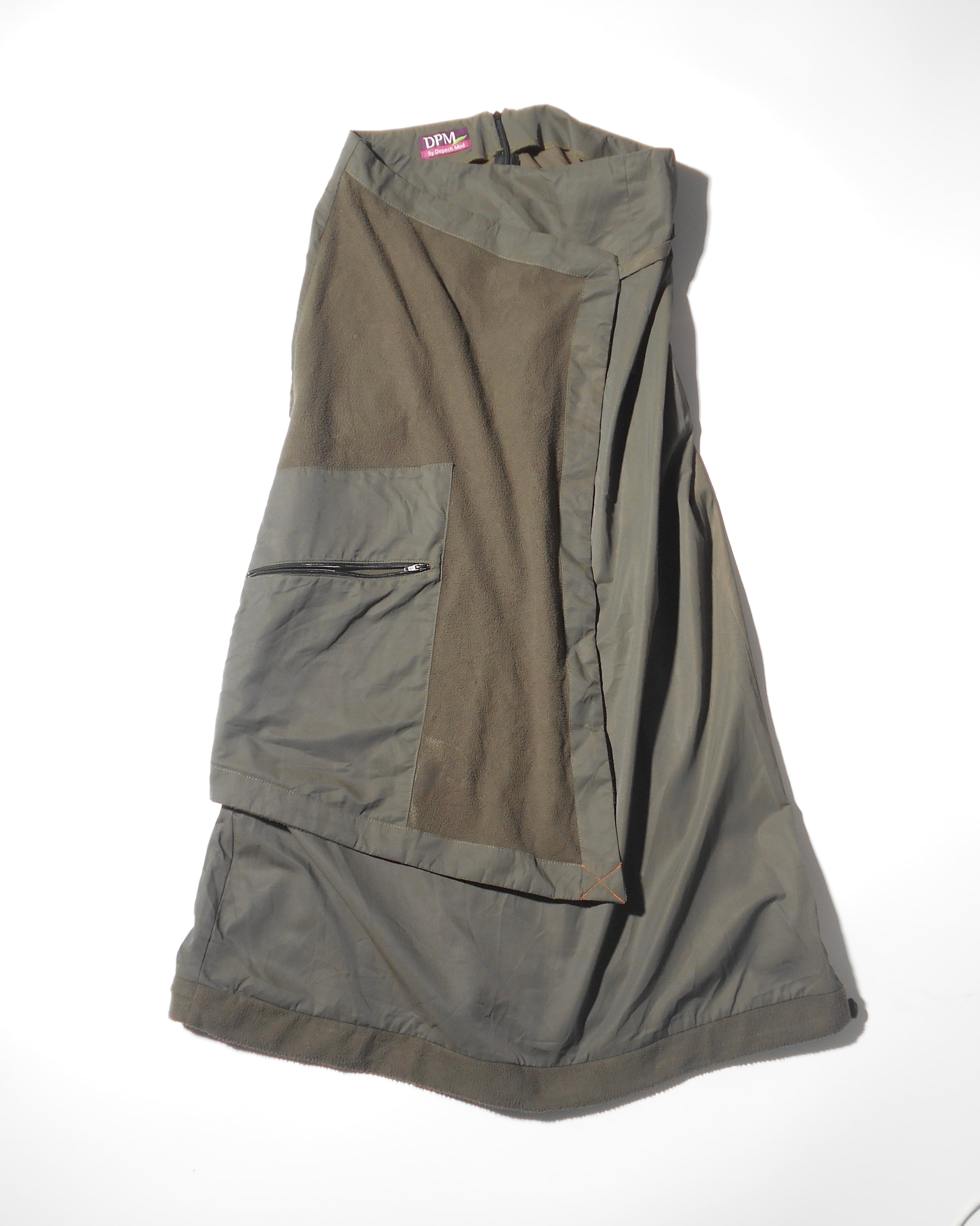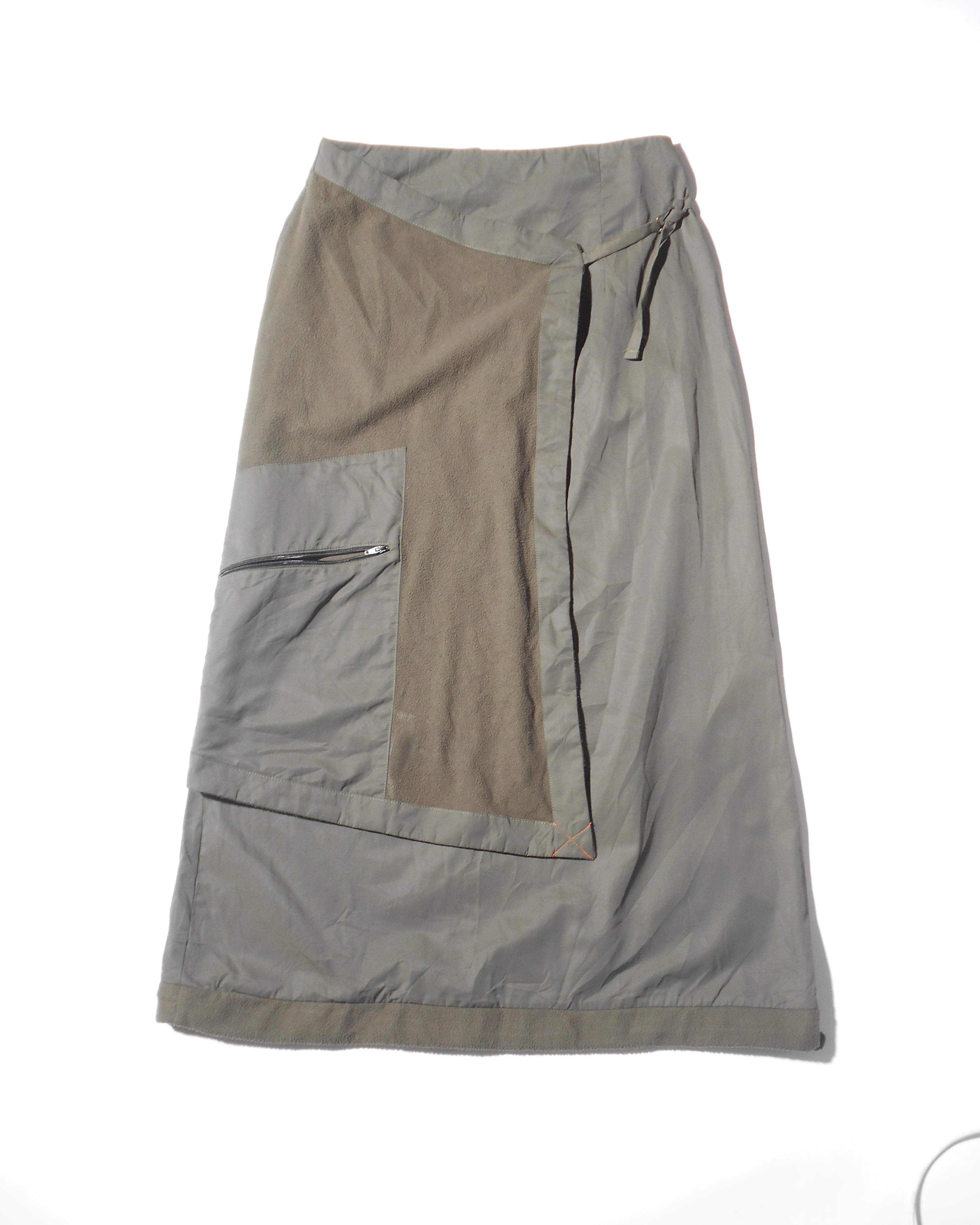 1990s Euro Vintage Khaki Nylon Asymmetrical Long Skirt