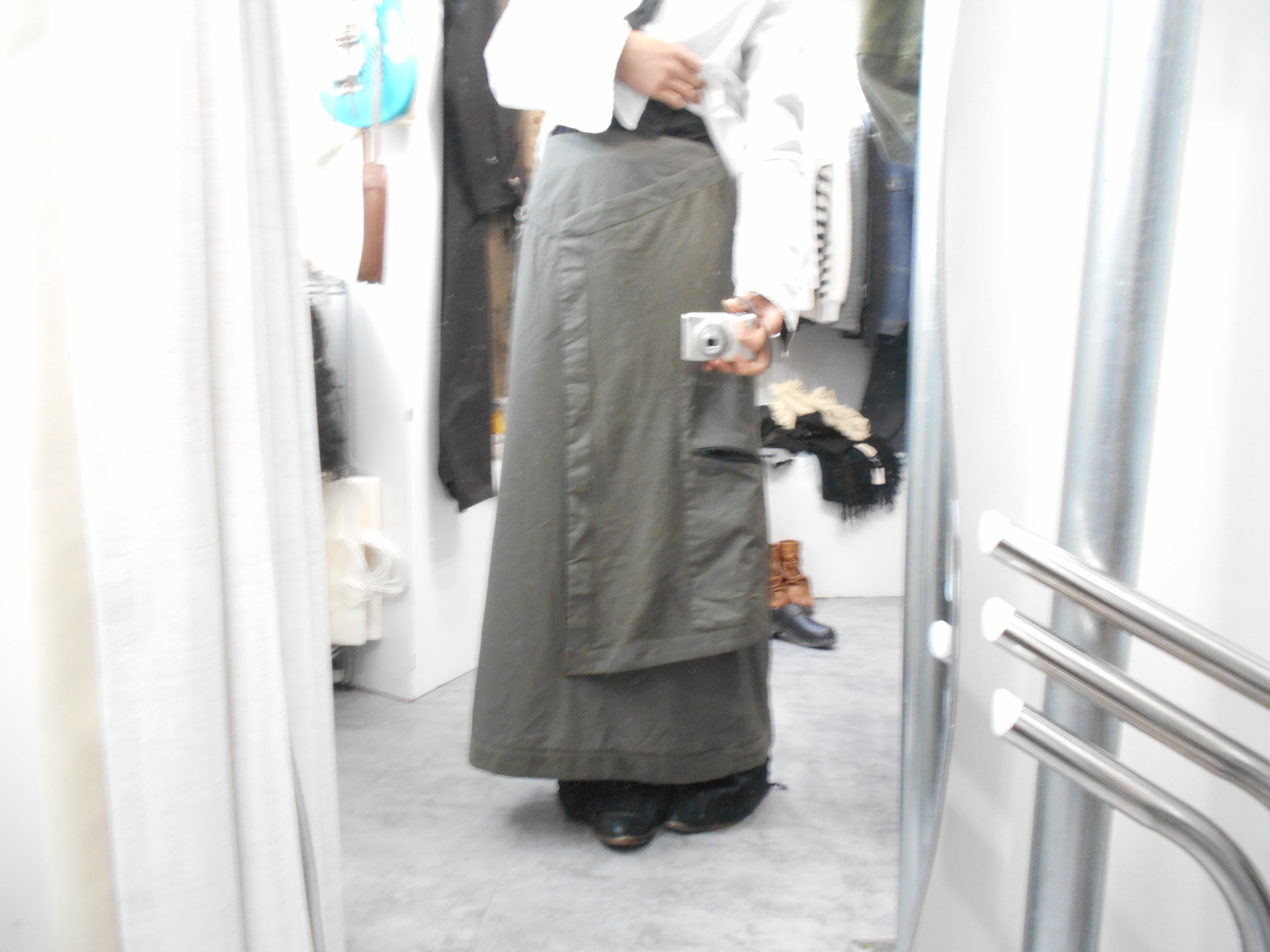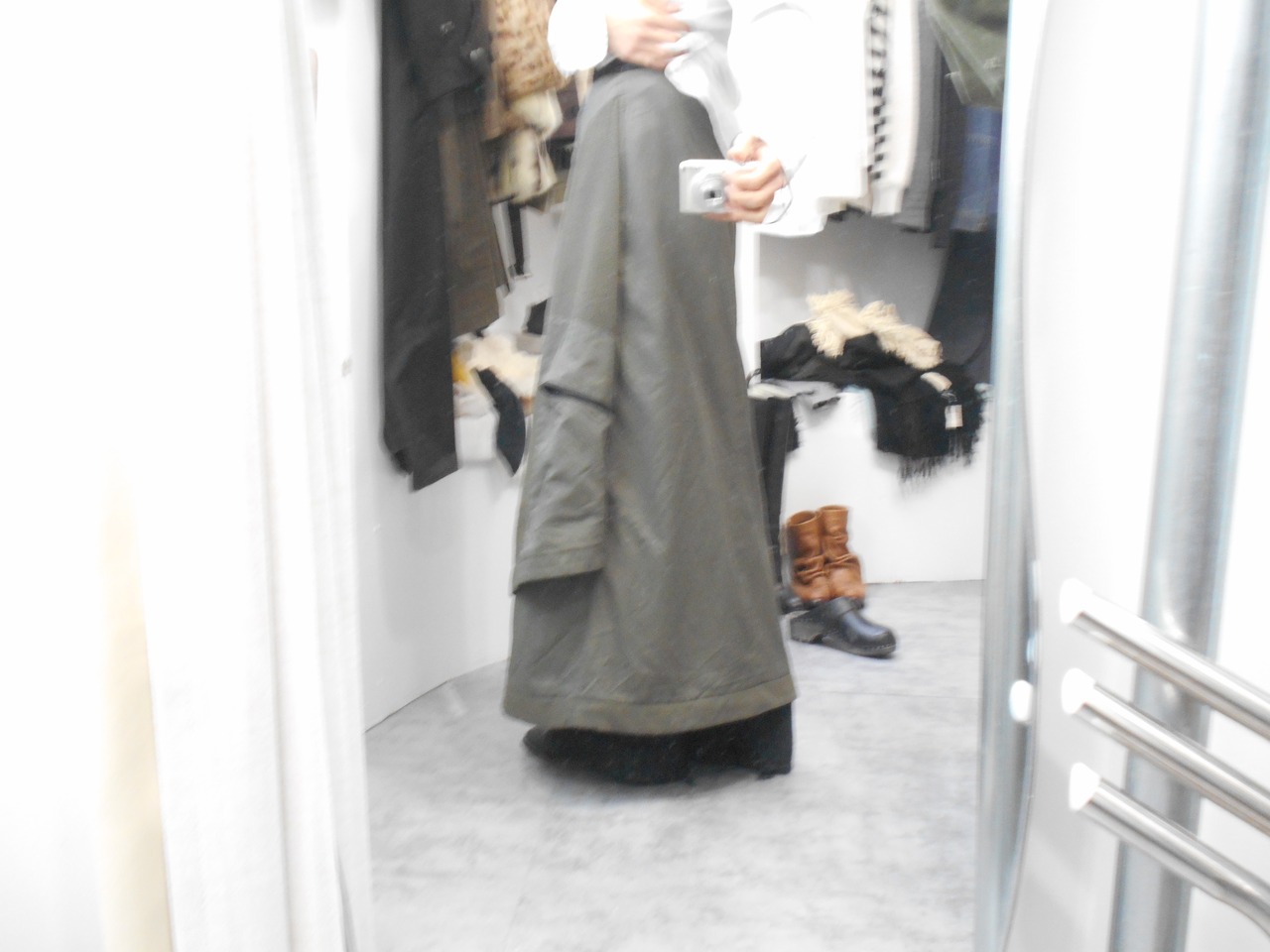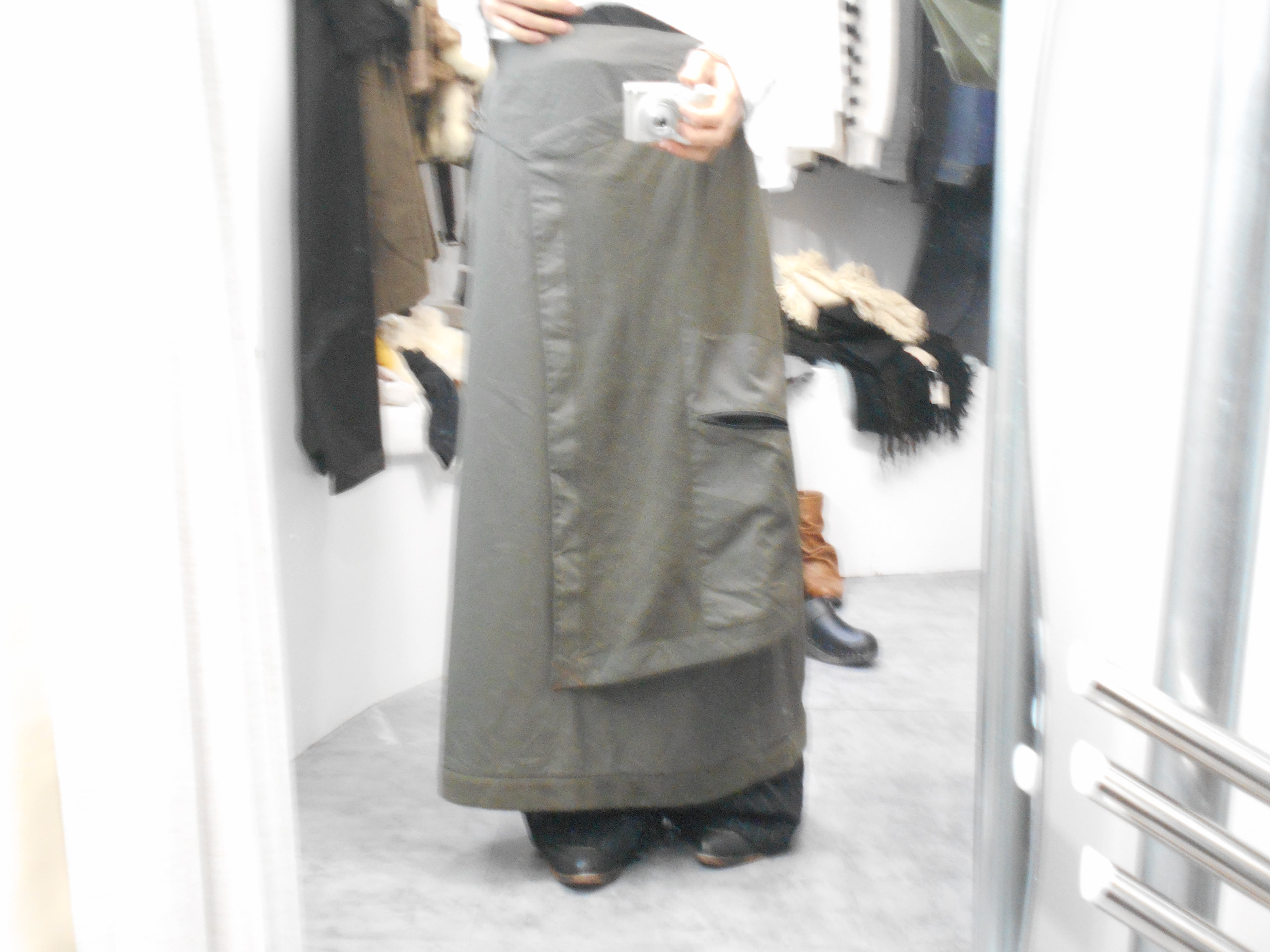 1990s Euro Vintage Khaki Nylon Asymmetrical Long Skirt
