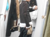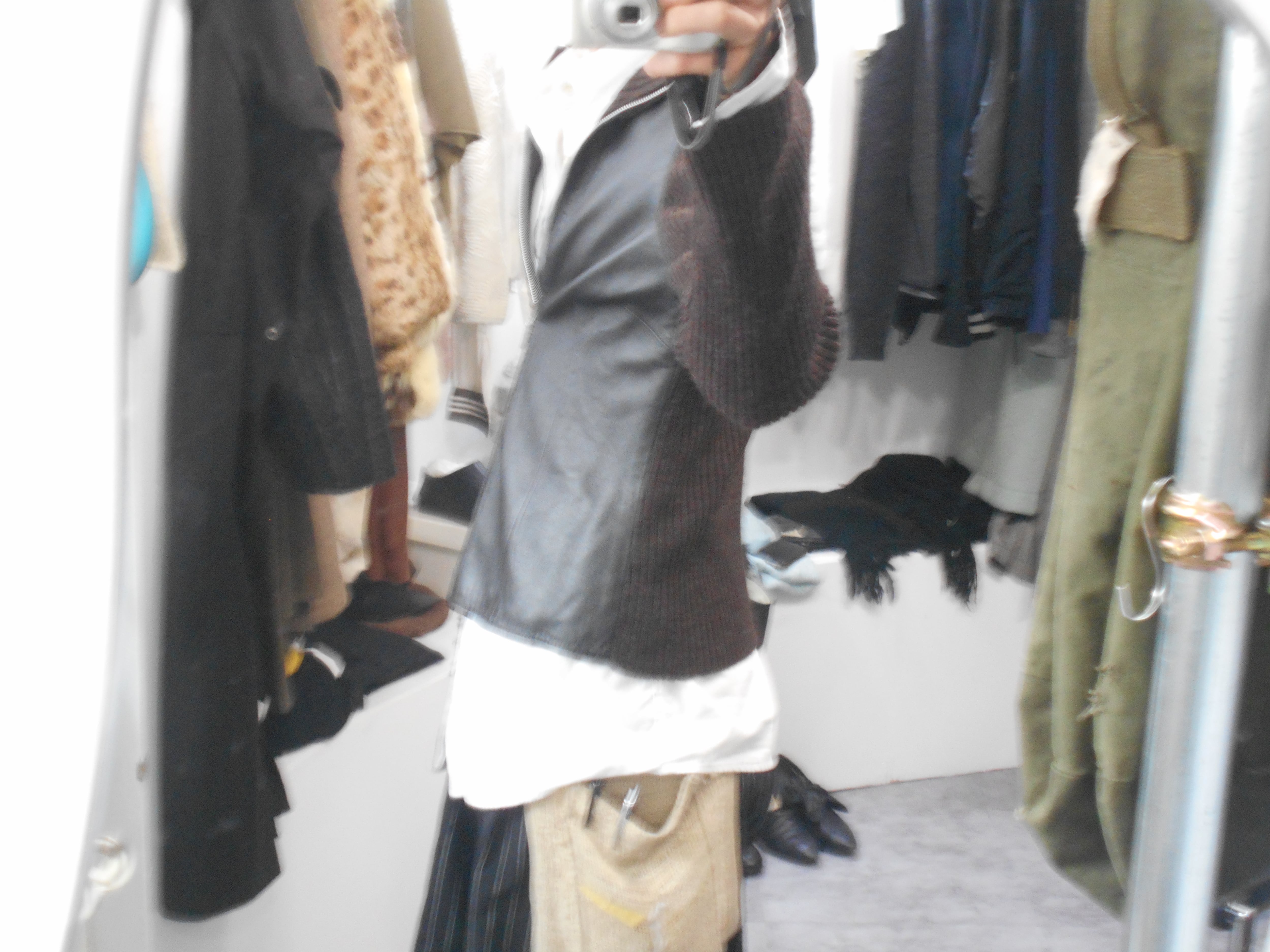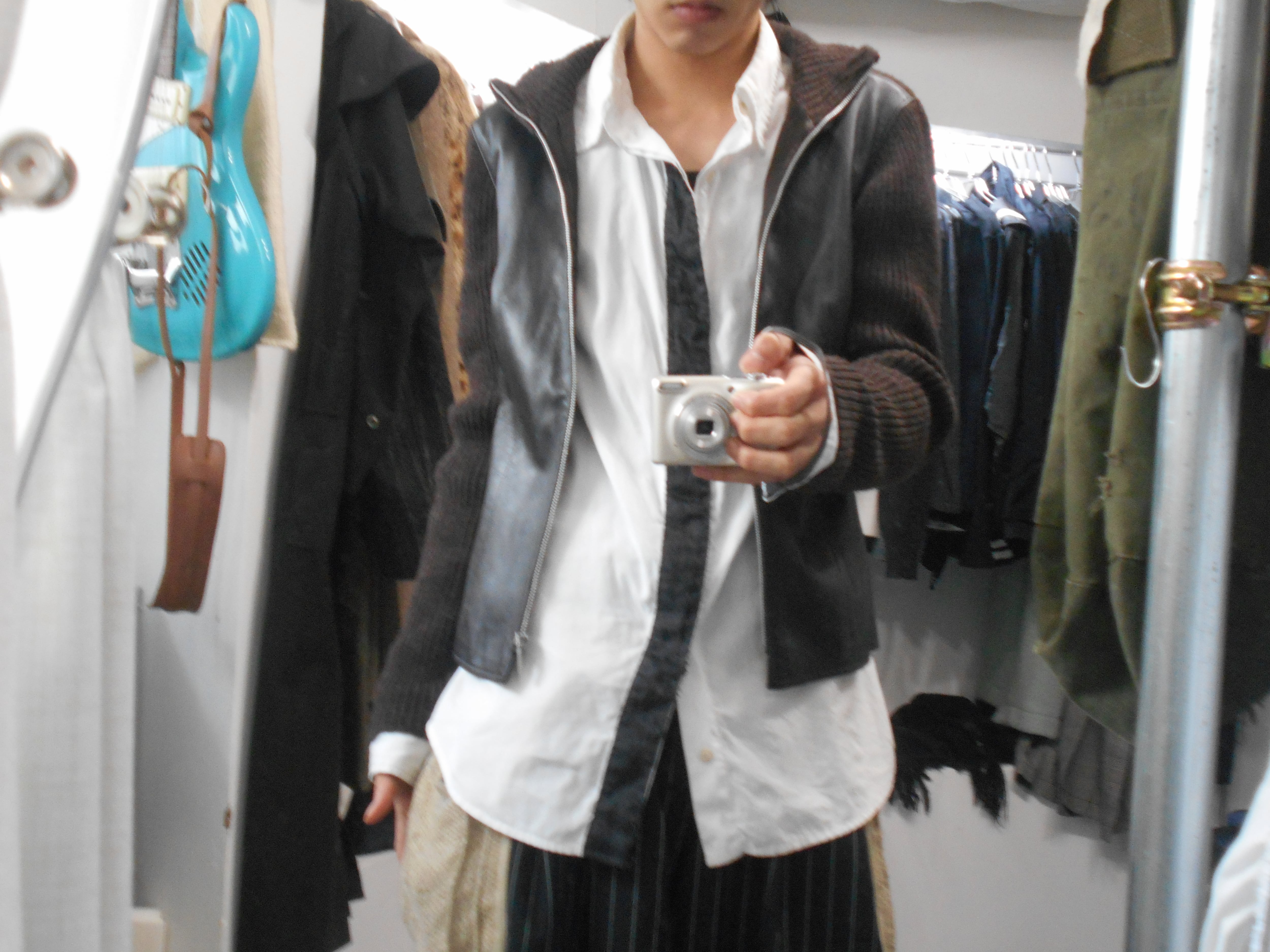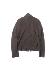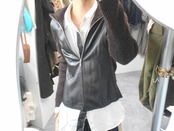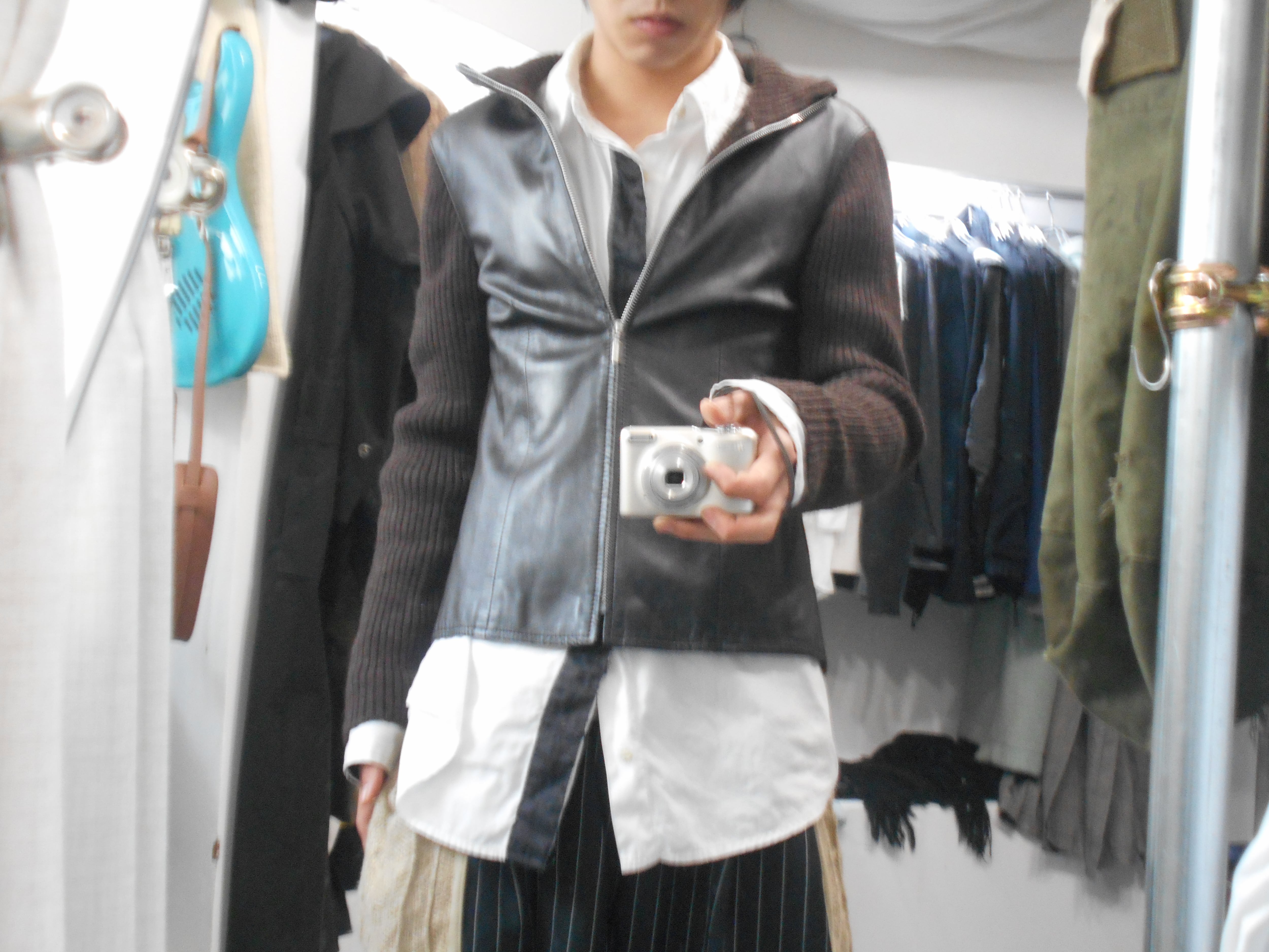*レザーのある前面が小さな作りになっているため、ジップを全て閉めた場合巻き肩のようなシルエットになります。ジップを開けた状態での着用をお勧めさせていただきます。