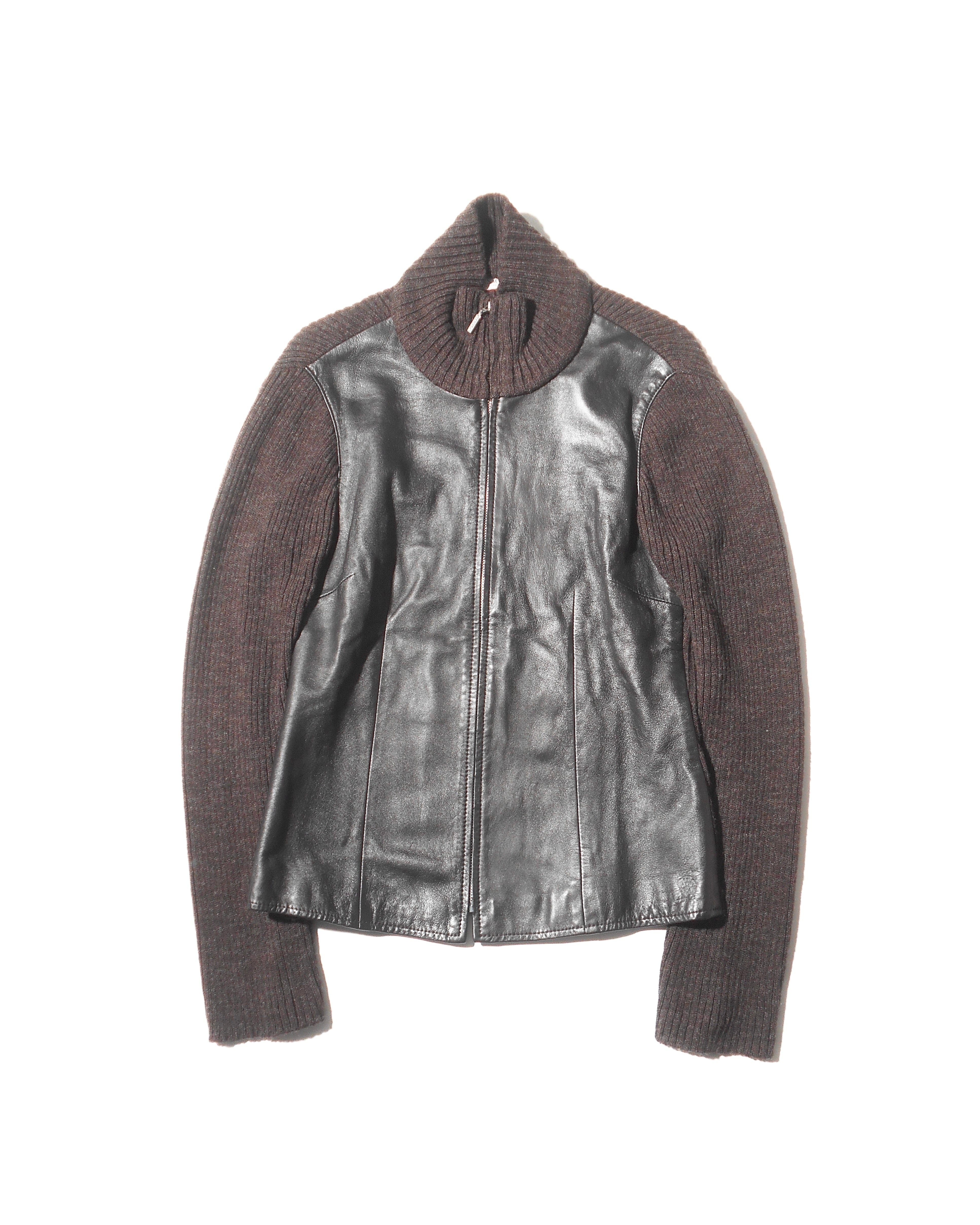 1990s Italian Vintage Leather/Knit Switching Drivers Jacket