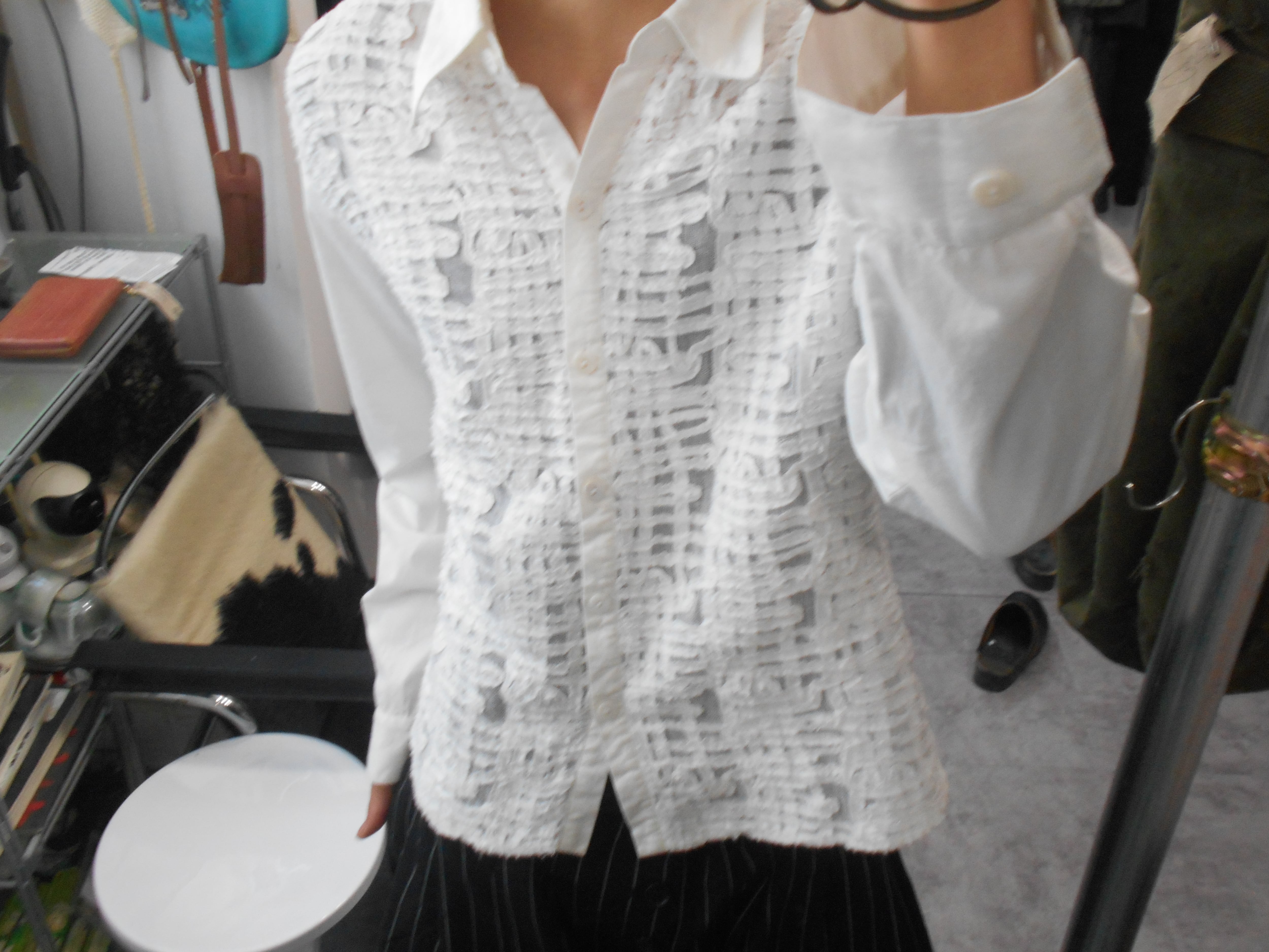 1990s Euro Vintage Sheer & Embroidery Front Paneled Shirt