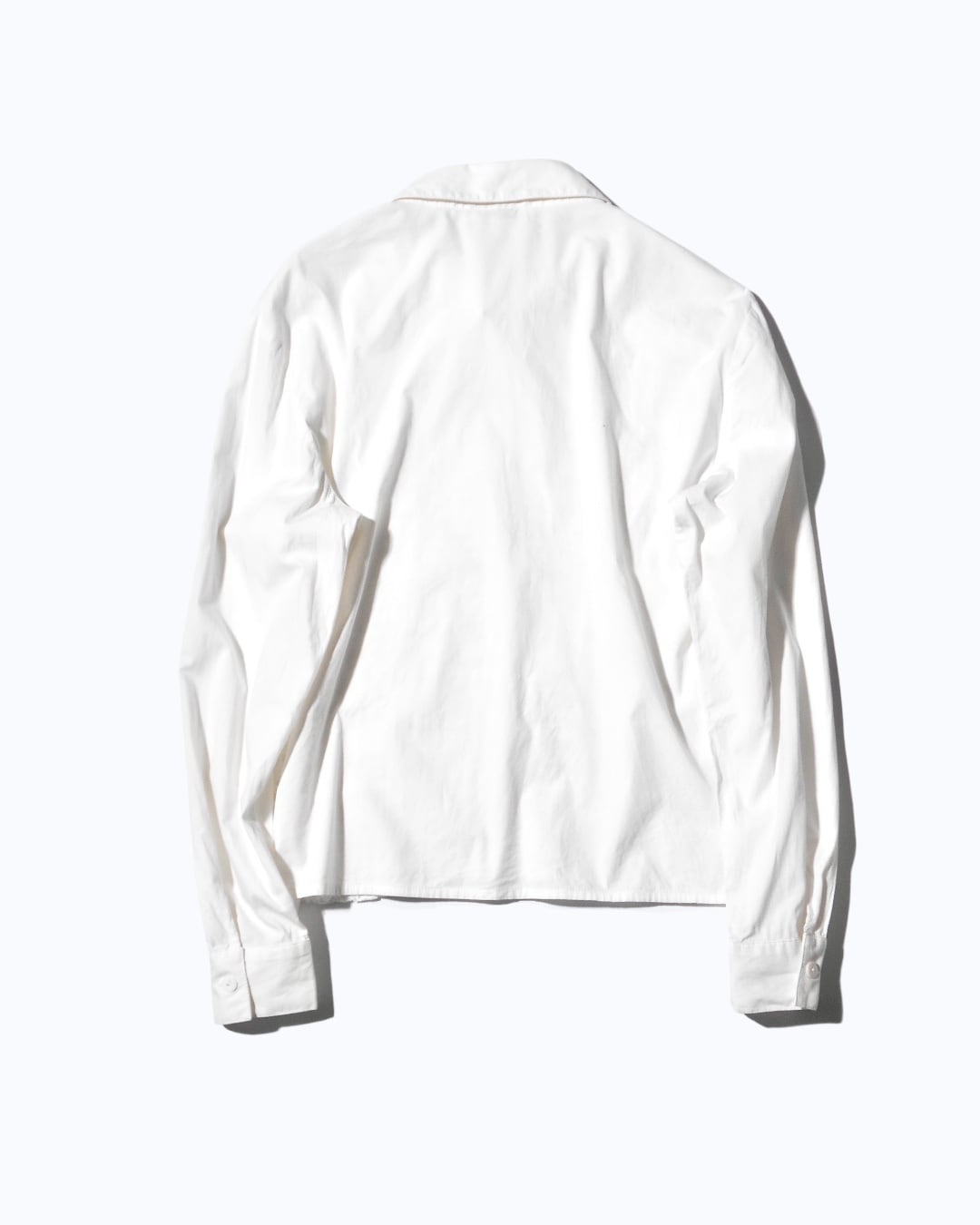 ユーロ古着の白シャツとなると、大きすぎるか細すぎるかの究極の二択のような場合が多くあるのですが、こちらはそれを払拭するように54cmと広い身幅を保ちながら58cmと丈は短い作りとなっており、そのためかシャープな印象を残しながらも着苦しさのない一着となっています。
