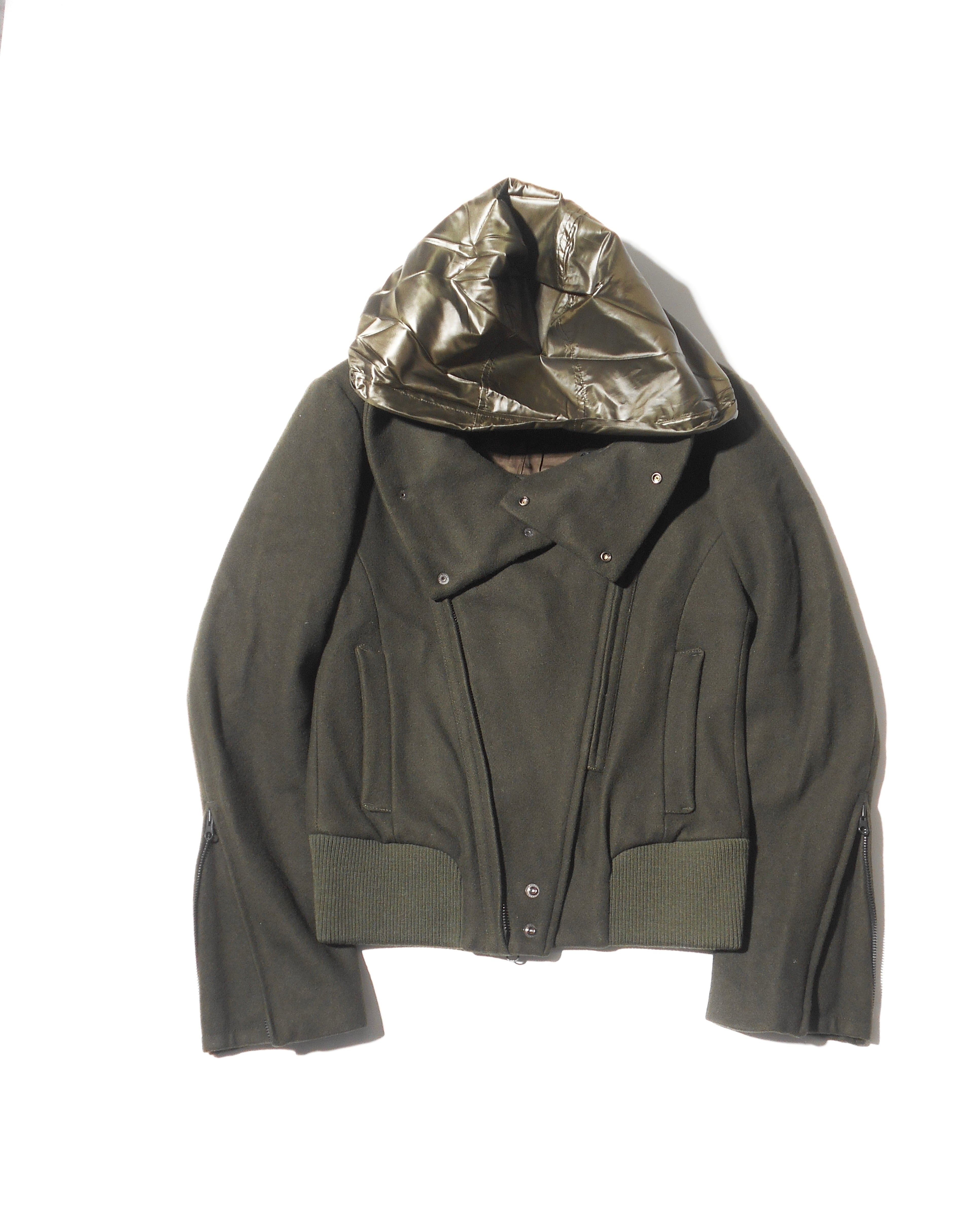 表面的なデザインによって服のみが際立ち着る人の個性を消すのではなく、着る人のパーソナリティーを引き出す為のツールとしての服作りを目指すというコンセプトを掲げるthe twelveらしく、タイトなシルエットにより着用者の体型によって変化するシルエット作りを可能とし、また、左右両方についたジップやフーディ、ダブルジップなど、一着で複数の着方を楽しめるアイテムに仕上げることで「着る人のパーソナリティーを引き出す為のツール」としての服として成立しているように感じられます。
