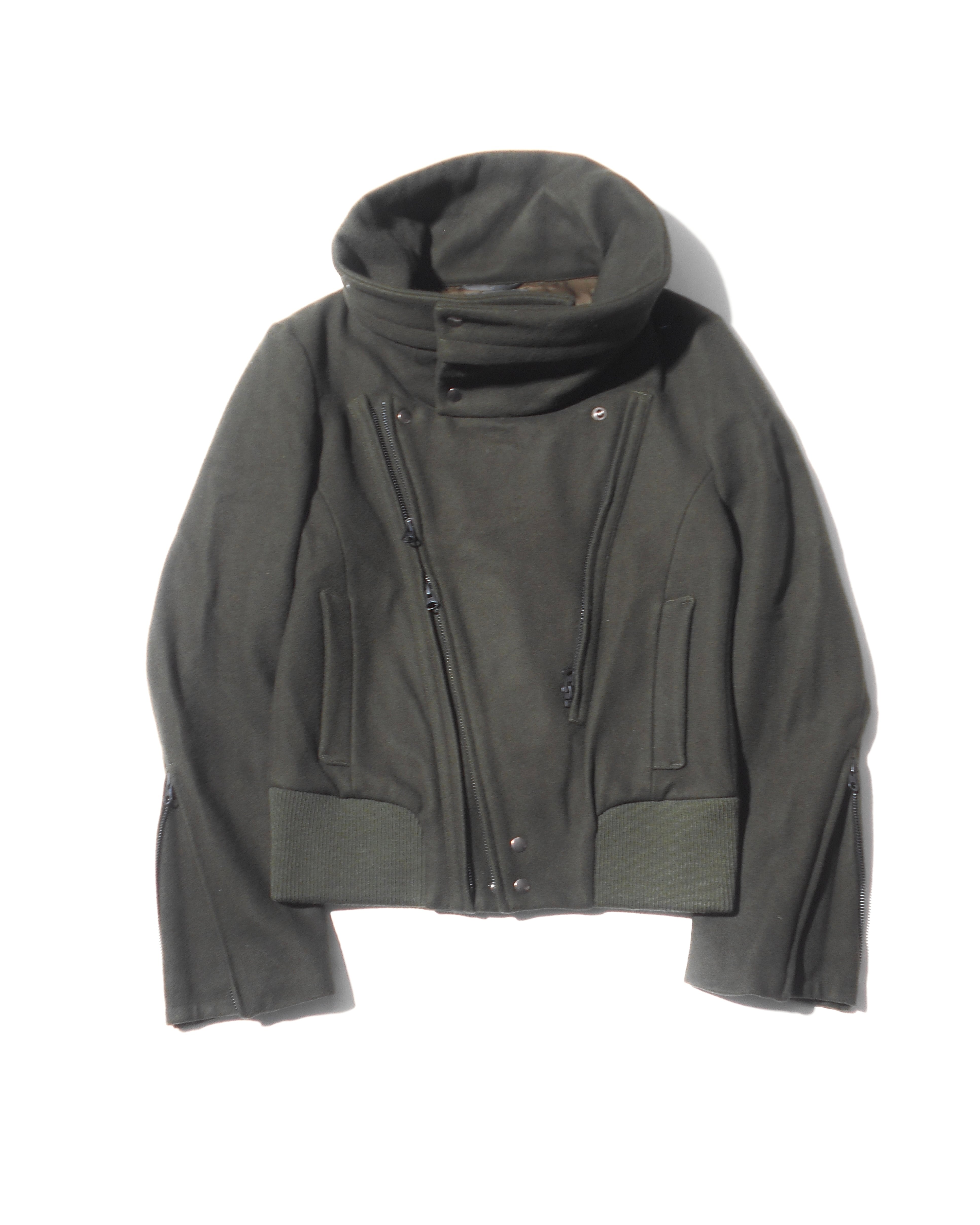 2000s Olive Wool Melton Versatile Collar Double Breasted Jacket