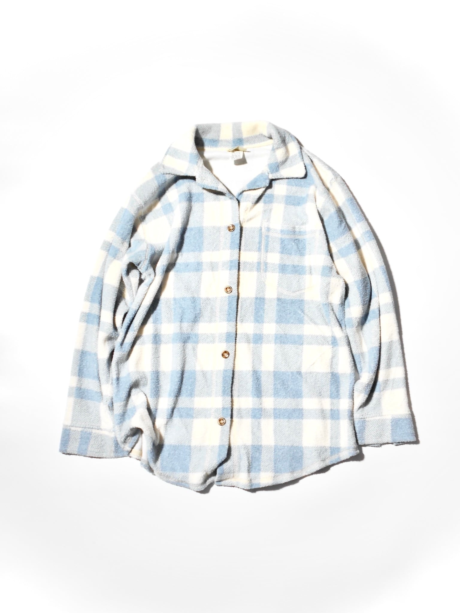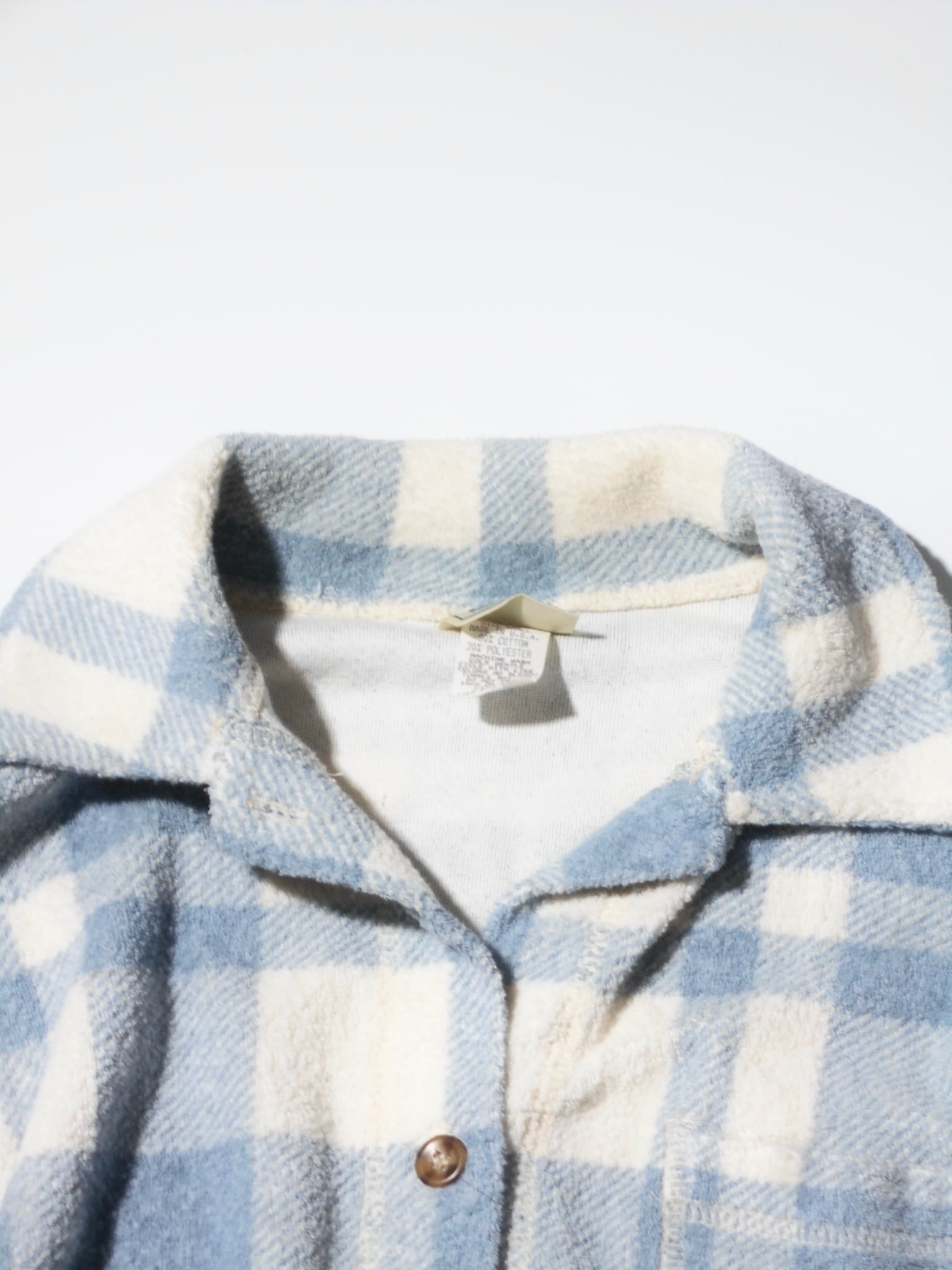 Circa 1980s Vintage L.L.Bean Light Blue& Creme Checked Pile Shirt