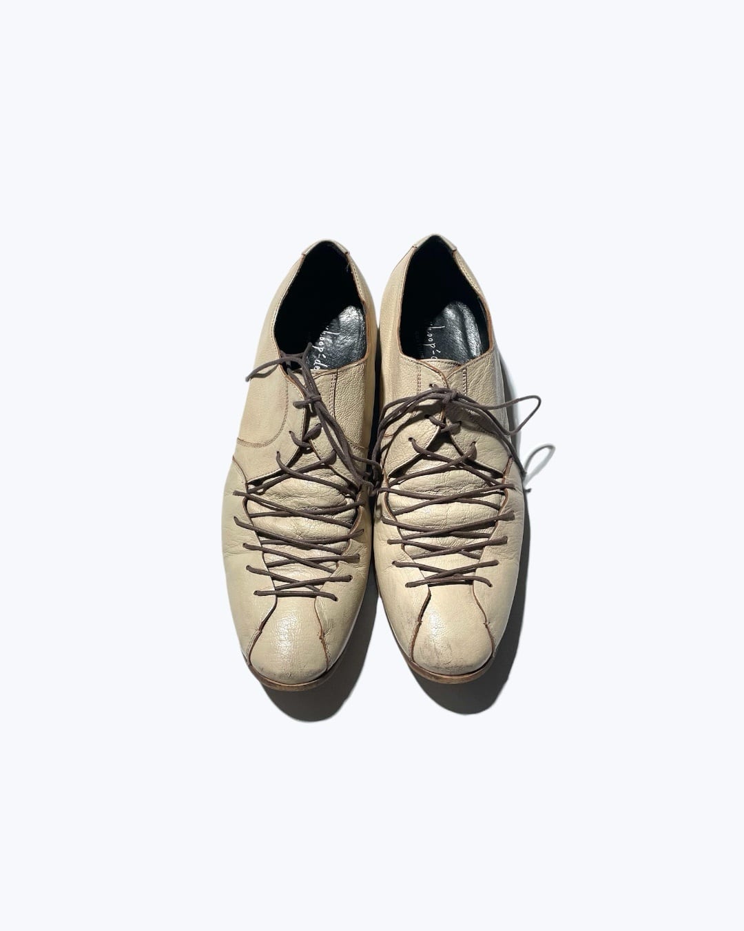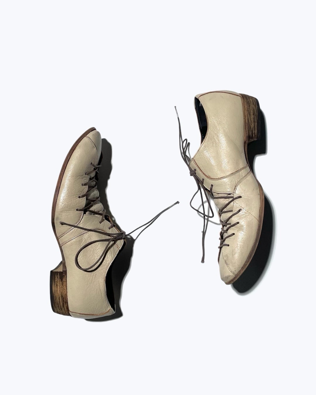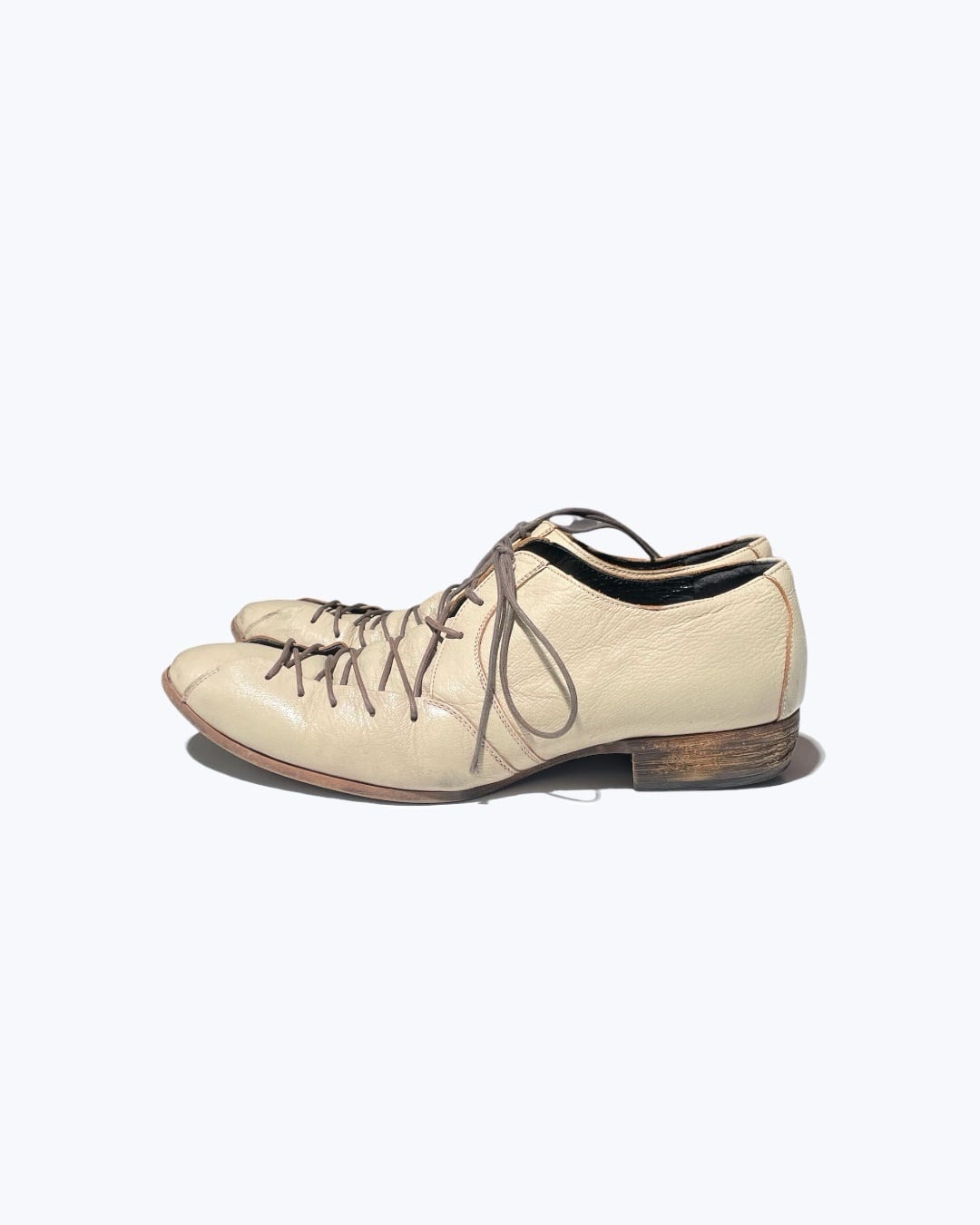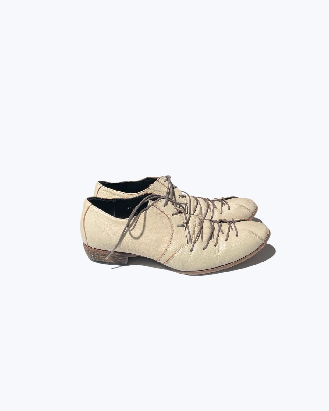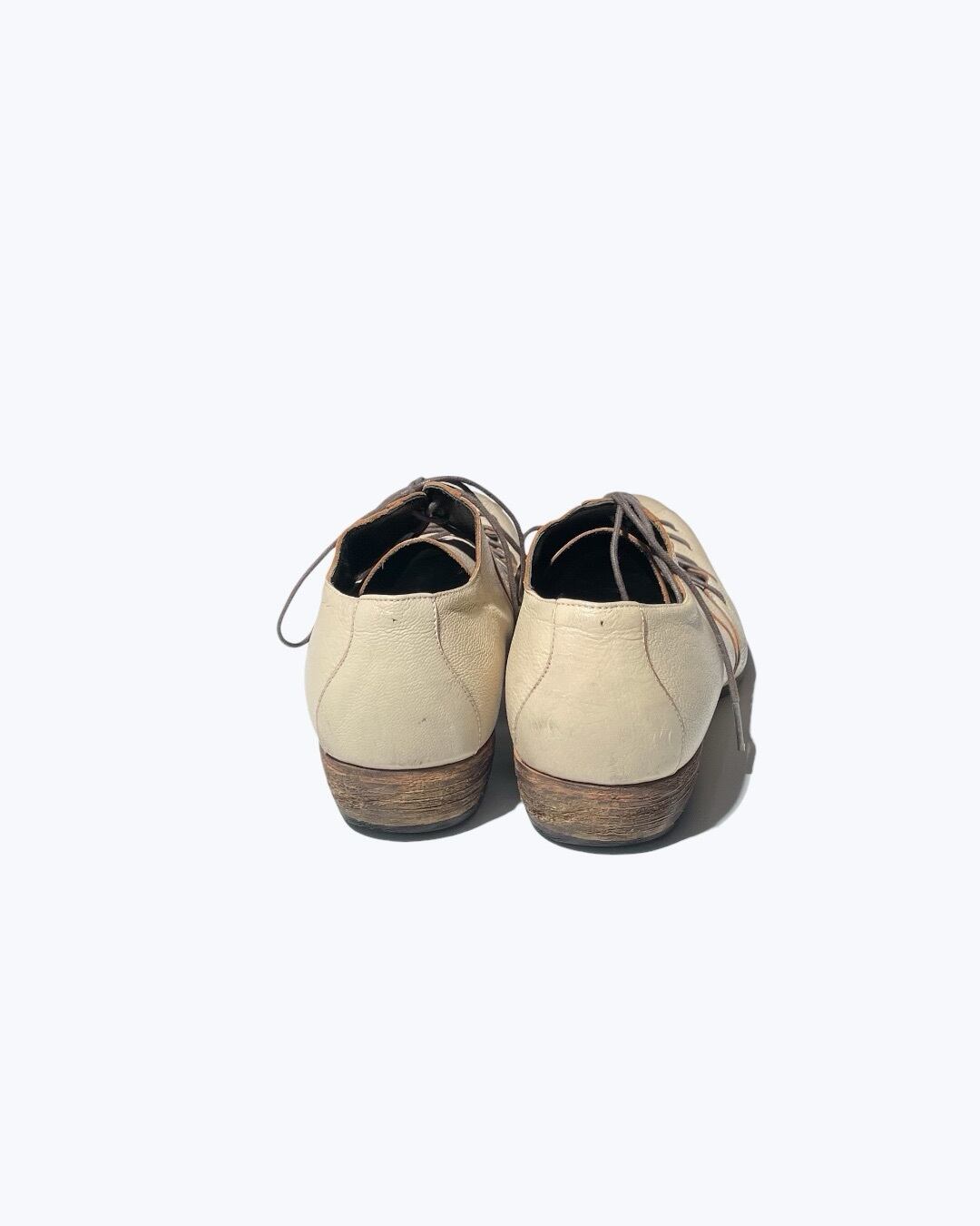 1990s Vintage Labyrinthine Laced Up Off White Leather Shoes
