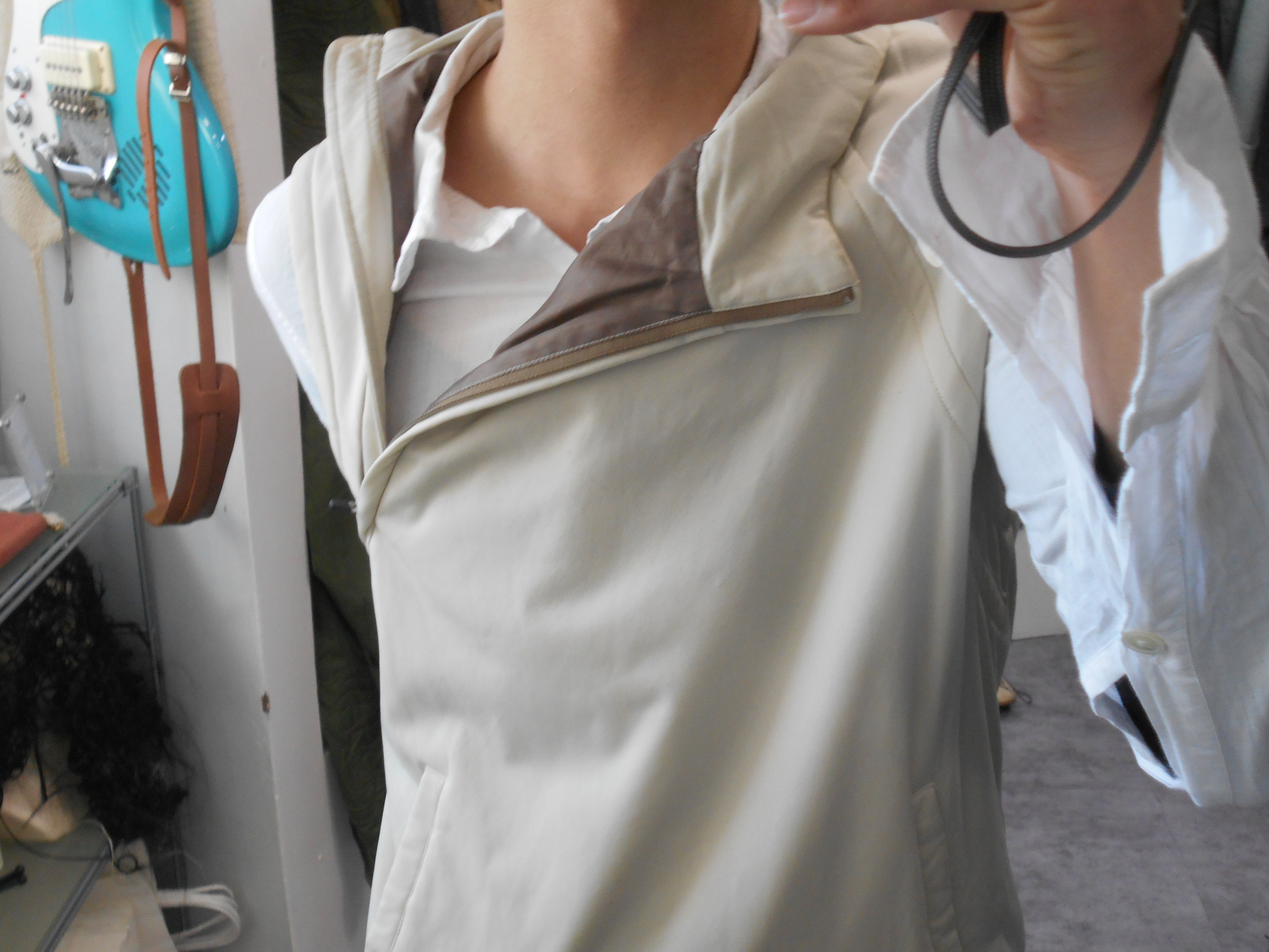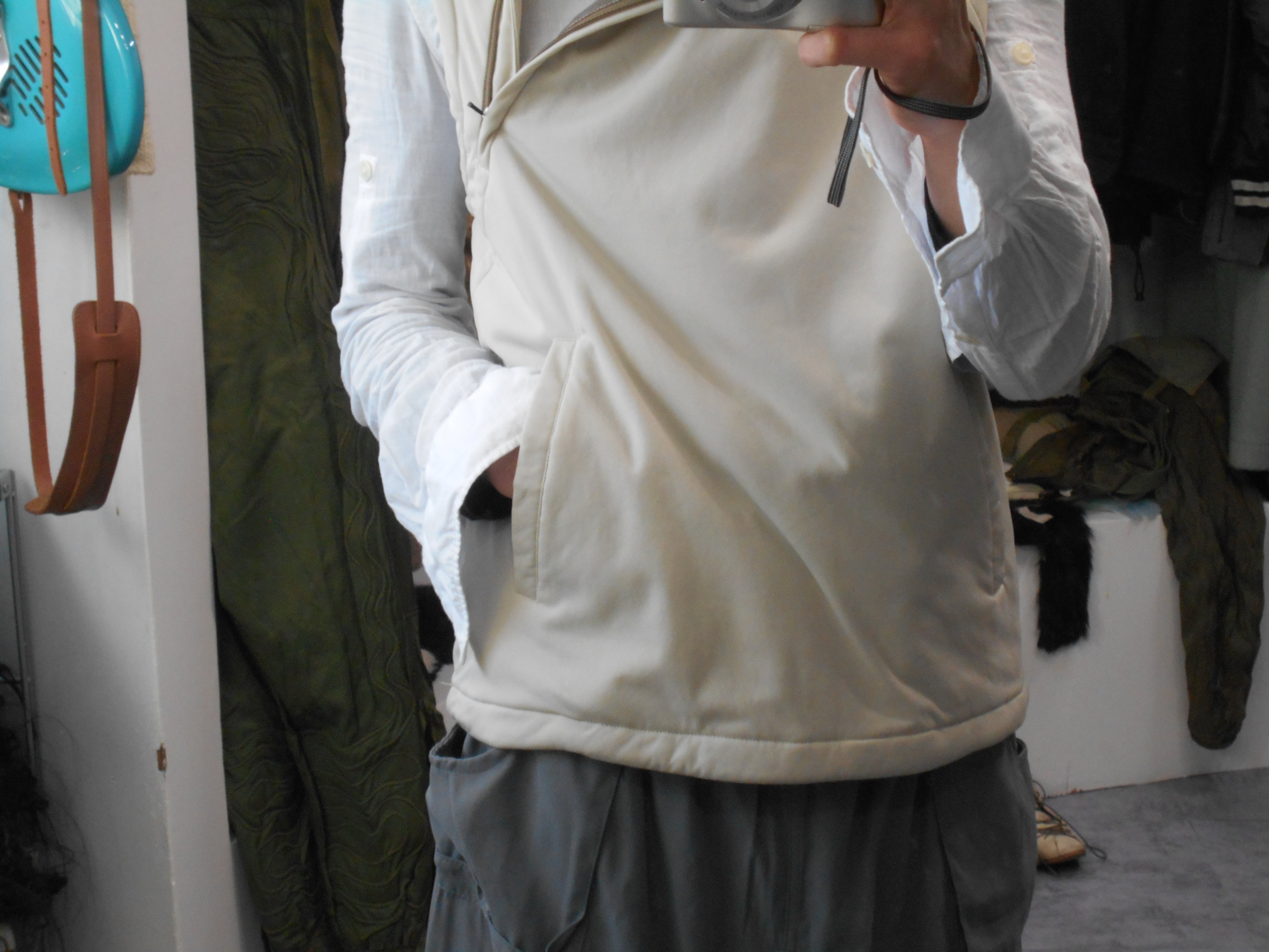 2000s Adidas Neck Side Zip Ivory Nylon Puffed Vest