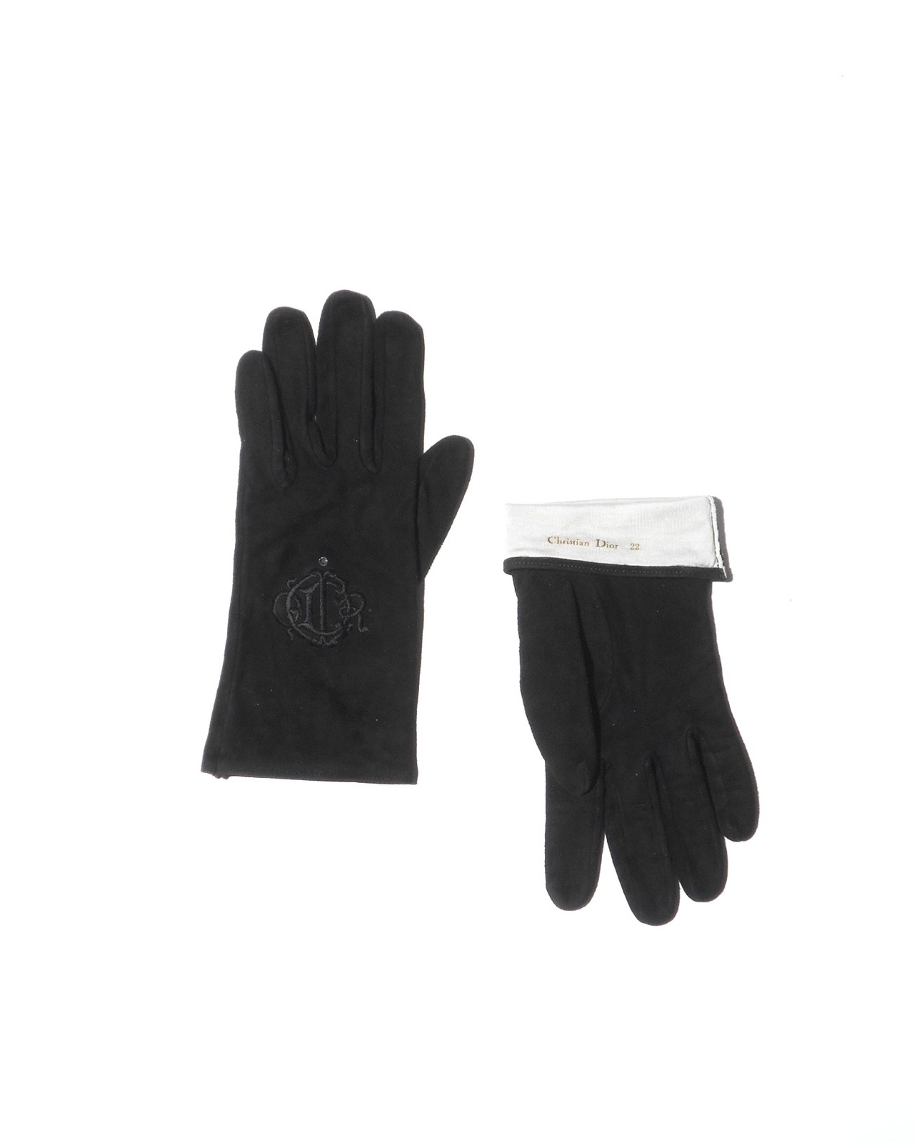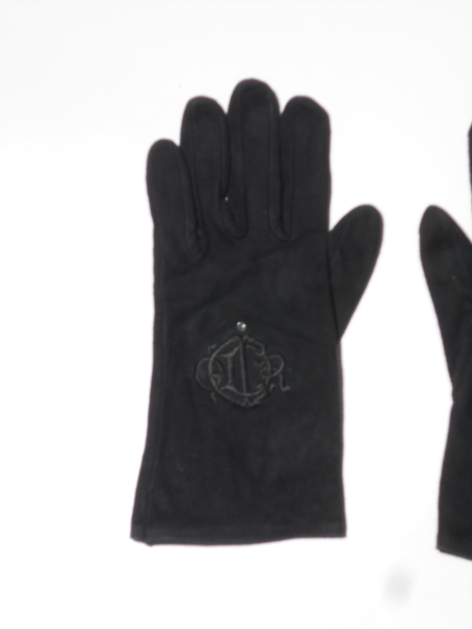 Circa 1990s Christian Dior Suede Gloves w/ Rhinestone