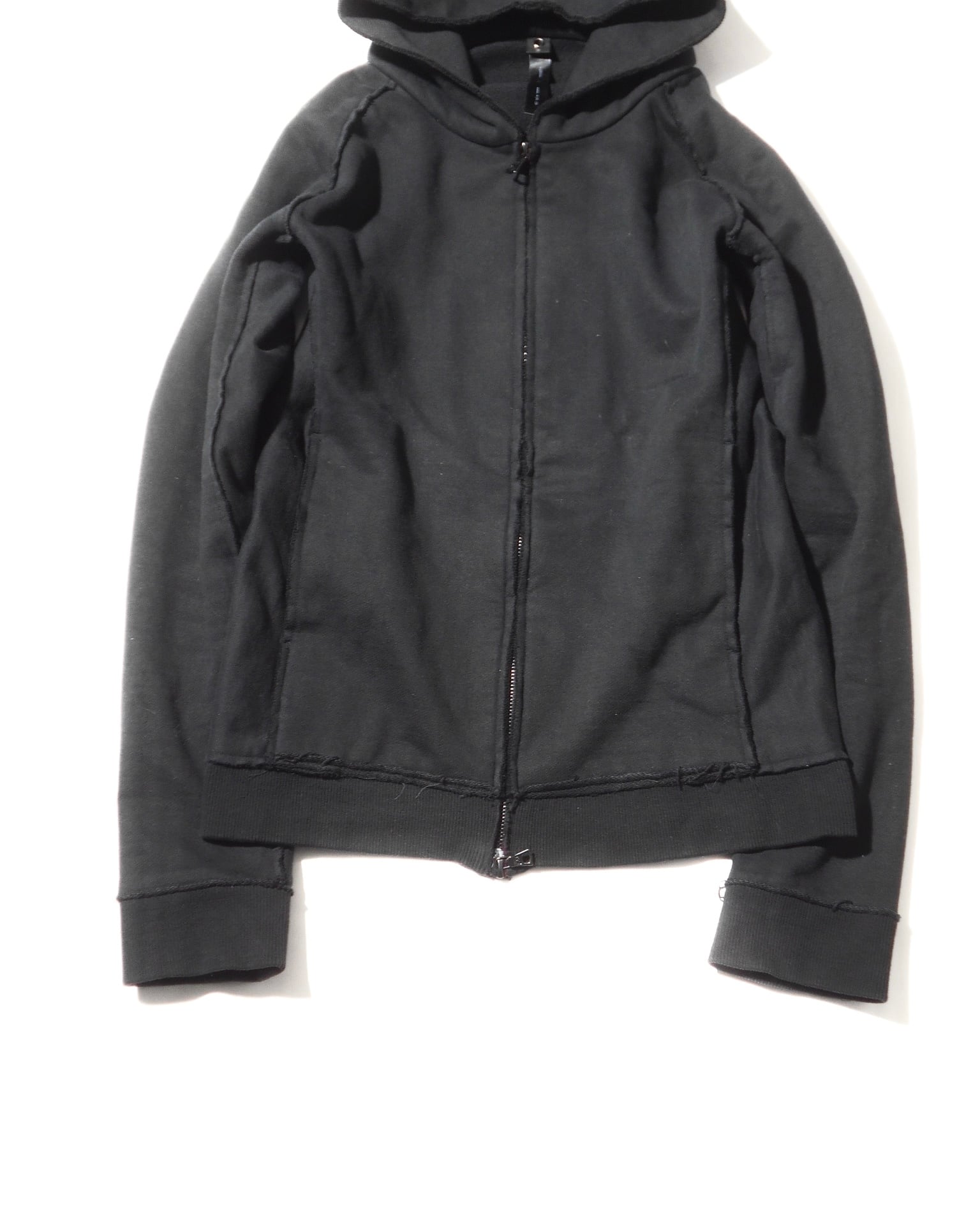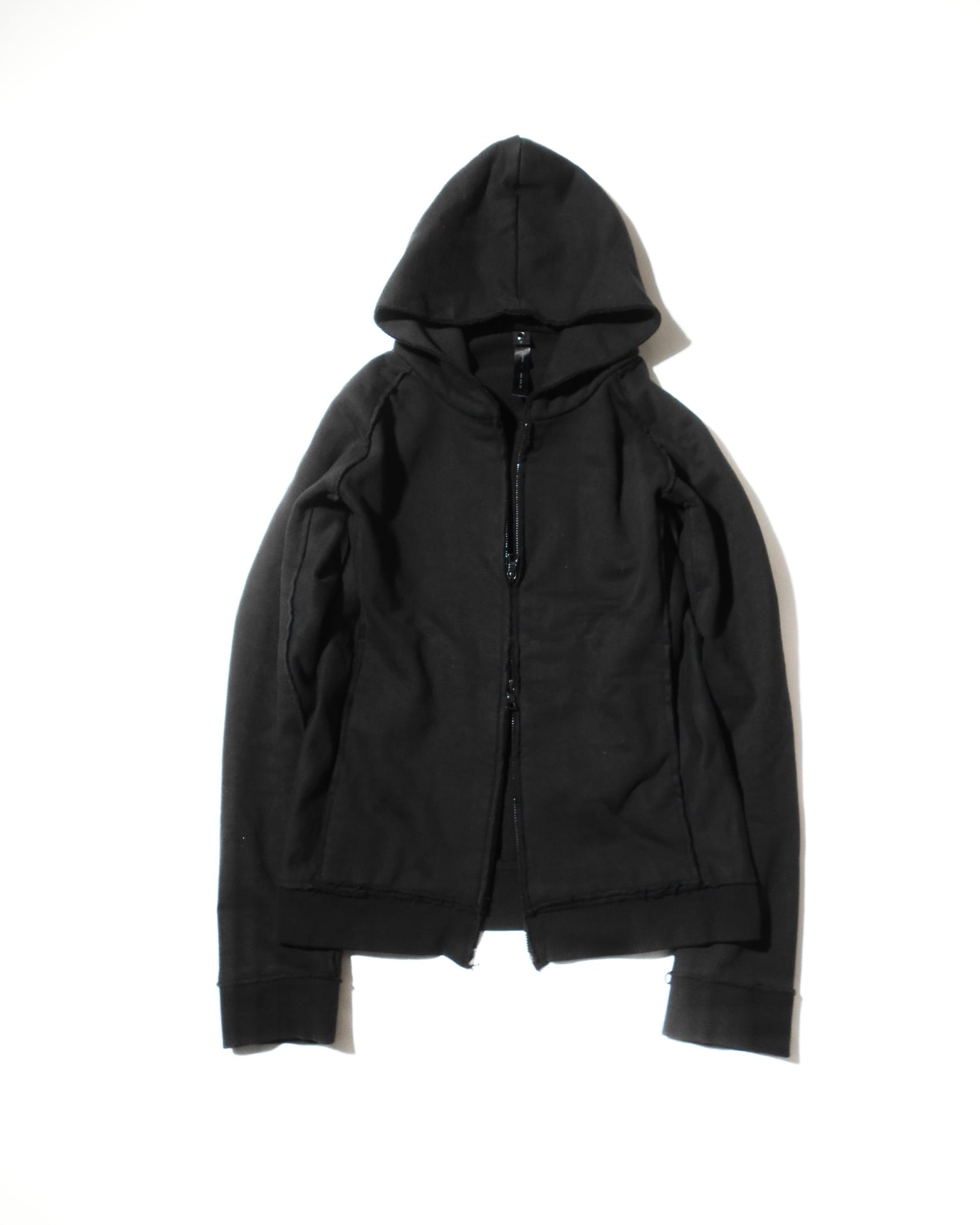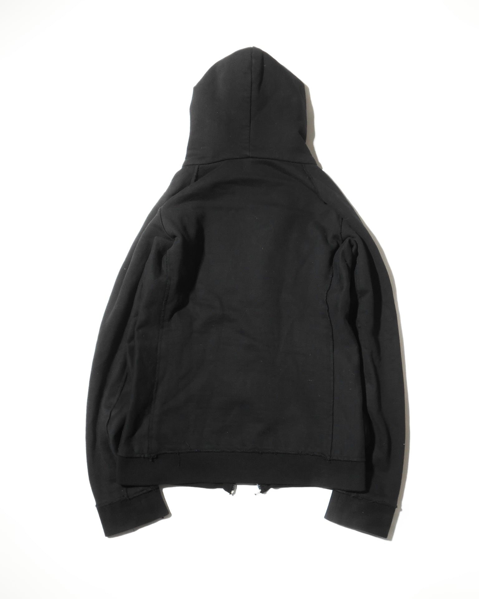 2000s Cut-Off Paneled Black Cotton Double Zip Hoodie by a Japanese designer label, by Jun Hashimoto, wjk
