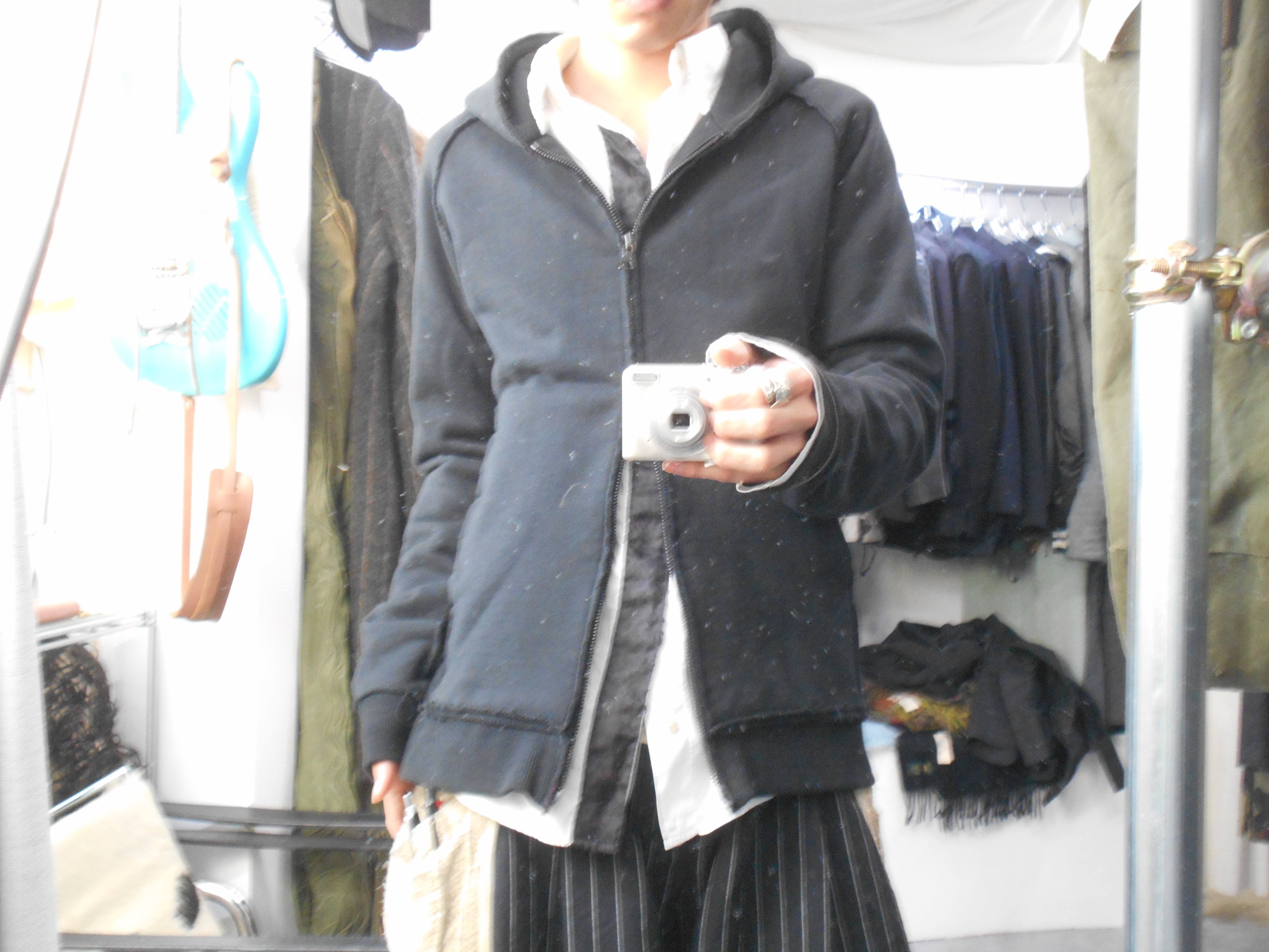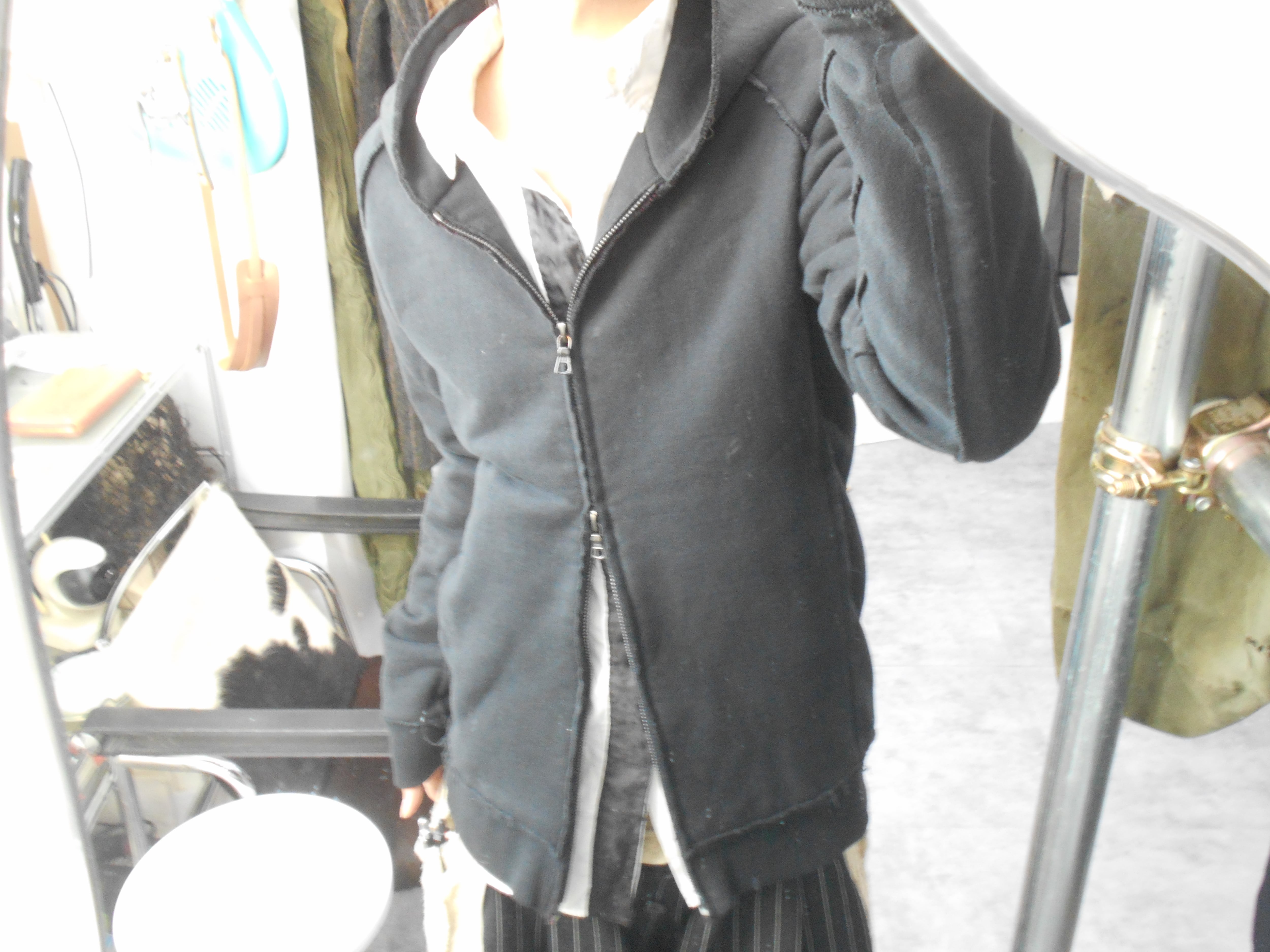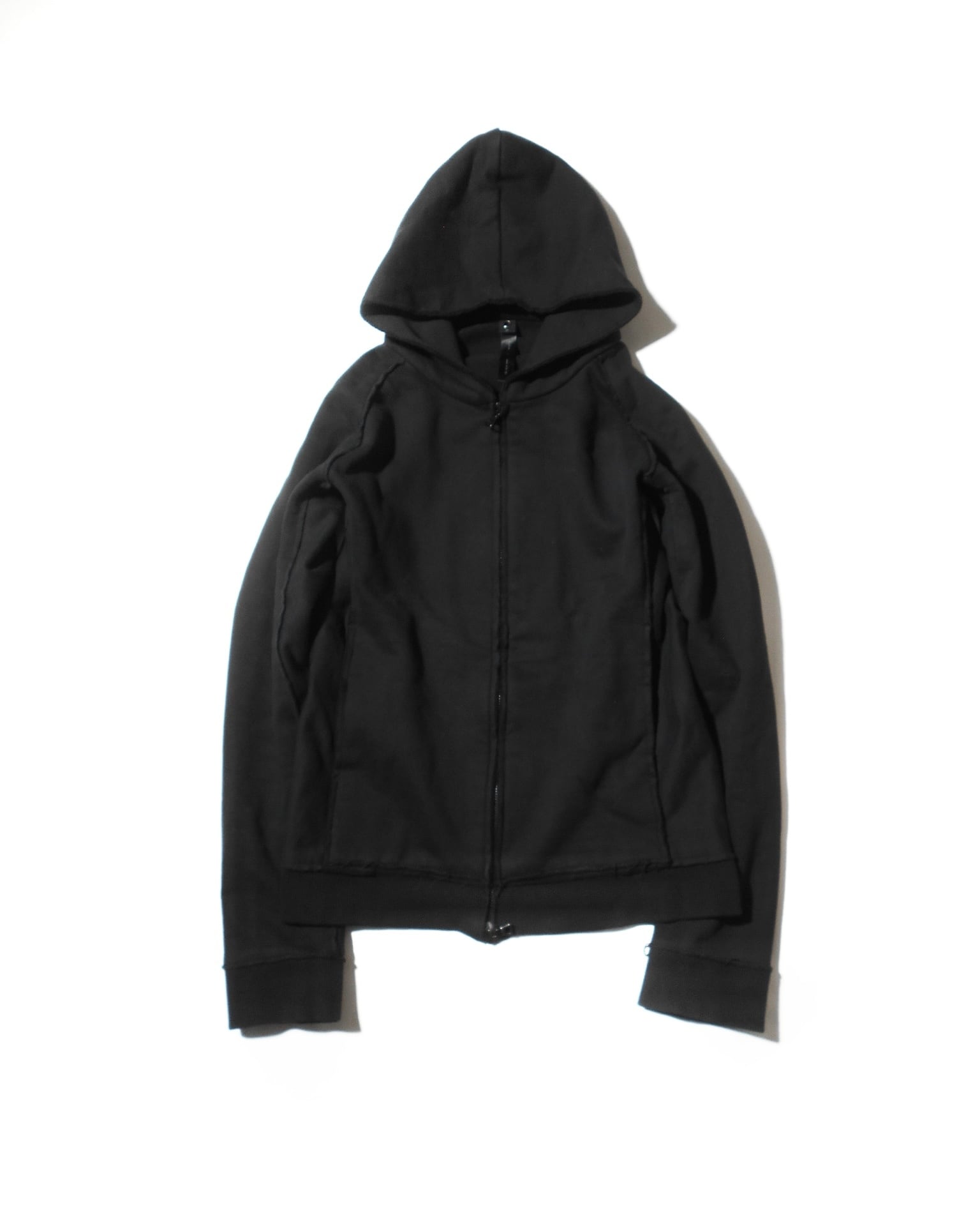 2000s Cut-Off Paneled Black Cotton Double Zip Hoodie by a Japanese designer label, by Jun Hashimoto, wjk