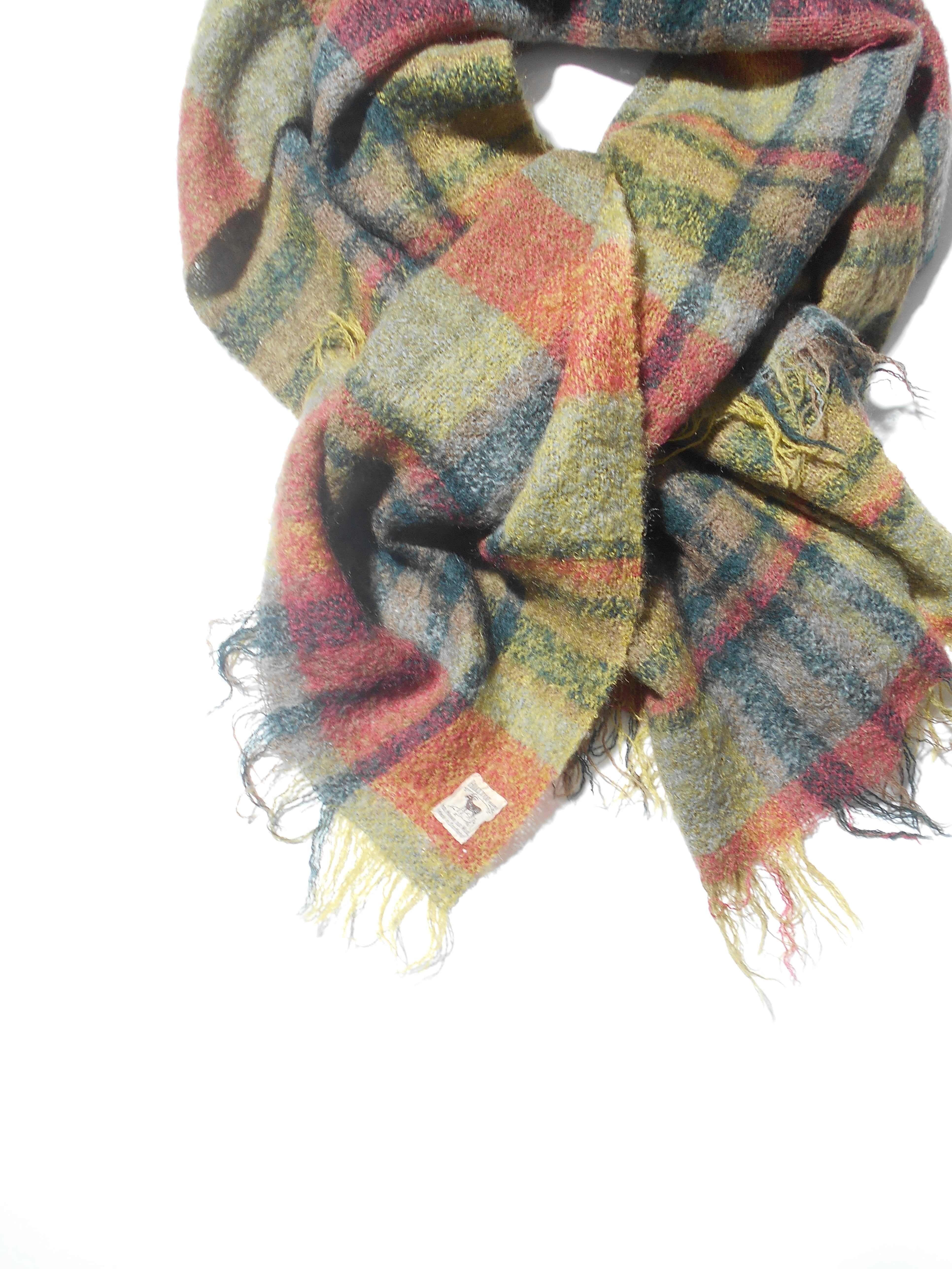 Circa 1980s Vintage Hill Top Plaid Check Mohair Scarf