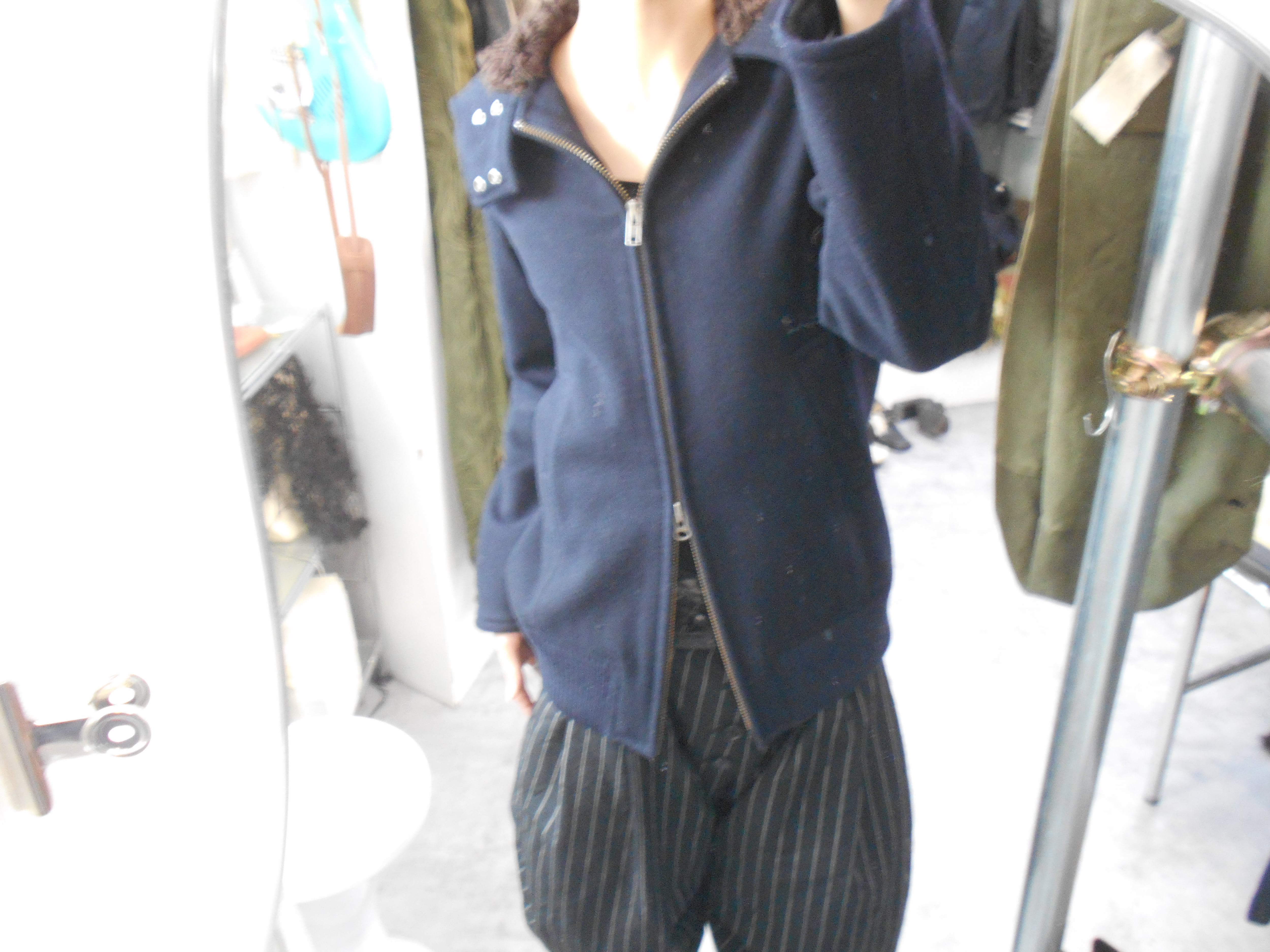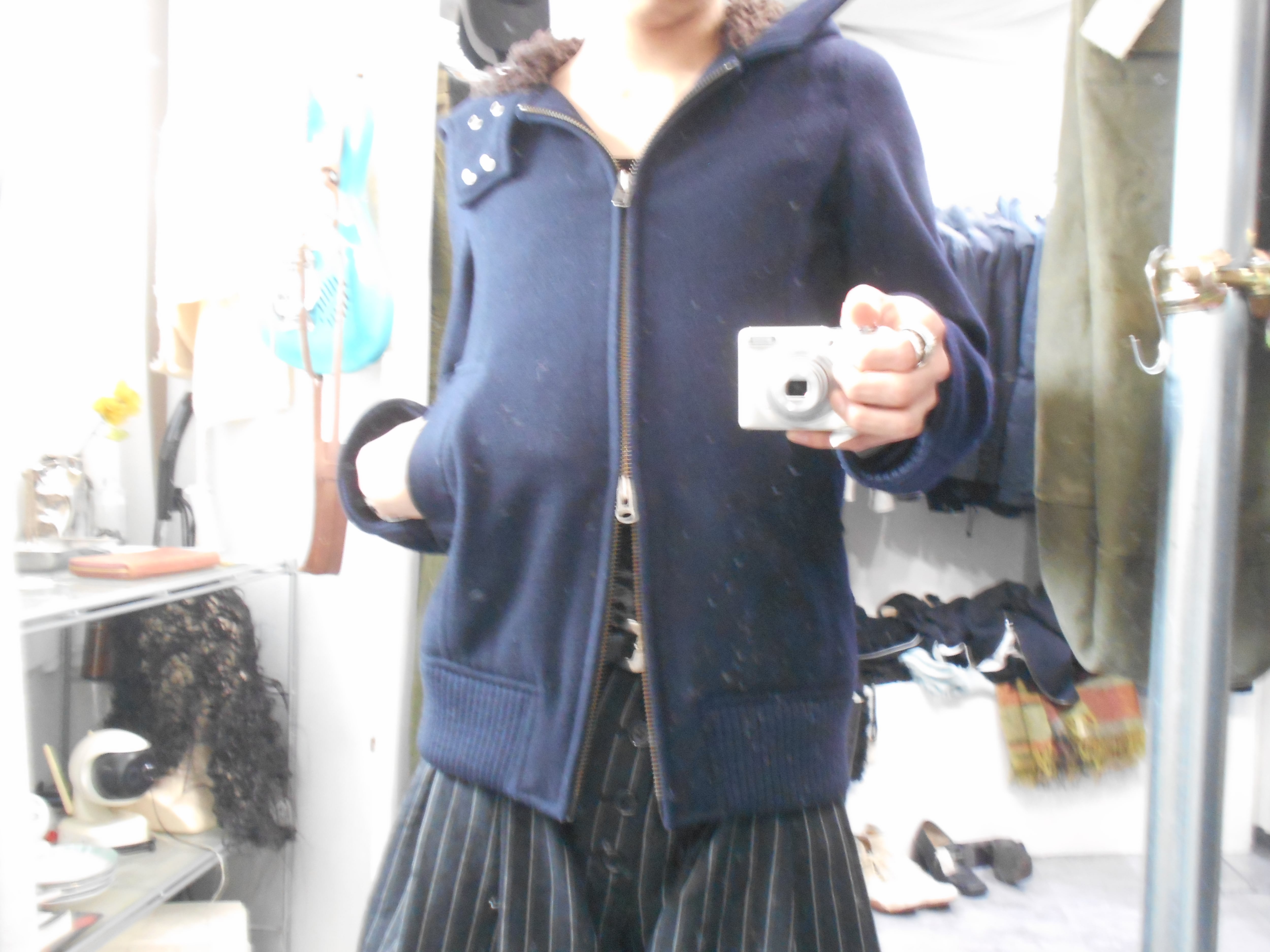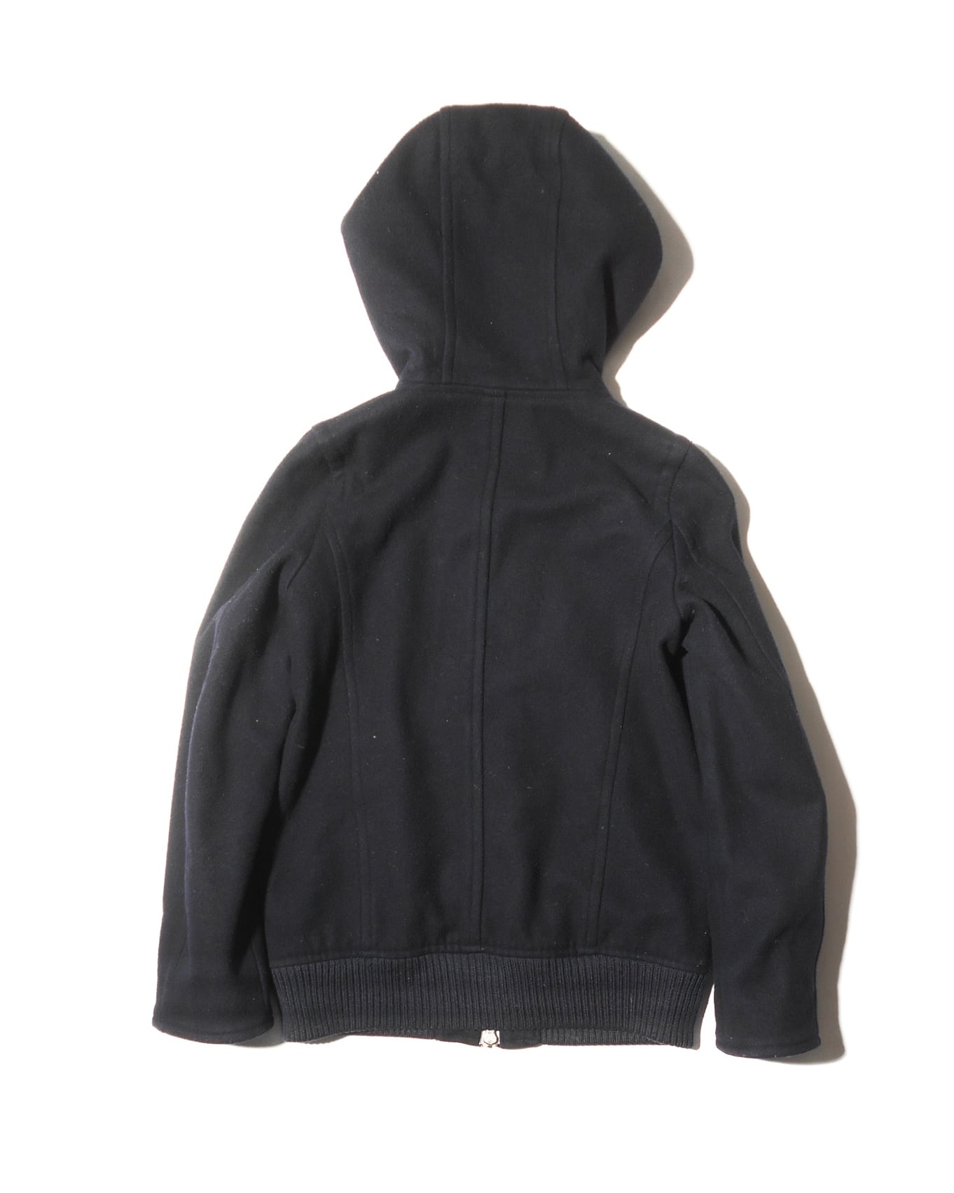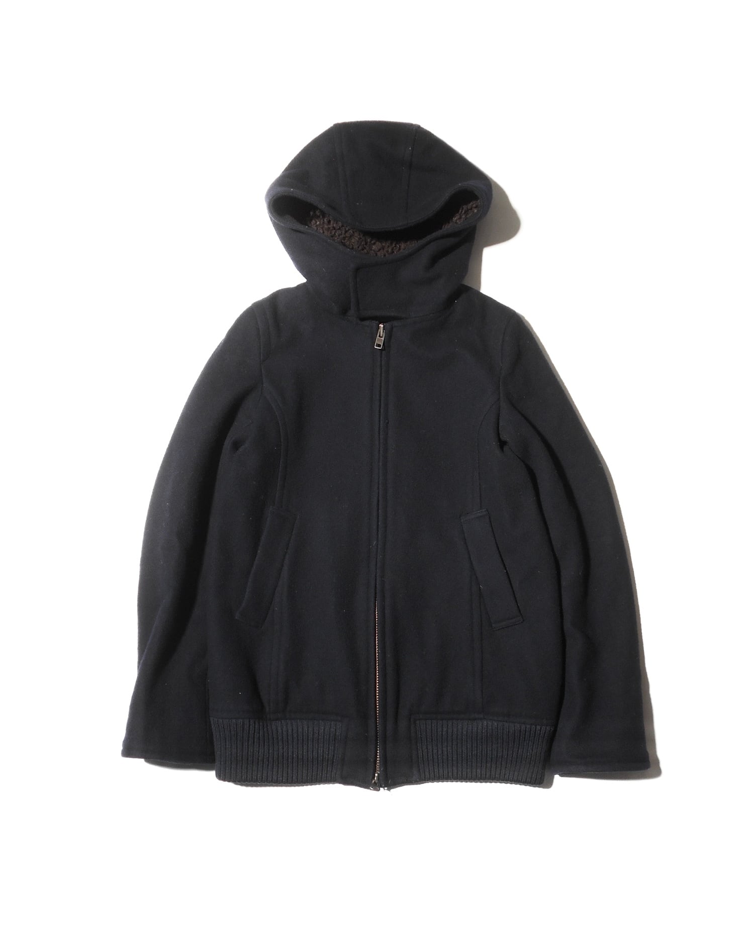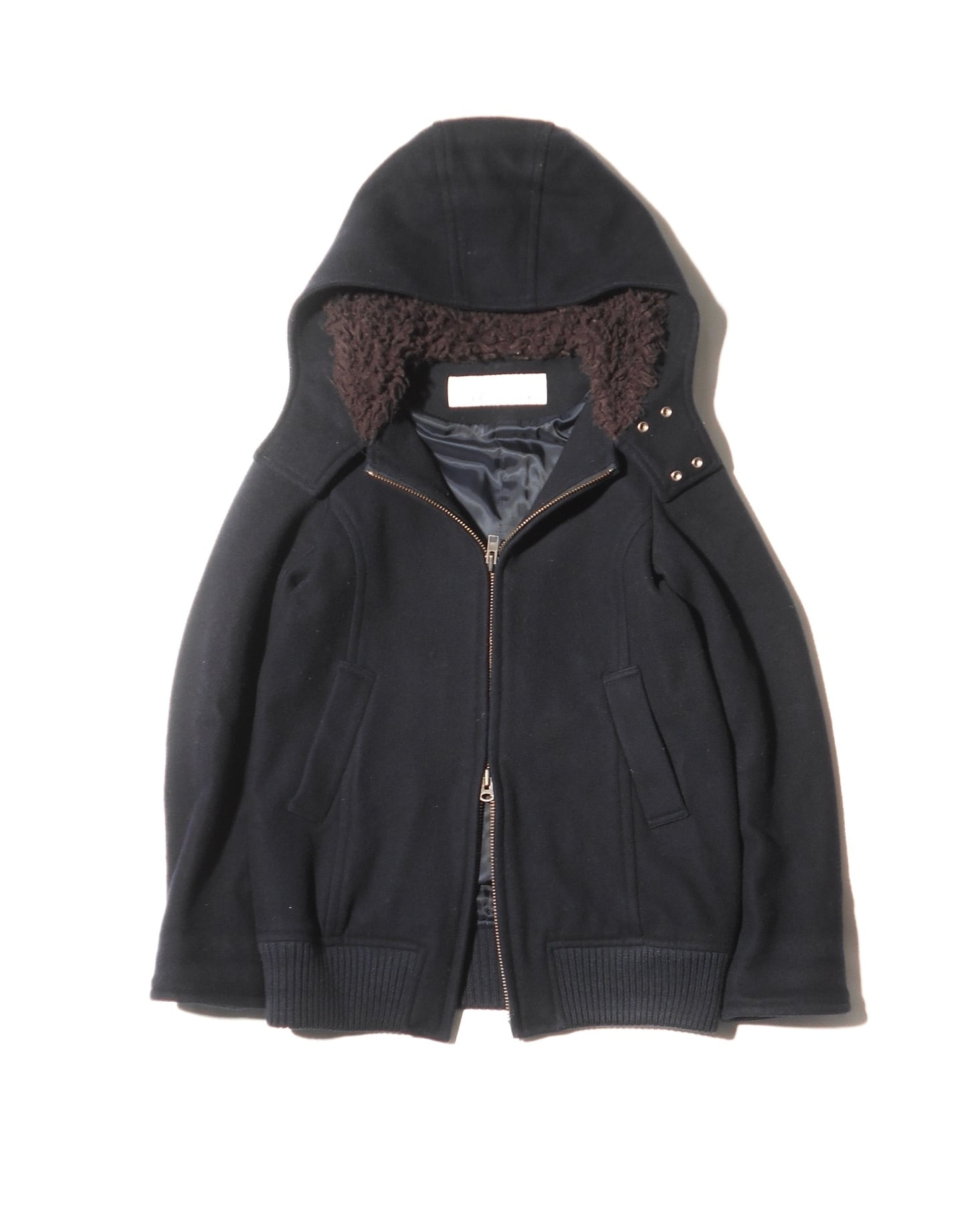 2000s Navy Melton Wool & Brown Boa Lining Double Zip Hooded jacket