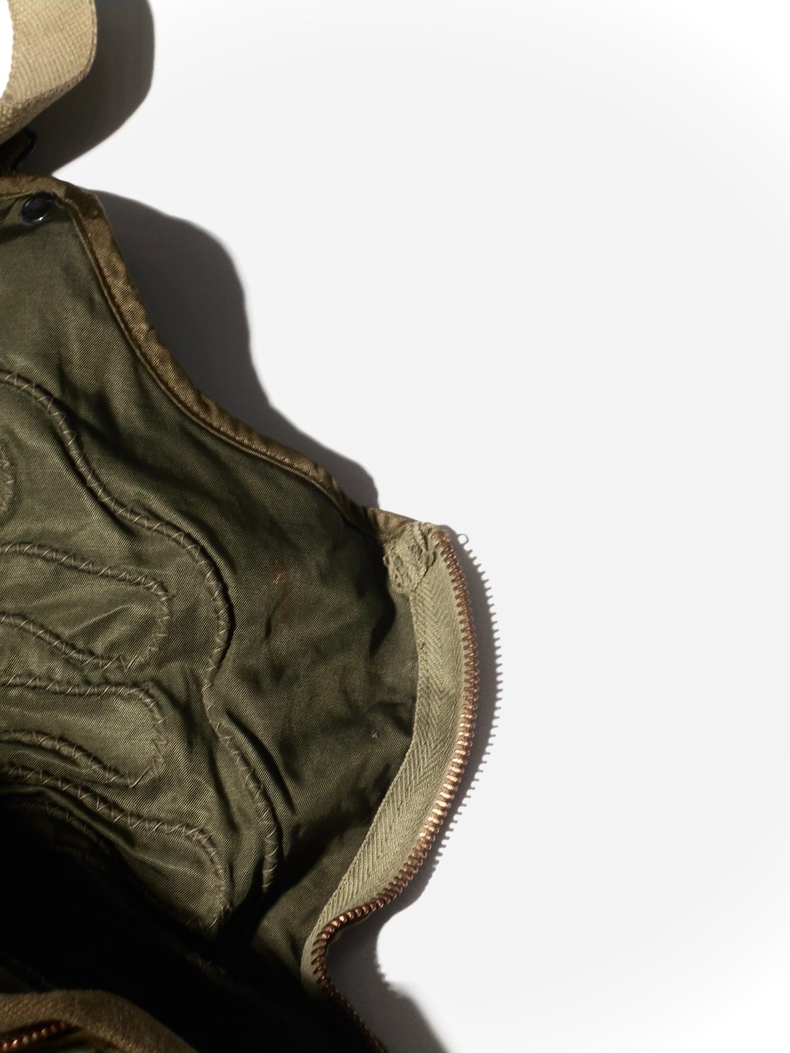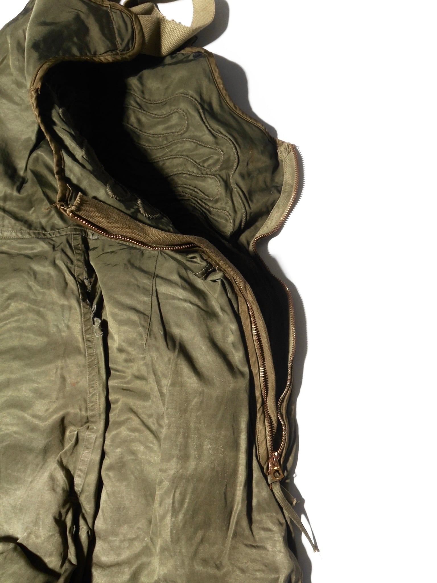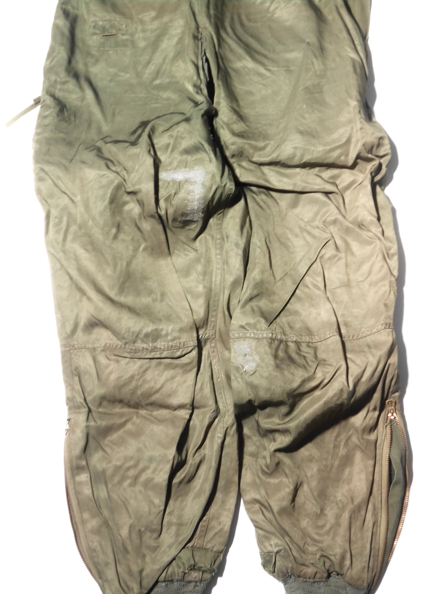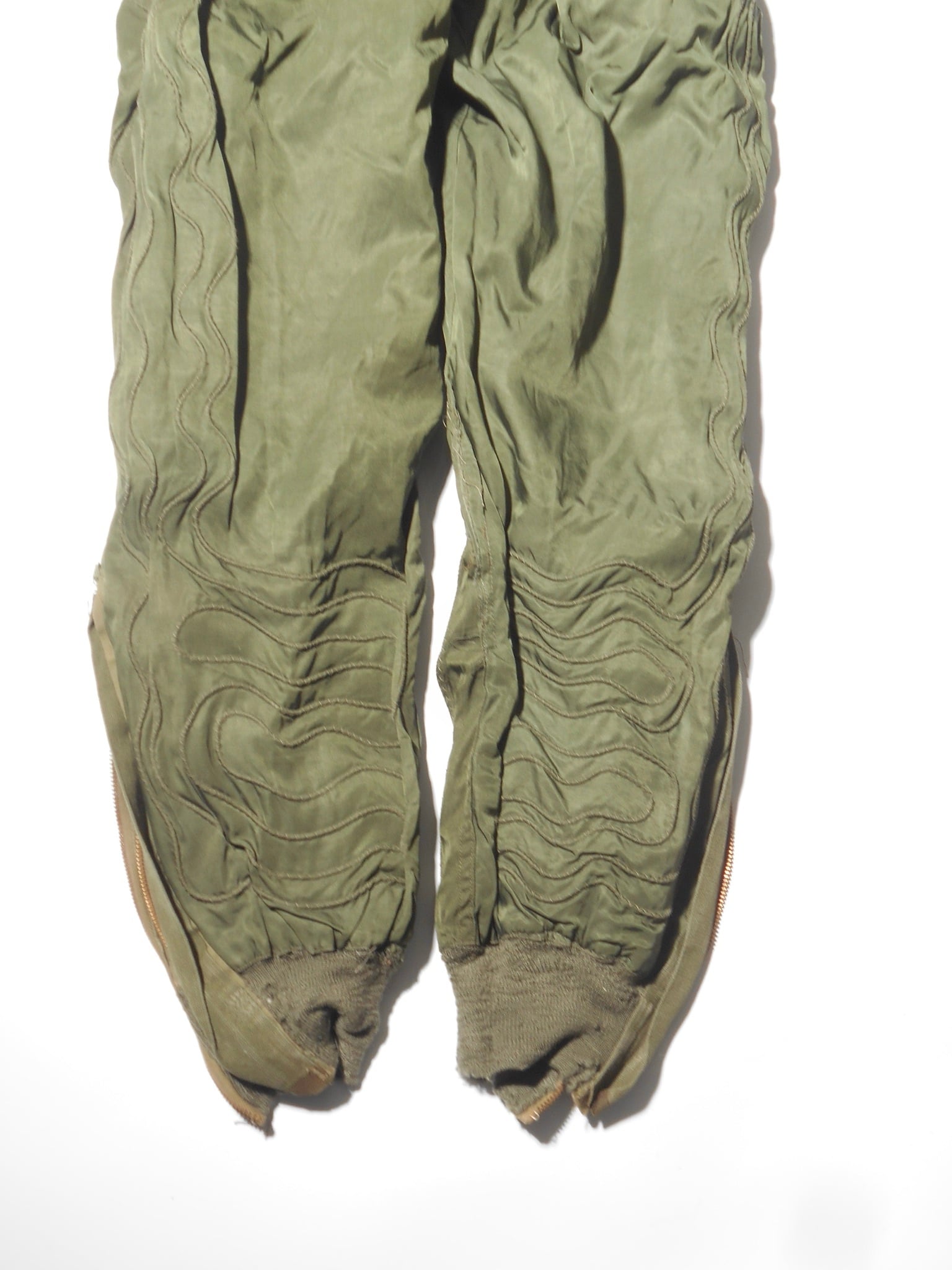 電熱グローブ等との接続プラグや配線用タブといった精密な設計は、General Electricの技術力の象徴です。インナー用の無駄のないシルエットは現代でも高く評価されています。安全のために電熱線が抜かれた個体であっても、そのステッチ跡や素材感からは、当時の最先端技術で空の戦いに挑んだ歴史の断片を感じ取ることができます。