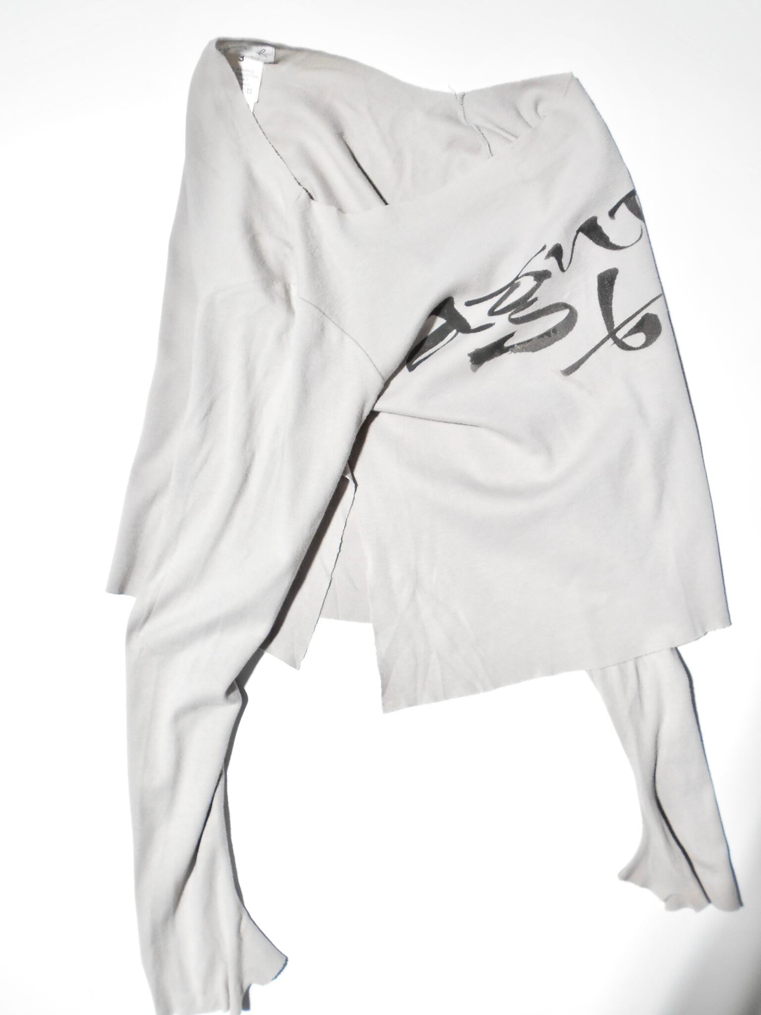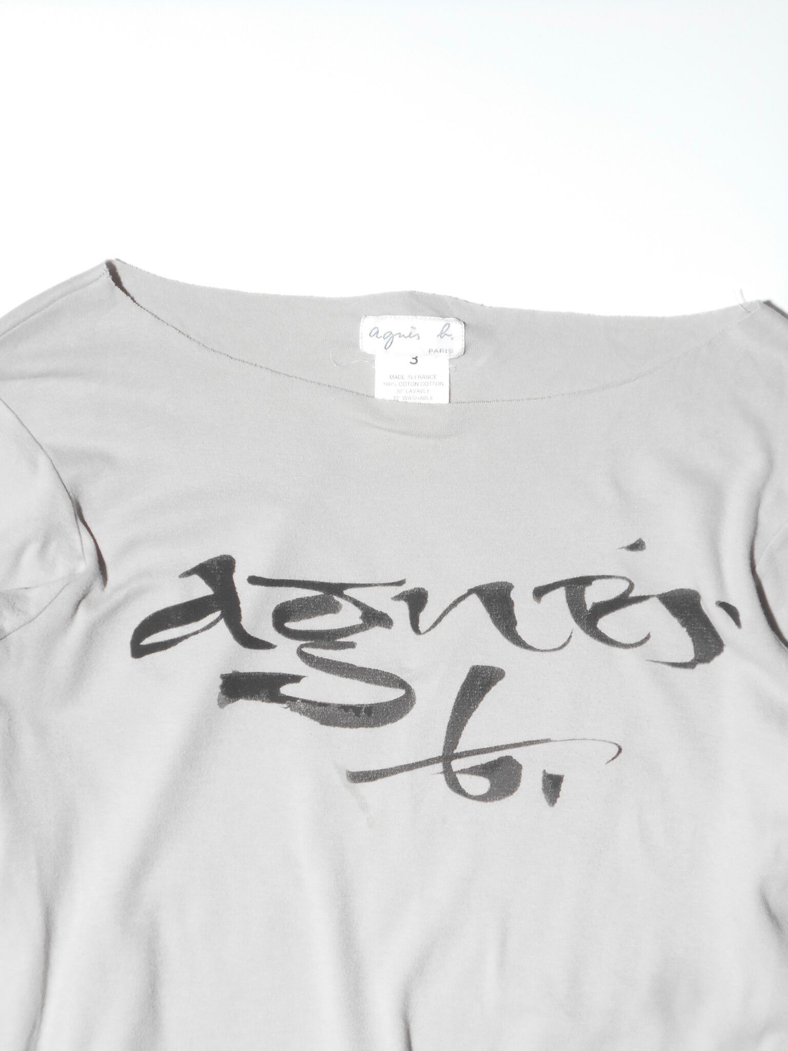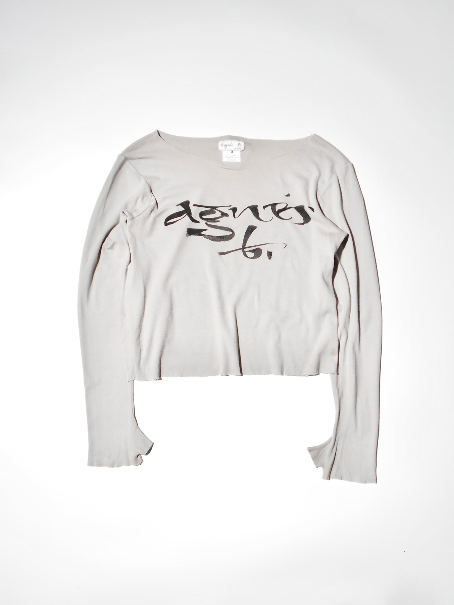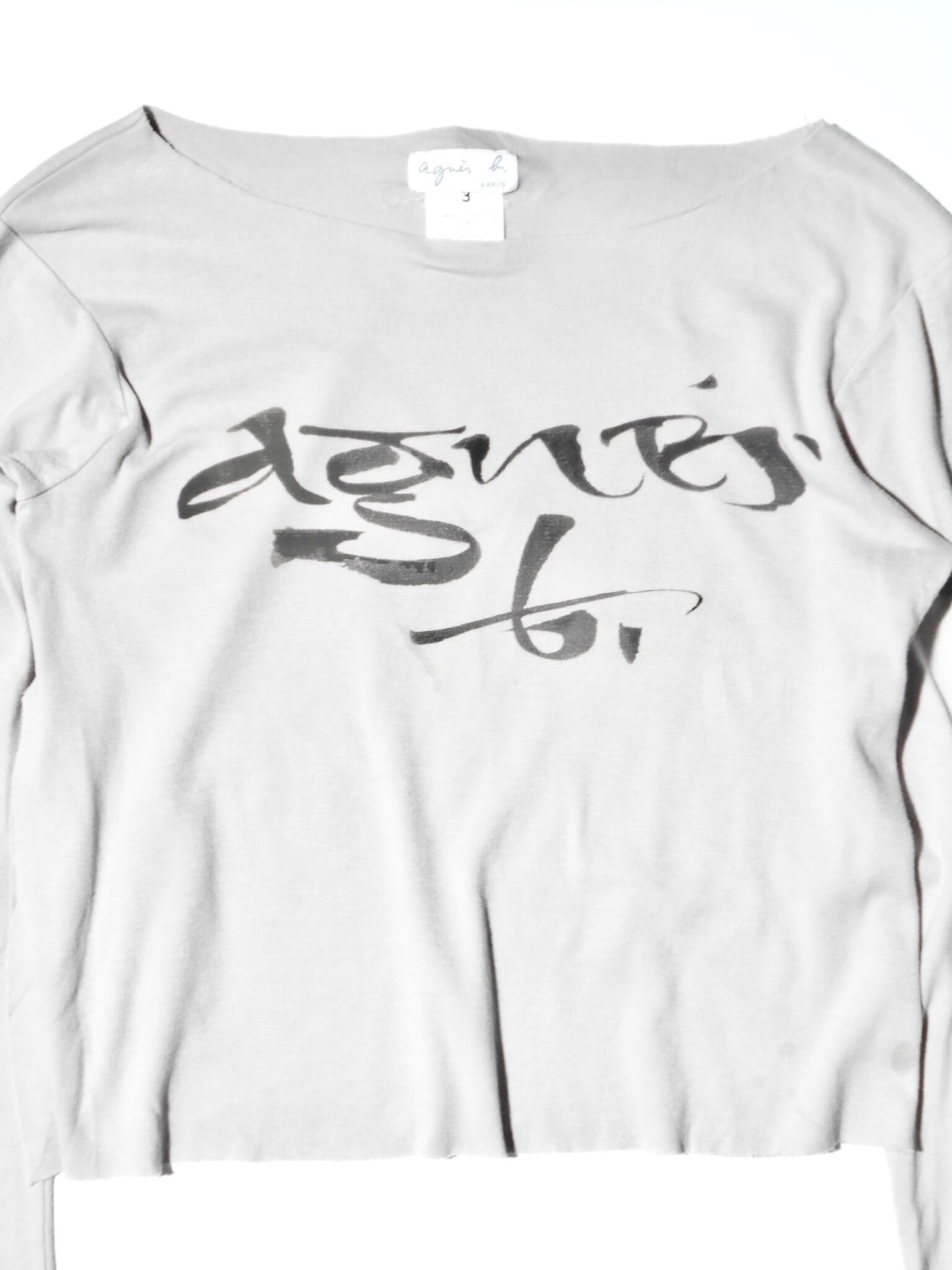 1990-2000s French Vintage Drape Fabric Slitted & Thumb Hole Long Sleeves T Shirt made in French by agnes b.