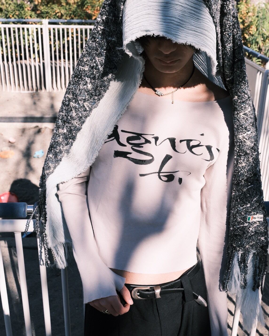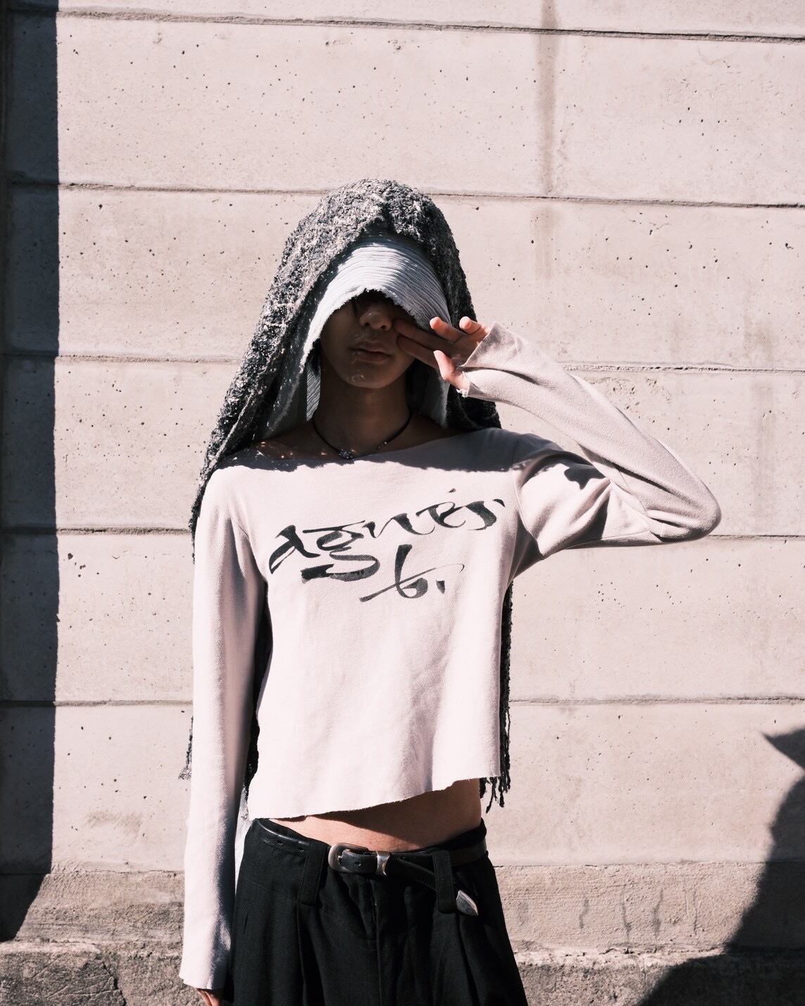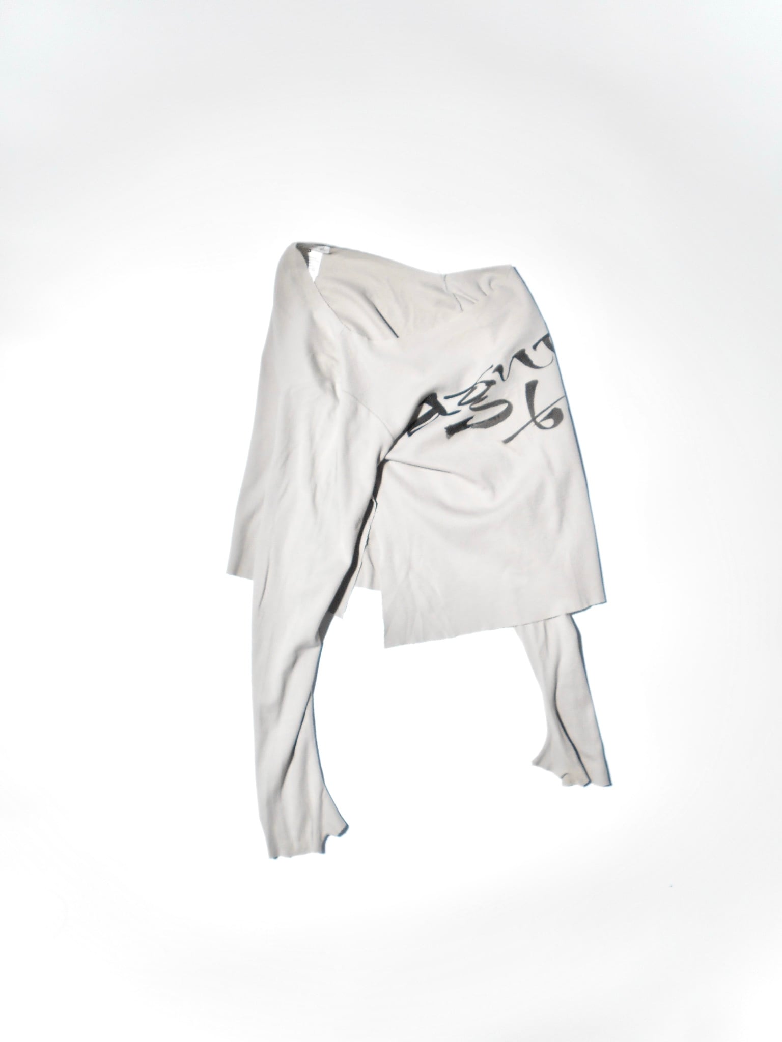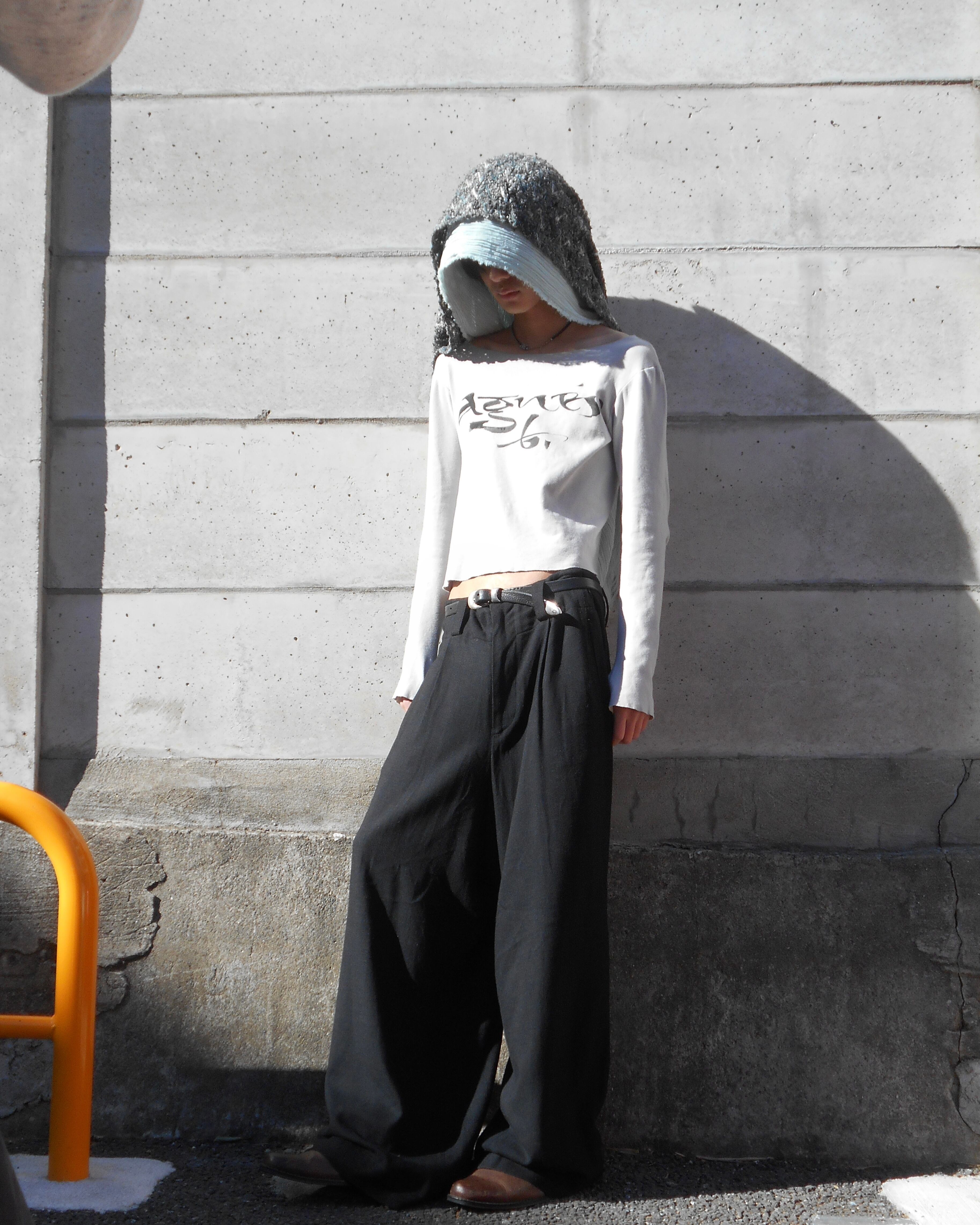 1990-2000s French Vintage Drape Fabric Slitted & Thumb Hole Long Sleeves T Shirt made in French by agnes b.