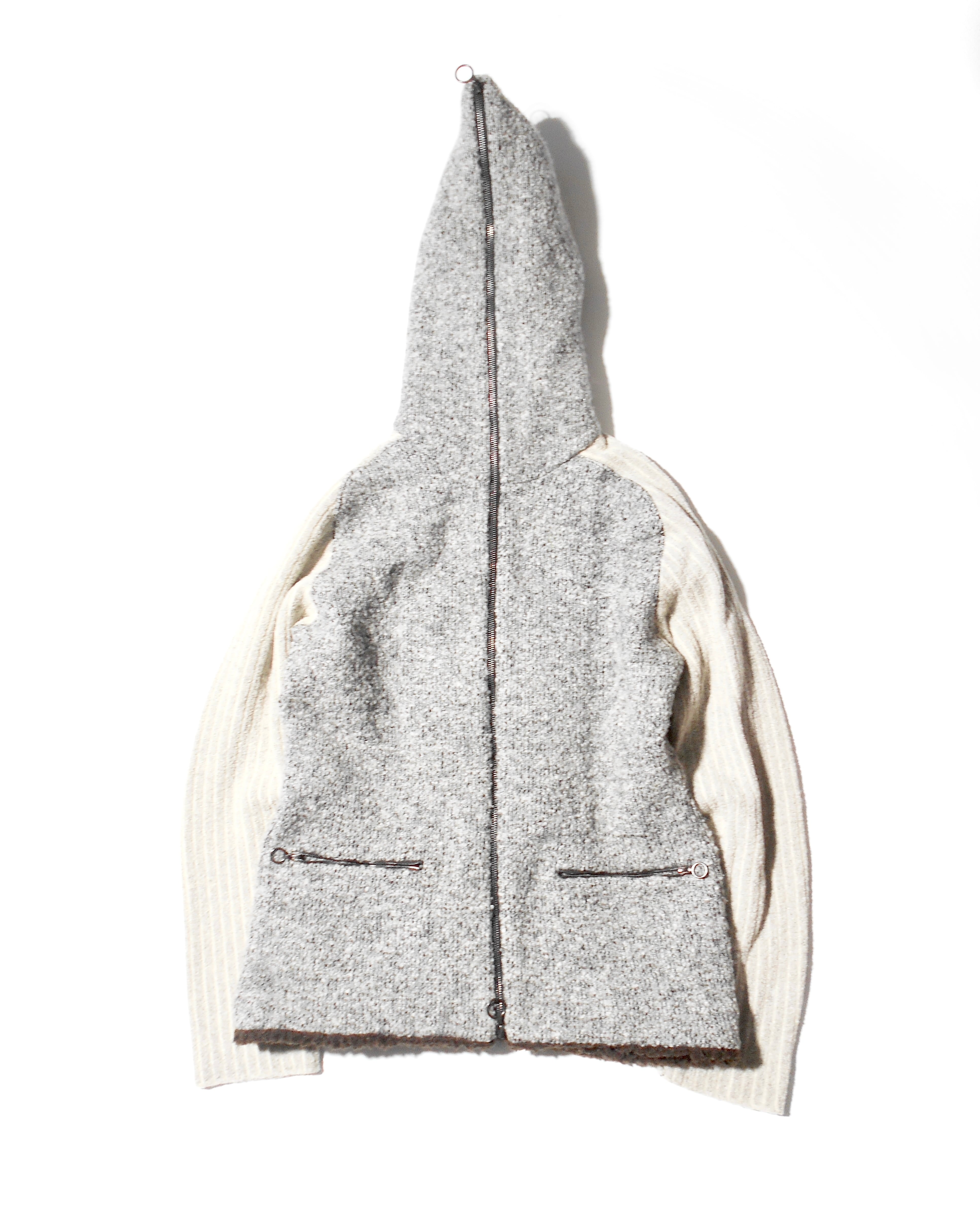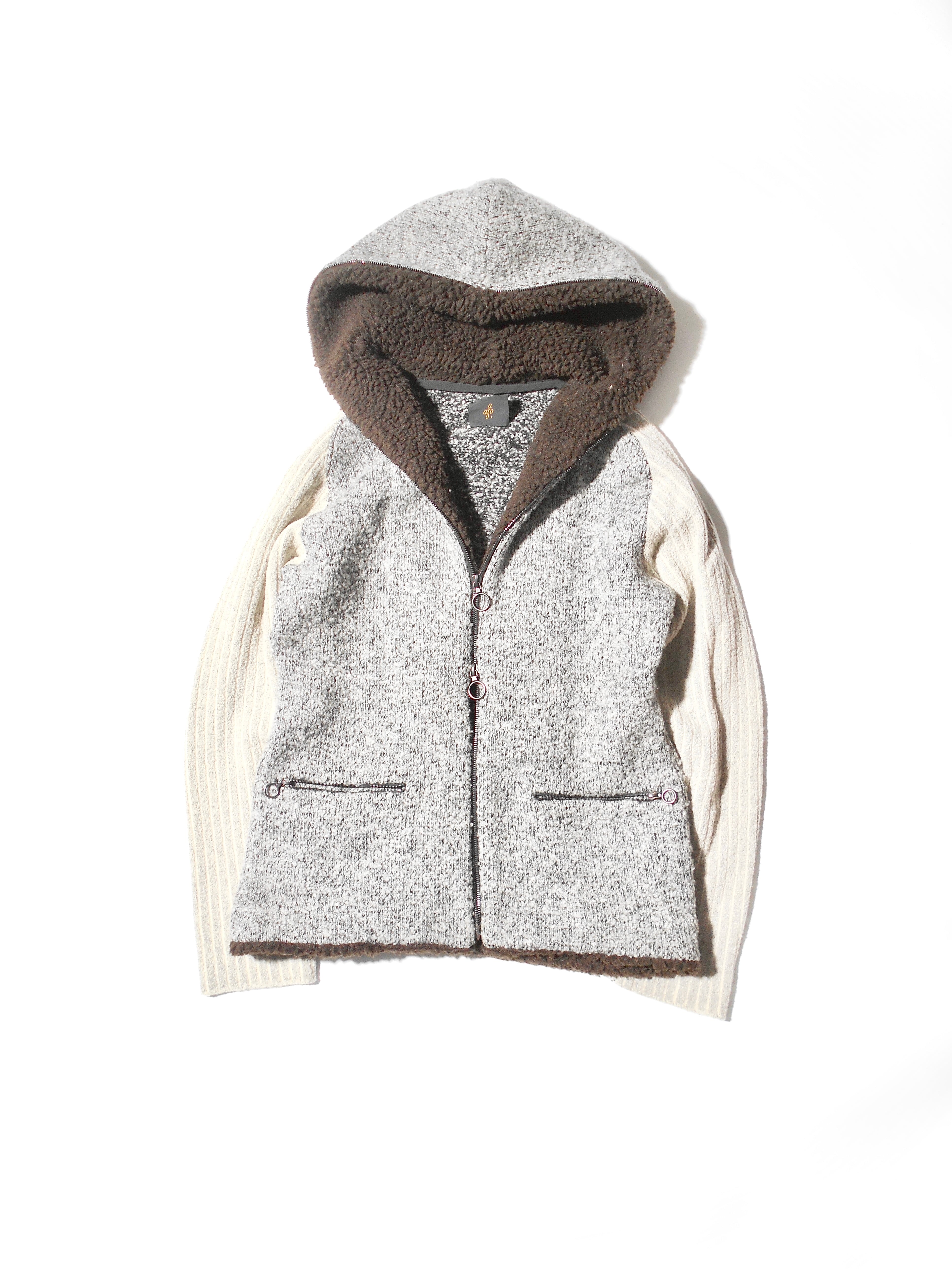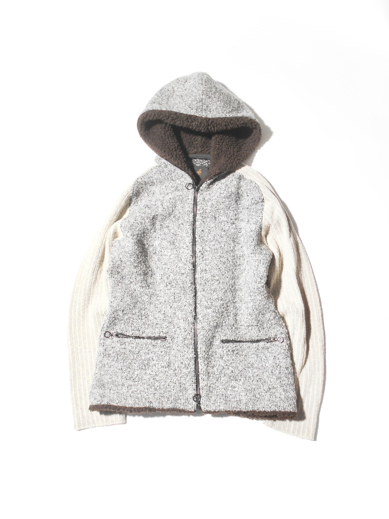 2000s Switching Fabric Fur Lining Knitted Zip Hoodie by ato