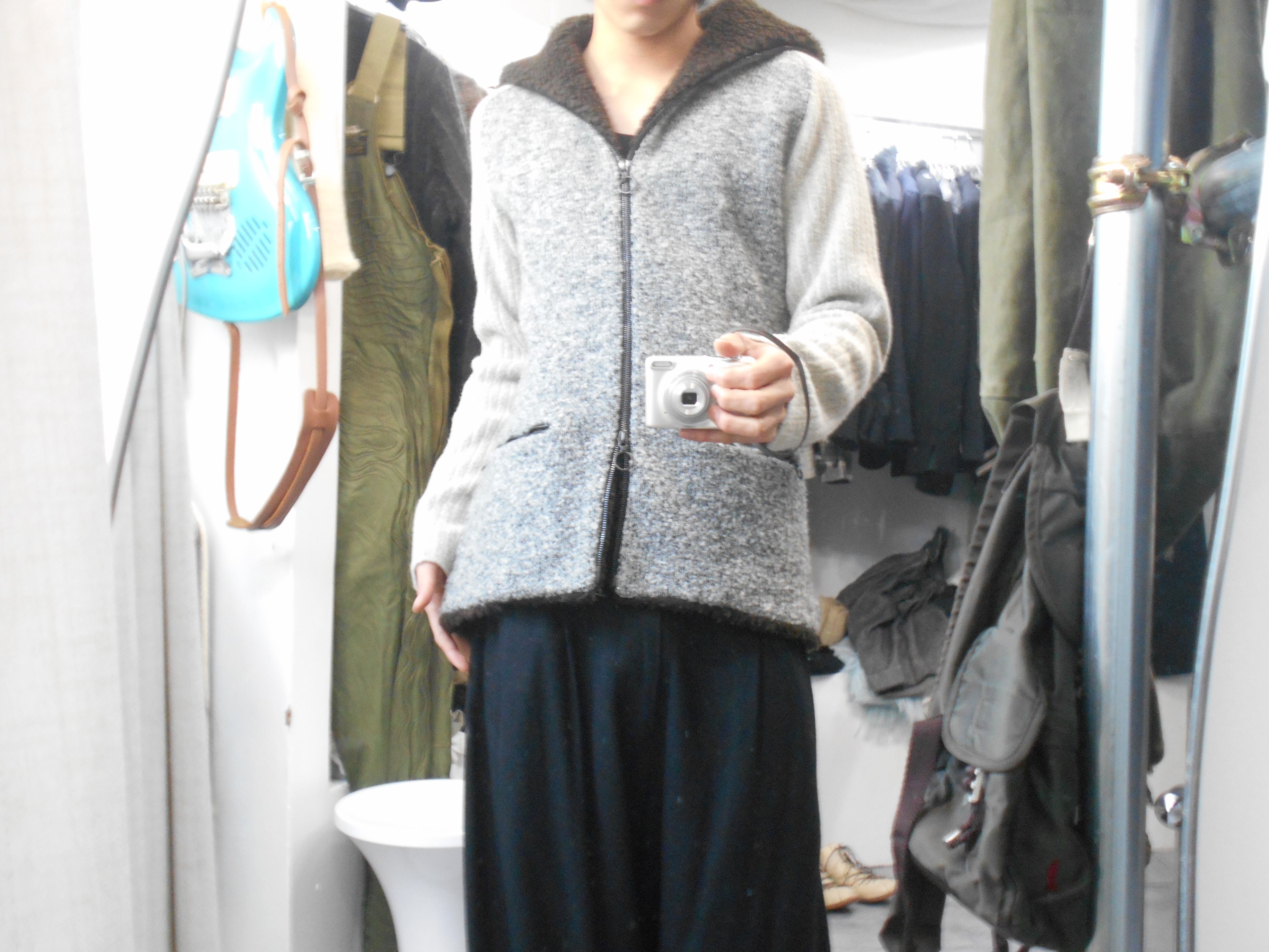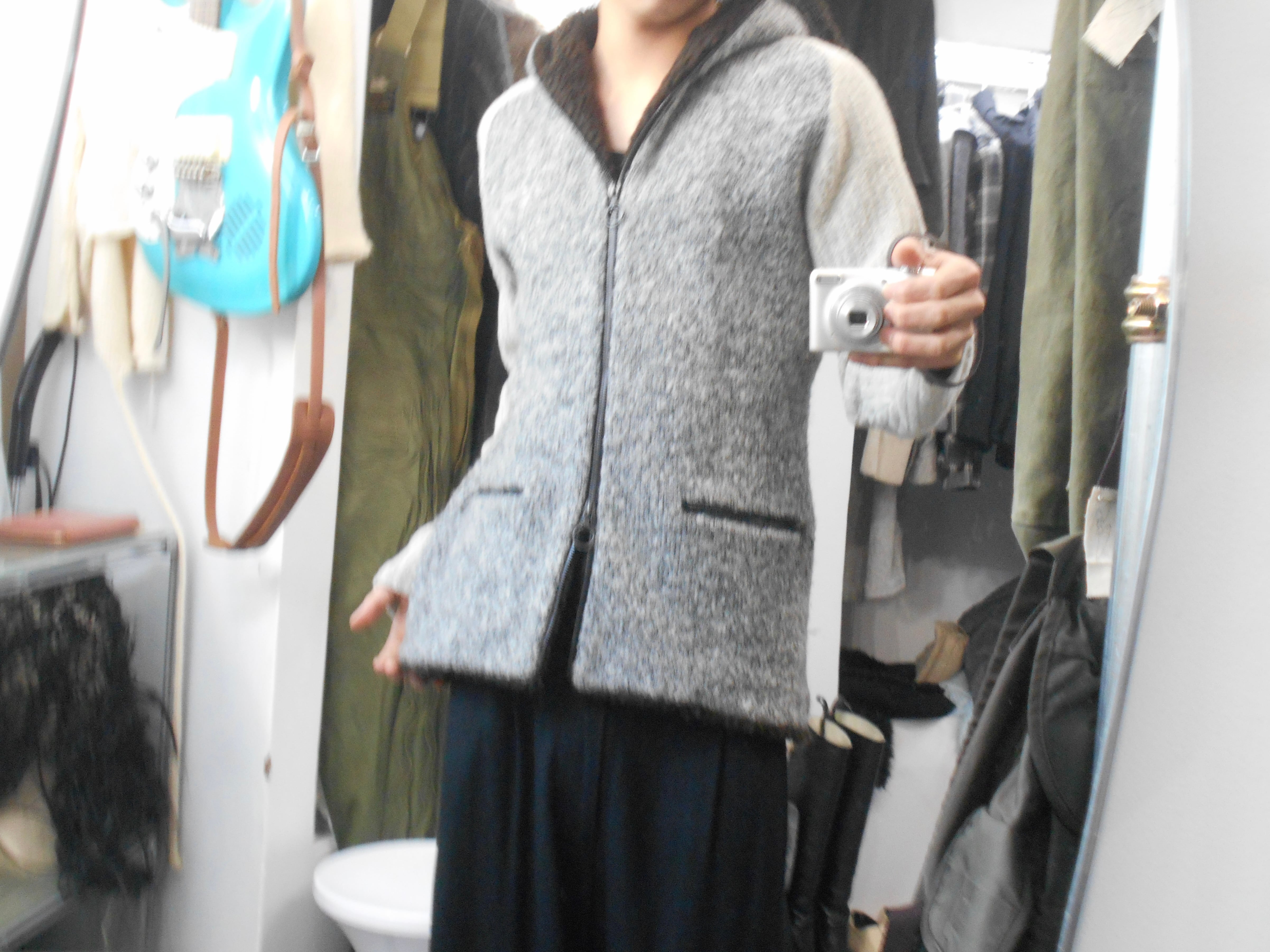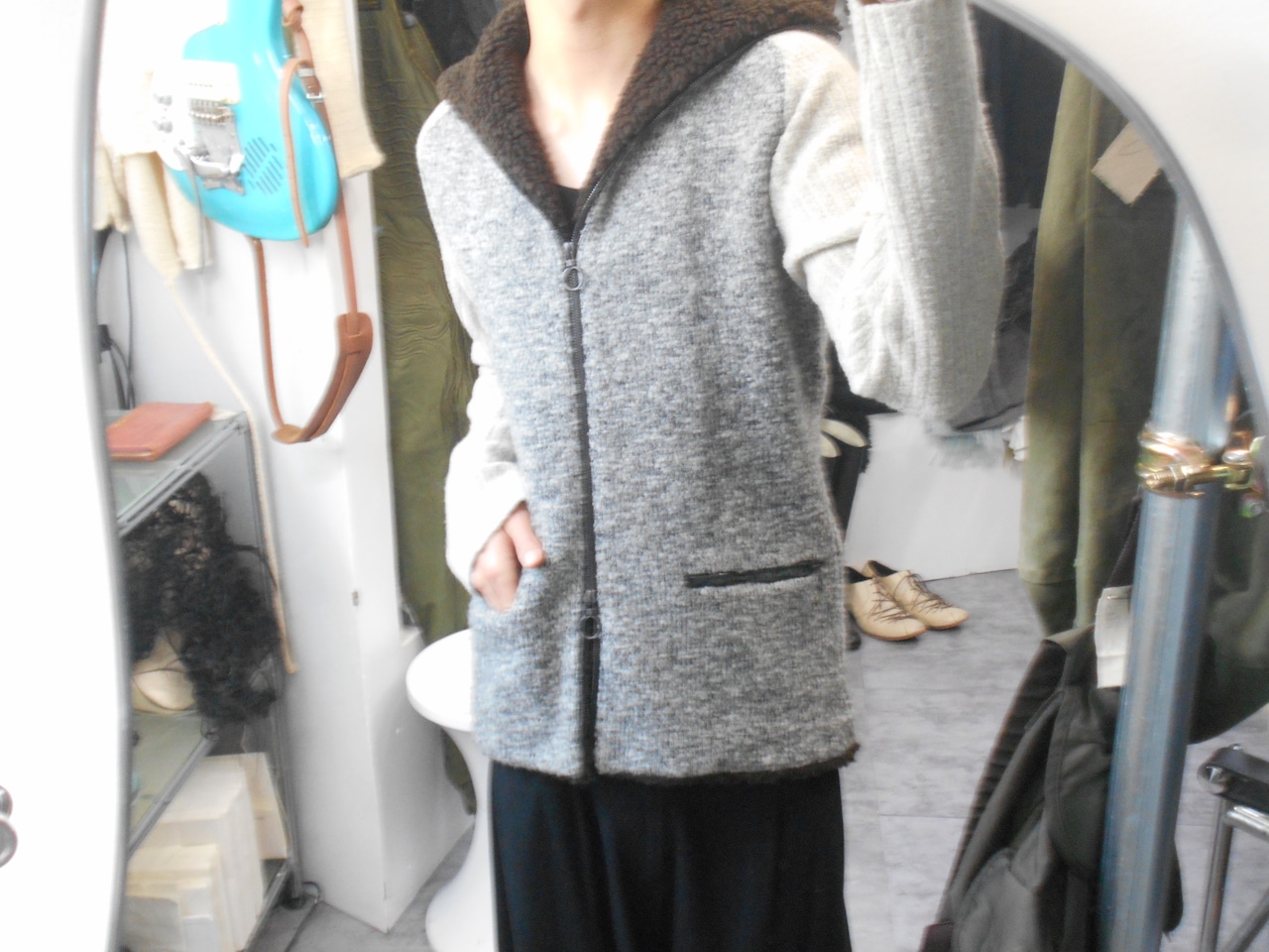 2000s Switching Fabric Fur Lining Knitted Zip Hoodie by ato